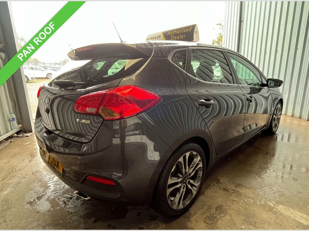 Moto Vation Car Sales are happy to offer this Kia Ceed in a desirable colour- Black with a colour combo Leather interior and a Panoramic roof! Low miles for the age- 81K and it is clear it has been loved by its 3 previous owners from new. Supplied with a long MOT until 12/10/26 and Service History attached with 9 stamps- last at 80K in 10/25. Bosting a great specification with a Multi Functional Steering Wheel, AUX, USB, Bluetooth, Sat Nav, Cruise Control, Parking Sensors, Electric Heated Seats, Reverse Camera, Start/ Stop and Isofix. Only £35 annual tax! Please confirm with a Sales Executive how many keys this vehicle comes with. All of our vehicles come with a 3 months Nationwide warranty and a 12 months basic AA breakdown cover. Please read our reviews! Please note- the above vehicle specification is confirmed and correct. The vehicle specification listed elsewhere may sometimes be inaccurate so please check with the Sales team when enquiring to clarify this prior to purchase. Silver Storm, 12V Power Socket - Front Centre Console , 12V Power Socket - Luggage Compartment, 17in Alloy Wheels, 3 x Passenger Assist Grips, 6-Speaker System, 60-40 Split Folding 2nd Row Seats, 7in Touchscreen Satellite Navigation wit, ABS - Anti Lock Braking System, Airbags - Driver, Airbags - Front Side, Airbags - Passenger, Airbags - Twin Curtain, Alarm System, All-Round Height Adjustable Headrests, Ambient Light - Front Centre Console Tra, Armrest - Rear Centre, Auto Dimming Rear-View Mirror, Automatic Defog System, Automatic Headlight Control, BAS - Brake Assist System, Bluetooth with Music Streaming, Bluetooth with Voice Recognition, Body Coloured Bumpers, Body Coloured Door Mirrors,