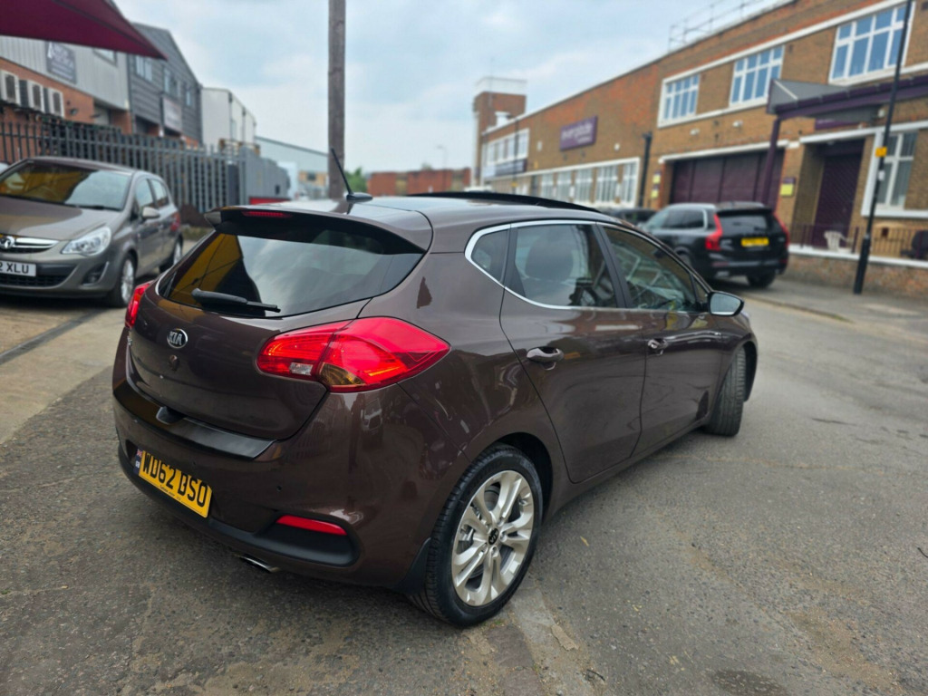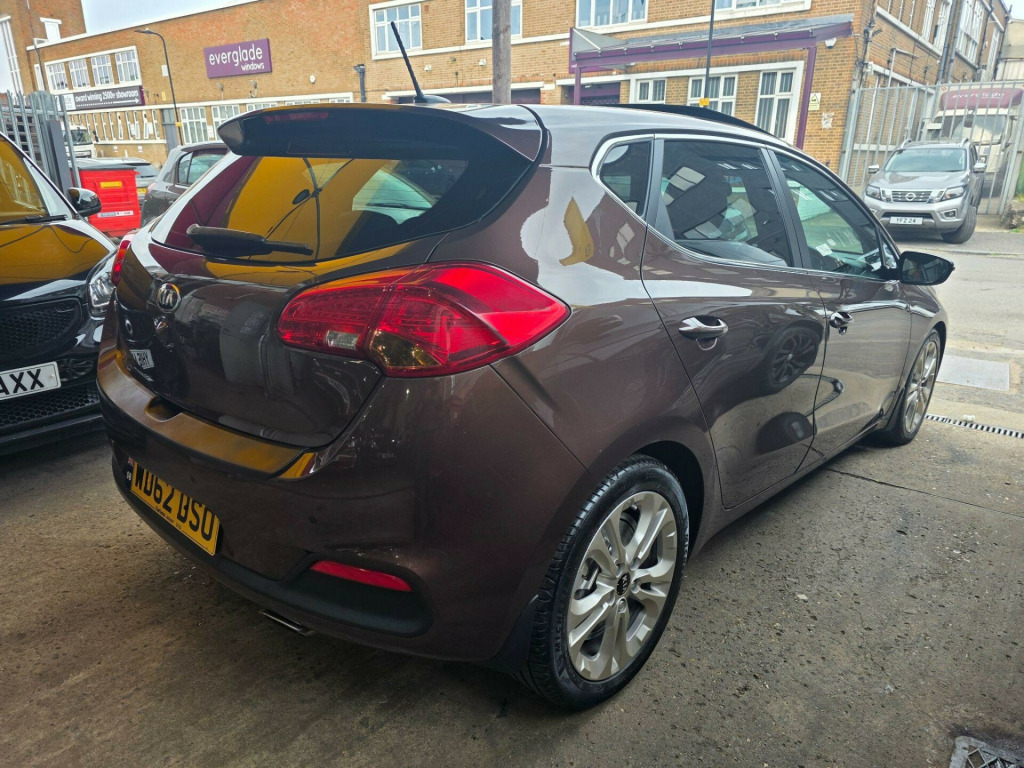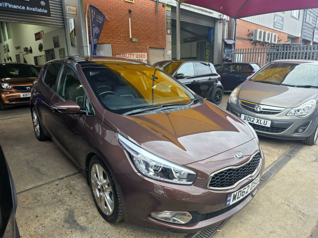 !!! NEVER FAILD MOT SINCE NEW, NEVER HAD ANY MOT ADVISORY SINCE NEW !!!! SUPER LOW MILEAGE !!!  VERY NICE AND SPORTY LOOKING HATCHBACK,  PANOAMIC ROOF WITH SUNROOF, JUST HAD FRESH CLEAN MOT AND SERVICE, 2 REMOTE KEYS , POWER FOLDINGWING MIRROR , PARKING SENSORS WITH REVERSING CAMERA, FULL LEATHER, HPI CLEAR, ULEZ COMPLAINT, ALLOY WHEELS, SATALLITE NAVIGATION, HEATED SEATS, LED RUNING DAY LIGHTS, VERY UNIQUE COLOUR , SMOOTH TO DRIVE, 1ST TO SEE IT MUST BUY IT.With only 28000 miles on the clock, this 2012 Kia Ceed offers exceptionally low mileage for its age. This Ceed 4 Tech, with its 1.6L petrol engine, combines practicality with a host of features designed for comfort and convenience. The trim includes Bluetooth with Voice Recognition, dual automatic air conditioning with ioniser, and a park assist system with front and rear parking sensors. Enjoy the luxury of a smart entry system and a panoramic sunroof with tilt and slide functionality, complete with an automatic electric roll blind.This Kia Ceed stands out with its low insurance group, making it an economical choice. The large boot space is a real advantage, offering ample room for luggage, shopping, or anything else you need to transport. Furthermore, acceleration from 0-60mph in 10.4 seconds makes it a nippy and responsive drive around town or on the open road.g v power socket - front centre console x2, 12v power socket - luggage compartment, 17in alloy wheels, 3 x passenger assist grips, 6-speaker system, 60-40 split folding 2nd row seats, 7in touchscreen satellite navigation with european mapping with traffic message channel - tmc, abs - anti lock braking system, airbags - driver, airbags - front side, airbags - passenger, airbags - twin curtain, alarm system, all-round height adjustable headrests, ambient light - front centre console tray illumination, armrest - rear centre, auto dimming rear-view mirror, automatic defog system, automatic headlight control, bas - brake assist system, bluetooth with music streaming, bluetooth with voice recognition, body coloured bumpers, body coloured door mirrors, body coloured exterior door handles, centre console cupholders, centre console storage, centre fascia - black high gloss, child safety rear door locks, chrome window surrounds, coat hooks - rear, cruise control, cupholders - rear, deadlocks, door handles - exterior illumination, door handles - interior - chrome finish, drivers seat height adjuster, dual automatic air conditioning with ioniser, ebd - electronic brakeforce distribution, esc - electronic stability control, electric parking brake, electric windows - front and rear with auto up-down function, electrically folding door mirrors, emergency stop signalling - ess, engine immobiliser, external temperature display, faux leather door centre trim, flex steer, front cabin map light with sunglasses case, front centre console sliding armrest, front fog lights, front parking sensors, front passenger airbag cut off switch, front seatback pockets, glovebox - cooled, headlight washers, headlights - follow me home function, headlights - xenon with auto levelling, heated front seats, heated steering wheel, hill-start assist control - hac, isofix child seat top tethers and anchor fixings, impact sensing auto door unlocking, integrated indicator lights led in door mirrors, interior door lock-unlock function, kick down resistance - fuel efficiency feature, led daytime running lights, led high mounted brake light, lane departure warning system, leather trimmed gear shift, leather trimmed steering wheel, locking wheel nuts, low level washer fluid warning, luggage compartment - hooks, luggage compartment - load cover, luggage under floor tray, motor driven power steering - mdps, panoramic sunroof - tilt and slide with automatic electric roll blind, park assist system with front and rear parking sensors, privacy glass - rear windows and tailgate, rds radio with cd and mp3, radiator grille - graphite chrome surround with black high gloss mesh, rain sensing front wipers, rear air ventilation, rear lights - led, rear parking sensors, rear spoiler, reversing camera system, seatbelt reminder warning, seats - drivers 10-way power adjustment with memory, seats - front power lumbar support, seats - passenger height adjustment, smart entry system, speed limiter, speed sensing auto door locking, speed and multifunction lcd full colour display, steering wheel - paddle shift, steering wheel mounted audio controls, sunvisors with vanity mirrors and ticket holder, temporary spare wheel, tilt and telescopic steering wheel adjustment, tinted glass, trip computer, tyre pressure monitoring system - tpms, usb and aux ports, uv reduced solar glass - windscreen and front window, vsm - vehicle stability management, vanity mirror illumination, wide-view door mirrors