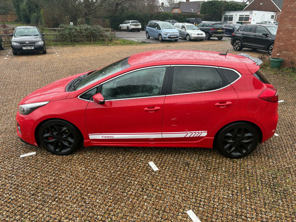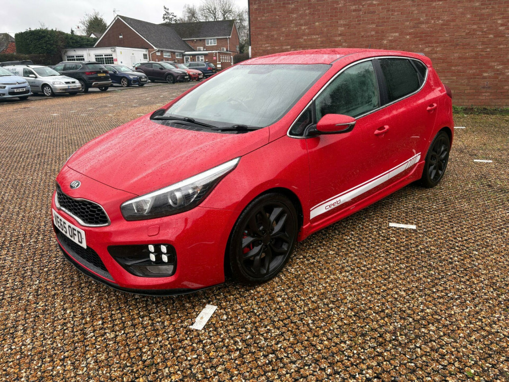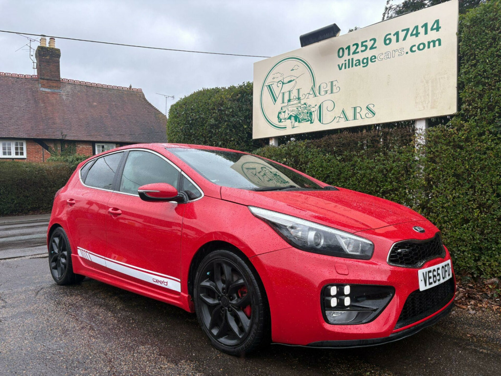 Village cars are pleased to offer this fantastic Kia Ceed GT 1.6 finished in red with black alloys. This car is in excellent condition and has been well looked after with a good service history (7 stamps). This car is full of benefits including Sat Nav, DAB radio, rear parking sensors and rear camera, heated front seats, Air conditioning, Bluetooth, alloy wheels, USB port, keyless start and entry, electric windows, heated steering wheel and so much more. We provide a 3 month warranty on every car sold extendable for up to 2 years. We use a national warranty company ensuring you are in great hands should any issues arise.ABOUT US - Village cars is a family business with traditional values and 20 + years' experience in the trade. We firmly believe in a hassle free, zero pressure environment where our customers can feel relaxed and are given time to make the right decision for them. We understand that sometimes the car you have come to look at is simply not the one and if you go away feeling that you enjoyed your experience with us, we are happy with that. We take pride in the cars we sell, they are a reflection of us and our business. Call us today and talk to us about the car you are interested in, you will find us very open and honest with any questions you may have. We are open Monday to Friday 09:30 - 17:00 and Saturdays by appointment (we are closed Sundays). We always recommend you call ahead as sometimes we need to be away from our site collecting or viewing cars. If our opening hours don't fit your busy schedule please call us to discuss the options as we will always accommodate late viewings/test drives if we can. Our number is 01252 617414. v power socket - front centre console x2, 12v power socket - luggage compartment, 18in alloy wheels - graphite finish, 3 x passenger assist grips, 6-speaker system, 60-40 split folding 2nd row seats, 7in touchscreen, 7in touchscreen satellite navigation with european mapping with traffic message channel - tmc, abs - anti lock braking system, airbags - curtain, airbags - driver, airbags - passenger, airbags - side, alarm system, all-round height adjustable headrests, armrest - rear centre, auto dimming rear-view mirror, automatic headlight control, bas - brake assist system, bluetooth with music streaming, body coloured bumpers, body coloured door mirrors, body coloured exterior door handles, centre console cupholders, centre console storage, child safety rear door locks, chrome window surrounds, coat hooks - rear, cruise control, cupholders - rear, dab radio, deadlocks, door handles - interior - chrome finish, door mirrors with kerbside lights, dual automatic air conditioning with ioniser, ebd - electronic brakeforce distribution, esc - electronic stability control, electric windows - front and rear, electrically folding door mirrors, exhaust - dual, external temperature display, flex steer, front cabin map light with sunglasses case, front centre console armrest, front fog lights, front passenger airbag cut off switch, front seatback pockets, gear shift indicator, glovebox - cooled, headlight levelling system, headlight washers, headlights - follow me home function, headlights - xenon with auto levelling, headlining - black, heated front seats, hill-start assist control - hac, isofix child seat top tethers and anchor fixings, led daytime running lights, led high mounted brake light, leather trimmed gear shift, leather trimmed steering wheel, locking wheel nuts, luggage area light, luggage compartment - hooks, luggage compartment - load cover, luggage compartment - net, luggage under floor tray, motor driven power steering - mdps, privacy glass - rear windows and tailgate, rain sensing front wipers, rear lights - led, rear parking sensors, rear spoiler, red brake calipers, reversing camera system, seats - front height adjustment, seats - front power lumbar support, seats - recaro front, smart key entry system, speed limiter, speed and multifunction lcd full colour display, stainless steel door scuff plates, stainless steel pedals, steering wheel mounted audio controls, sunvisors with vanity mirrors and ticket holder, temporary spare wheel, tilt and telescopic steering wheel adjustment, tinted glass, traction control, trip computer, tyre pressure monitoring system - tpms, usb and aux ports, vsm - vehicle stability management