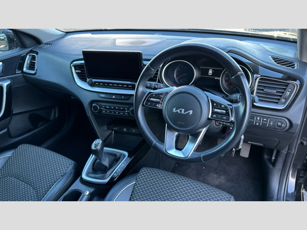 Kia Ceed 1.5T GDi ISG 3 5dr 10.25" touchscreen satellite navigation including telematics, 4.2" supervision colour cluster display, Apple car play/Android Auto with voice control, Bluetooth with Voice Recognition & Music Streaming, Cruise control + speed limiter, Driver attention warning, Emergency call service, Emergency stop signalling system, Forward Collision-Avoidance Assist (FCA) - City/Pedestrian, Kia connected services featuring TomTom live, Lane Following Assist (LFA), Lane keep assist, Motor driven power steering, Outside temperature gauge, Rear parking sensor, Reversing camera with dynamic guide lines, Service interval indicator, Speed limit information function (SLIF), Trip computer, Intelligent Stop and Go, 6 speaker audio system, DAB Radio with MP3, Illuminated USB ports, Steering wheel mounted controls, USB Fast Charger in Front Centre Console, USB port for connection of a media device, All-round Electric Windows with Front Auto Up & Down Function, Auto dimming rear view mirror, Automatic defog system, Automatic headlights, Body colour bumpers, Body colour door mirrors, Body colour exterior door handles, Body coloured rear spoiler, Chrome window surround, Electric adjustable/heated/folding door mirrors with LED Indicators, Front fog lights, Halogen projection headlights, Heated rear window with timer, High beam assist, High gloss black radiator grille, LED daytime running lights, LED High-mounted Brake Light, LED rear lights, Privacy glass (rear side windows and rear screen), Rain sensing front wipers, Rear side wing doors, Rear wash/wipe, Tinted glass, Wide view drivers door mirror, Windscreen Washer Level Warning, 12V socket in luggage compartment, 3 seat bench in 2nd row, 3 x passenger assist grips, 60/40 split folding rear seat, All-round height adjustable headrests, Centre console storage box/armrest, Cloth/faux leather bolsters upholstery, Cupholders in centre console, Cupholders in rear armrest, Dash illumination dimmer switch, Driver & Front Passenger Sunvisors with Vanity Mirror Illumination & Ticket Holder, Driver + front passenger electric lumbar support, Driver's seat height adjuster, Dual Height Luggage Area Floor, Dual zone automatic air conditioning, Faux leather door trim, Front and rear door storage, Front map light with sunglasses case, Front Passenger Seat Height Adjuster, Front seat and rear pockets, Gear shift indicator, Headlining in Light grey, Illuminated ignition key hole, Interior door lock/unlock function, ISOFIX Child seat top tethers and anchor fixings, Leather handbrake, Leather steering wheel and gearshift, Luggage area light, Luggage area parcel shelf, Luggage hooks, Rear centre armrest, Rear coat hooks, Satin chrome interior door handles, Single front passenger seat, Tilt/telescopic adjustable steering wheel, ABS with Electronic Brakeforce Distribution (EBD) and Brake Assist System (BAS), All round 3-point seatbelts, Dual front side airbags, Dual horn, Electronic stability control (ESC) and vehicle stability management (VSM), Front passenger airbag deactivation, Height adjustable front seatbelts, Hill start assist control (HAC), Impact sensing auto door unlocking, Rear door child safety locks, Seatbelt reminder warning, Traction control, Twin curtain airbags, Twin front airbags, Tyre pressure monitoring system, Alarm system, Engine Immobiliser & Deadlocks, Locking wheel nuts, Remote central door locking with fold away key, Speed sensitive auto door locking, Black high gloss front console tray garnish & door trim, Satin Chrome Fascia Trim, 17" Alloy wheels, Tyre mobility kit