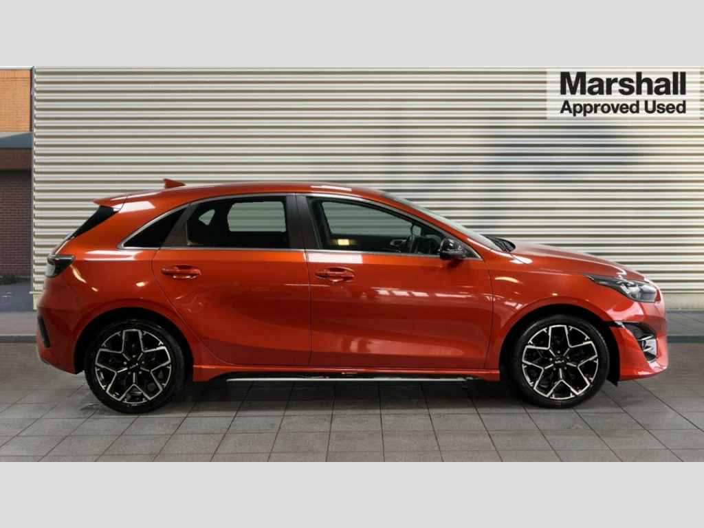 Kia Ceed 1.5T GDi ISG GT-Line 5dr 10.25" touchscreen satellite navigation, 4.2" supervision colour cluster display, Apple car play/Android Auto with voice control, Bluetooth with Voice Recognition & Music Streaming, Cruise control + speed limiter, Driver attention warning + (DAW) with leading vehicle departure warning, Emergency call service, Emergency stop signalling system, Forward Collision-Avoidance Assist (FCA) - City/Pedestrian/Cyclist, Kia connect UVO, Lane Following Assist (LFA), Lane keep assist, Manual speed limit assist, Motor driven power steering, Rear parking sensor, Reversing camera system with dynamic guidelines (Integrated into centre fascia screen), Trip computer, Intelligent Stop and Go, 6 speaker audio system, DAB Radio with MP3, Illuminated USB ports, Steering wheel mounted controls, USB Fast Charger in Front Centre Console, USB port for connection of a media device, All-round Electric Windows with Front Auto Up & Down Function, Auto dimming rear view mirror, Auto headlights, Automatic defog system, Automatic headlights control, Body colour bumpers, Body colour exterior door handles, Body coloured rear roof spoiler with high gloss black trim, Body coloured side sill mouldings, Chrome window surround, Electric adjustable/heated/folding door mirrors with LED Indicators, Front fog lights, Halogen projection headlights, Heated rear window with timer, High beam assist, High Gloss Black and Satin Chrome Radiator Grille, High gloss black door mirrors, LED daytime running lights, LED High-mounted Brake Light, LED rear combination lights, LED rear fog light, Privacy glass (rear side windows and tailgate), Rain sensing front wipers, Rear side wing doors, Rear wash/wipe, Tinted glass, Wide view drivers door mirror, Windscreen Washer Level Warning, 12V power socket in luggage compartment, 3 seat bench in 2nd row, 3 x passenger assist grips, 60/40 split folding rear seat, All-round height adjustable headrests, Aluminium pedals, Black headlining, Centre console storage box, Centre console storage box/armrest, Cloth/faux leather upholstery, Cupholders in centre console, Cupholders in rear armrest, Dash illumination dimmer switch, Door courtesy lamps, Driver & Front Passenger Sunvisors with Vanity Mirror Illumination & Ticket Holder, Driver + front passenger electric lumbar support, Driver's seat height adjuster, Dual Height Luggage Area Floor, Dual zone automatic air conditioning, Faux leather door centre trim, Faux leather gear knob, Front and rear door storage, Front cabin map light with sunglasses case, Front Passenger Seat Height Adjuster, Front seat back pockets, Gear shift indicator, Heated front seats, Heated steering wheel, Interior door lock/unlock function, ISOFIX Child seat top tethers and anchor fixings, Leather D-Cut steering wheel with grey stitching, Leather handbrake, Luggage area light, Luggage area parcel shelf, Luggage hooks, Rear centre armrest, Rear coat hooks, Satin chrome interior door handles, Single front passenger seat, Tilt/telescopic adjustable steering wheel, ABS with Electronic Brakeforce Distribution (EBD) and Brake Assist System (BAS), All round 3-point seatbelts, Dual front side airbags, Dual horn, Electronic stability control (ESC) and vehicle stability management (VSM), Front passenger airbag cut-off switch, Height adjustable front seatbelts, Hill start assist control (HAC), Impact sensing auto door unlocking, Rear door child safety locks, Seatbelt reminder warning, Twin curtain airbags, Twin front airbags, Tyre pressure monitoring system, Alarm system, Engine Immobiliser & Deadlocks, Engine Start/Stop Button with Smart Entry System, Locking wheel nuts, Speed sensitive auto door locking, Black high gloss front console garnish & door trim, Satin Chrome Fascia Trim, 17" GT-Line alloy wheels, Tyre mobility kit