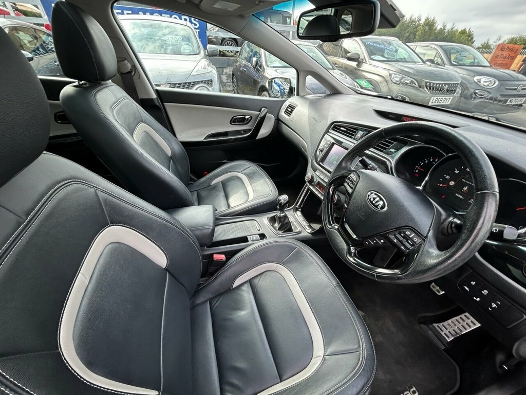 Here we have a superb example of our Kia Ceed 4 - which comes with the full 4 pack which includes alloy wheels, Touchscreendisplay with sat nav, Bluetooth with Music Streaming, DAB Digital Radio, full leather interior with Heated Front Seats, Heated Steering Wheel, Hill-Start Assist, Lane Departure Warning System, Leather Trimmed Steering Wheel, Panoramic Sunroof, tinted Privacy Glass, Reversing Camera, Smart Park Assist System, USB & AUX ports, a Free 3 Month Warranty & a Full 12 Month MOT with NO Advisories.   We do a FREE Experian HPI Check on every vehicle.   Poor credit finance is also available on this car.  We have a huge selection of over 250 cars to choose from & are open 7 days a week.  WARRANTY Every car comes with a 3 month parts & labour warranty that can be extended upon request.  MOT We complete a full 12 month MOT that will be carried out at the point of sale. You don't have to worry about the previous MOT as we will do a fresh one for you & complete any previous or current advisories.  HPI All of our cars have a full HPI check. If any of our cars are showing on finance or any mileage discrepancies then just give us a call as usually Experian just forget to update their system which can always be rectified.   VOSA All of our cars have an up to date VOSA history check.  PART EXCHANGE  We can take your old car in as part exchange no matter what the condition.  LOCATION We are situated just opposite the entrance to the old Federation Brew 12V Power Socket - Front Centre Console , 12V Power Socket - Luggage Compartment, 17in Alloy Wheels, 3 x Passenger Assist Grips, 6-Speaker System, 60-40 Split Folding 2nd Row Seats, 7in Touchscreen Satellite Navigation wit, ABS with Electronic Brakeforce Distribut, Alarm System, All-Round 3-Point Seatbelts, All-Round Electric Windows with Drivers , All-Round Height Adjustable Headrests, Aluminium Finished Engine Start-Stop But, Ambient Light - Front Centre Console Tra, Armrest - Rear Centre, Auto Dimming Rear-View Mirror, Automatic Defog System, Automatic Headlight Control, Black High Gloss Front Console Tray Garn, Blind Spot Detection - BSD with Rear-Cro, Bluetooth with Music Streaming, Bod