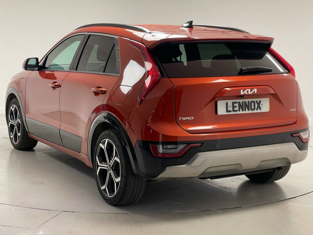 This 2022 Kia Niro GDi 3 is a superb example, having been owned by only one person since new. This Euro 6 compliant, 1.6 litre petrol plug in hybrid offers an efficient and modern driving experience. It comes equipped with a 5 metre Type 2 to Type 2 charger cable, rear parking sensors, and a reversing camera with dynamic guidelines, all integrated into the central fascia screen for ease of use.Further enhancing comfort and convenience, this Niro features a heated steering wheel and dual zone climate control, allowing both driver and passenger to set their preferred temperature. These thoughtful additions, combined with the plug in hybrid technology and single owner provenance, position this Kia Niro GDi 3 as a particularly appealing choice for those seeking a well maintained and feature rich vehicle. in alloy wheels with continental tyres, 1x front 12v socket, 1x luggage compartment 12v socket, 2x c-type charge port on front seats, 2x front usb charge ports - 1x type c, 5 seats, 6-speaker audio system, 60-40 split remote folding rear seats, abs - anti lock braking system, ac inverter 220v, acoustic film - windscreen, adaptive smart cruise control with stop and go functionality, air filter, airbags - driver, airbags - passenger, alarm system and engine immobiliser, all-round 3-point seatbelts, all-round electric windows with driver and front passenger auto up-down function safety function, all-round height adjustable headrests, android auto and apple carplay with voice control, artificial leather steering wheel, artificial leather storage console box, automatic headlight control, automatic windscreen de-fog, bca - rear blind spot collision avoidance assist, backlight glass with timed heater, black beltline mouldings, black and chrome radiator grille, bluetooth with music streaming, body coloured bumpers, body coloured outside handle, centre console cupholders, centre fascia - metal chopped carbon, centre side front airbag, digital clock, door deadlocks, drive mode select - eco-sport, driver power adjusted seat, driver and passenger sunvisors with vanity mirror and illumination, dual led headlights - low and high projection, dual shell horn, dual temperature control, e-shift - shift by wire, esc - electronic stability control, electrically folding door mirrors, electronic parking brake, emergency stop signalling - ess, engine start-stop button with smart entry system, forward collision avoidance assist - fca 1.5 car-pedestrian-cyclist-junction turning, free 7-year kia connect services - uvo, front parking sensors, front passenger airbag cut off switch, front seatback pockets, front seatbelt height adjusters, front and rear chrome skid plates, front and rear door storage, gloss black cladding, glovebox with illumination, heated front seats, heated steering wheel, high gloss door mirrors, highway driving assist - hda 1.0, hill-start assist control - hac, isofix child seat top tethers and anchor fixings, impact sensing auto door unlocking, inside door handle - chrome coating, integrated 4in tft cluster with 10.25in touchscreen display with navigation, intelligent speed limit assist - isla, interior door lock-unlock function, knee airbag - driver, led daytime running lights, led high middle stop light, lane follow assist - lfa, lane keep assist system - lkas, locking wheel nuts, low washer fluid warning, luggage area load cover, luggage board, lumbar support - driver - power aircell type, motor driven power steering - mdps, overhead console - 2nd row with luggage lamp - bulb, rain sensor, rear console ventilation duct, rear fog light, rear led lights, rear parking sensors, rear privacy glass, rear seat alert, rear spoiler, reversing camera with dynamic guidelines integrated into centre fascia screen, roof rails, rubber pedals, side and curtain airbags, solar windscreen, standard door scuff plates, steering wheel - paddle shift, steering wheel mounted audio controls, tmk - tyre mobility kit, tilt and telescopic steering wheel adjustment, trip computer, type 2 to type 2 charger - 5m cable length, tyre pressure monitoring system - tpms, visible vehicle identification number - vin, wireless phone charger