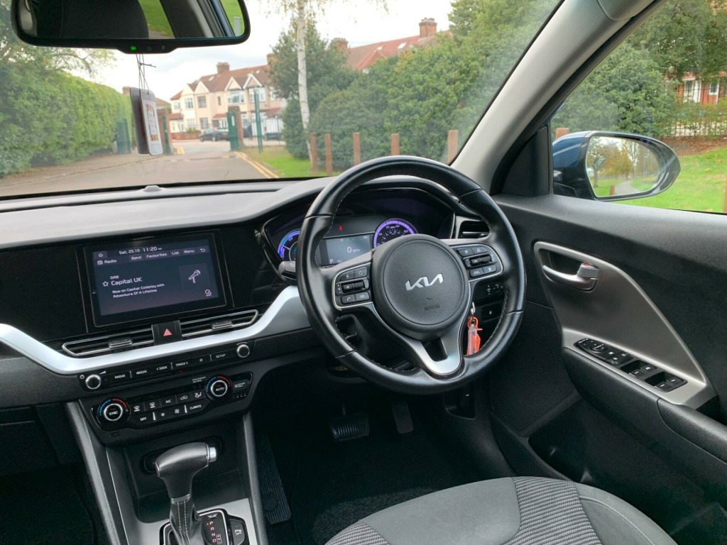 This 2022 Kia Niro GDi 2 is a remarkable find, boasting exceptionally low mileage of just 10171 miles from its single owner. This Euro 6 compliant 1.6 litre petrol hybrid offers an efficient and smooth driving experience. Inside, you'll appreciate the convenience of Apple CarPlay and Android Auto, both with voice control, keeping you connected on the go. Parking is made simpler with rear parking sensors and a reversing camera system, while the dual automatic air conditioning ensures a comfortable cabin temperature for all occupants.The Kia Niro GDi 2 stands out with its impressive fuel economy, achieving a highlight of 59 miles per gallon, which is better than many similar vehicles. Furthermore, its low insurance group and low CO2 emissions highlight its cost effectiveness and environmental consideration, making it a sensible choice for many drivers.You can Visit Our website for more cars similar to thishttps://www.bestluxurycars.co.uk/used/carsFREE DELIVERY INSIDE M25CAR HAVE MAIN DEALER SERVICE HISTORYFINANCE AVAILABLE, ALL MAJOR DEBIT CARDS AND CREDIT CARDS ARE ACCEPTED, HPI CLEAR, DRIVEWAY INSURANCE (TERMS AND CONDITIONS APPLY),3 MONTHS MECHANICAL WARRANTY PLUS 1 YEAR FREE BREAKDOWN COVER, PART EXCHANGE WELCOME, EXTENDED WARRANTY UPTO 36 MONTHS AVAILABLE,£95 Admin FeeDO NOT HESITATE TO CALL US FOR ANY FIURTHER INFORMATION: 02085973880 , MOB 07507382215, in alloy wheels, 3 x passenger assist grips, 4.2in supervision cluster with lcd tft colour display, 6-speaker system, 60-40 split folding 2nd row seats, 8in touchscreen display, abs - anti lock braking system, adaptive smart cruise control with stop and go functionality, alarm system and engine immobiliser, all-round 3-point seatbelts, all-round electric windows with drivers auto up-down function, all-round height adjustable headrests, android auto with voice control, apple carplay with voice control, auto dimming rear-view mirror, automatic headlight control, automatic windscreen de-fog, black beltline mouldings, black side sill and wheel arch body mouldings, bluetooth with music streaming, body coloured - high gloss door mirrors, centre console storage box, centre room lamp, chrome coated exterior door handles, cupholders in rear armrest, dab radio with mp3 compatibility, digital clock, door deadlocks, drive mode select - eco-sport, driver and passenger sunvisors with vanity mirror and illumination, drivers seat height adjuster, drivers wide view door mirror, dual automatic air conditioning, epb - electronic parking brake with autohold, esc - electronic stability control, electrically folding-adjustable and heated door mirrors with led indicator lights, emergency stop signalling - ess, forward collision-avoidance assist, front bulb fog lights, front passenger airbag cut off switch, front passenger seat height adjuster, front seatback pockets - front passenger, front seatbelt height adjusters, front usb port, front and rear centre armrests, front and rear door storage, high gloss black centre fascia trim, high gloss black door insert trim, high gloss black lower console trim, high gloss black steering wheel trim, hill-start assist control - hac, isofix child seat top tethers and anchor fixings, ignition keyhole illumination, impact sensing auto door unlocking, interior door lock-unlock function, knee airbag - driver, led daytime running lights, led rear tail lights, lane follow assist - lfa, lane keep assist system - lkas, leather trimmed door armrests, leather trimmed gear shift, leather trimmed steering wheel, light grey headlining, locking wheel nuts, luggage area light, luggage area load cover, luggage net hooks, manual headlight levelling device, matt black colour radiator grille, motor driven power steering - mdps, overhead console lamp with sunglasses case, privacy glass - rear windows and tailgate, projection headlights, rain sensing front wipers, rear parking sensors, rear spoiler, rear ventilation duct, remote central locking with folding key, reversing camera system, roof rails, satin finish interior door handles, shark fin antenna, solar glass, speed limiter, speed sensing auto door locking - dealer-activated feature, steering wheel - paddle shift, steering wheel mounted audio controls, sunglasses case, tmk - tyre mobility kit, tilt and telescopic steering wheel adjustment, towing pack, trip computer, twin curtain airbags with roll-over sensor, twin front airbags, twin side airbags - front, tyre pressure monitoring system - tpms, usb port in centre console - fast charge, underfloor tray, visible vehicle identification number - vin, voice recognition, welcome and follow-me-home light functionality
