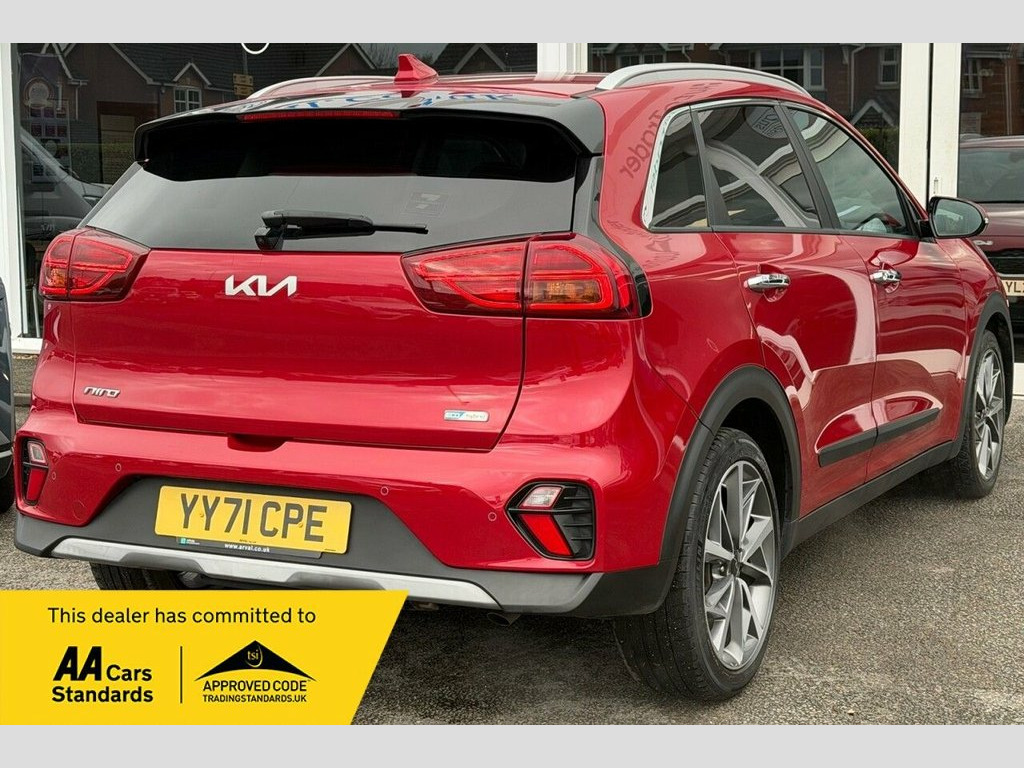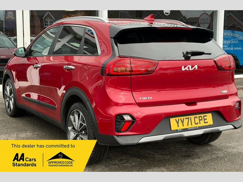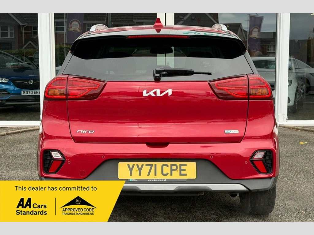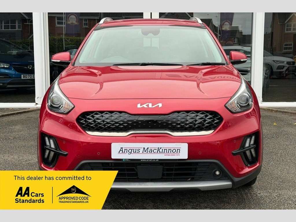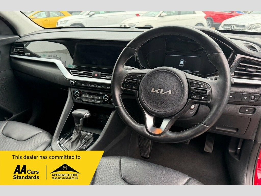 Boasting a full dealership service history and a clear vehicle history check, this 2021 Kia Niro GDi 3 is a well maintained example. This Euro 6 compliant 1.6 litre petrol hybrid is presented in excellent condition with its MOT valid until September 2026. Having had only one owner from new, it has covered 40940 miles, with its last service completed on 2025-09-03. Inside, you will find a host of convenient features including Apple CarPlay with Voice Control, heated front seats, and a reversing camera system. For added comfort and ease of driving, it is equipped with adaptive smart cruise control with stop and go functionality and dual automatic air conditioning. This Kia Niro GDi 3 offers several advantages over similar vehicles. Its impressive fuel economy of 54 mpg means fewer trips to the petrol station, and its low CO2 emissions highlight its environmental consideration. Furthermore, its low insurance group rating indicates that running costs will be kept to a minimum, making it an economical choice for many drivers. ========= Specification: 10.25in Touchscreen Sat Nav with European Mapping Apple CarPlay & Android Auto with Voice Control Reversing Camera System Heated Front Seats & Heated Steering Wheel Adaptive Smart Cruise Control with Stop & Go Dual Automatic Air Conditioning Wireless Phone Charger Front & Rear Parking Sensors 18in Alloy Wheels Lane Keep Assist & Lane Follow Assist Rain-Sensing Front Wipers Drive Mode Select – Eco & 10.25in Touchscreen Satellite Navigation, 18in Alloy Wheels, 3 x Passenger Assist Grips, 4.2in Supervision Cluster with LCD TFT C, 6-Speaker System, 60-40 Split Folding 2nd Row Seats, 8-Way Drivers Power Adjustable Seat - Sl, ABS - Anti Lock Braking System, Adaptive Smart Cruise Control with Stop , Alarm System and Engine Immobiliser, All-Round 3-Point Seatbelts, All-Round Electric Windows with Driver a, All-Round Height Adjustable Headrests, Aluminium Door Scuff Plates, Android Auto with Voice Control, Apple CarPlay with Voice Control, Auto Dimming Rear-View Mirror, Automatic Headlight Control, Automatic Windscreen De-Fog, Black Beltline Mouldings, Black Side Sill and Wheel Arch Body Moul,