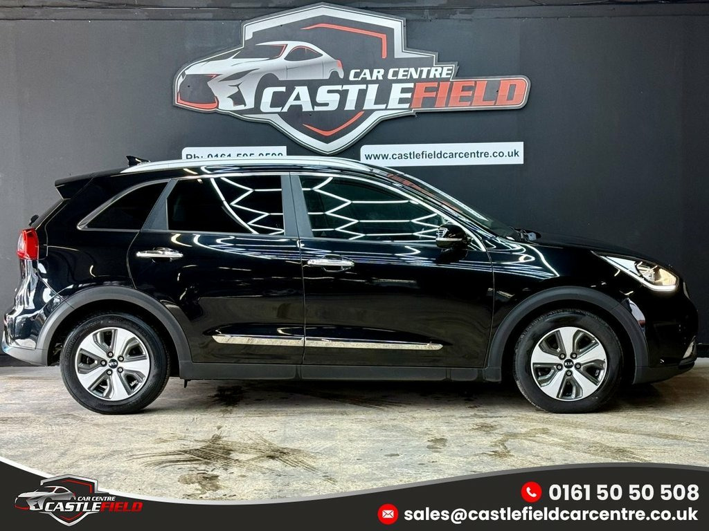 Kia Niro 1.6 GDi 8.9kWh 3 SUV 5dr Petrol Plug-in Hybrid DCT Euro 6 (s/s) (139 bhp) – £10,895 Registration: AO18AVZ | Mileage: 84,050 miles | Colour: Black | Fuel: Petrol Plug-in Hybrid | Transmission: DCT Automatic | Body Type: SUV | First Registered: 16/03/2018 The Kia Niro Plug-in Hybrid is a practical, efficient, and stylish SUV that offers the best of both worlds – electric efficiency with petrol backup. This 2018 model, finished in sleek black, combines modern technology, low running costs, and excellent comfort, making it a fantastic choice for both city commutes and long motorway drives. The 1.6 GDi petrol engine paired with an 8.9kWh plug-in hybrid system delivers up to 139 bhp, offering smooth performance with the added benefit of electric driving for shorter trips. With its DCT automatic gearbox, every journey is effortless. Key Features: Plug-in Hybrid technology – charge at home or on the go 1.6 GDi petrol engine with 139 bhp Automatic DCT gearbox Spacious and practical SUV body style Excellent fuel economy & lower emissions Premium interior with modern infotainment system Ideal balance of comfort, technology, and efficiency Why Buy From Castlefield Car Centre? AA Warranty included for peace of mind 12 Months AA Breakdown Cover Full pre-sale inspection before delivery Flexible finance available from 7.9% APR Part exchange welcome – competitive valuations offered This Kia Niro is in great condition, combining prac 16in Alloy Wheels, 3 x Passenger Assist Grips, 4.2in Supervision Cluster with LCD TFT C, 60-40 Split Folding 2nd Row Seats, 8-Speaker JBL - Premium Sound System wit, 8-Way Drivers Power Adjustable Seat - Sl, 8in Touchscreen Satellite Navigation wit, ABS - Anti Lock Braking System, Advanced Driving Assistance Pack - ADAP, Alarm System and Engine Immobiliser, All-Round 3-Point Seatbelts, All-Round Electric Windows with Driver a, All-Round Height Adjustable Headrests, Apple CarPlay and Android Auto, Auto Dimming Rear-View Mirror, Automatic Headlight Control, Black Side Sill and Wheel Arch Body Moul, Bluetooth with Music Streaming, Body Coloured - High Gloss Door Mirrors, Centre Cabin Light, Cen