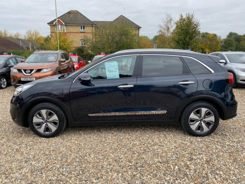 AUTOMATIC+EXCELLENT SERVICE HISTORY CONSISTING OF X7 SERVICES+8 INCH TOUCHSCREEN SATELLLITE NAVIGATION SYSTEM+DAB DIGITAL RADIO+BLUETOOTH WITH MUSIC STREAMING+DUAL ZONE CLIMATE CONTROL AIR-CONDITIONING+AUTOMATIC HEADLIGHT ACTIVATION+RAIN-SENSING WINDSCREEN WIPERS+FRONT & REAR PARKING ASSISTANCE WITH CAMERA+HEATED LEATHER UPHOLSTERY+HEATED MULTIFUNCTION STEERING WHEEL+METALLIC 'GRAVITY BLUE' PAINT+16 INCH ALLOY WHEELS. At Haverhill Car Xchange we would like to offer you our AUTOMATIC Kia Niro 3 SUV which has been finished in a metallic 'Gravity Blue' paint with luxurious HEATED Black leather upholstery and HEATED Multifunction Steering Wheel. Excellent Specification Includes an 8 Inch Touchscreen Satellite Navigation System with European Mapping, Kia Connected Services Featuring TOMTOM-Traffic-Speed Cameras-Local Search and Weather Updates, DAB Digital Radio- Apple CarPlay/Android Auto, Bluetooth with Music Streaming, Fast Charge USB Port in Centre Console, AUX Port, Wireless Phone Charger, Voice Recognition, Lane Keep Assist, Dual Zone Climate Control Air-Conditioning, All-Round Electric Windows, Body Coloured Bumpers/Door Handles and Door Mirrors with Integrated Side Indicators, Roof Rails, Automatic Headlight Activation, LED Daytime Running Lights, Welcome and Follow-Me-Home Headlight Function, Front Fog Lights, LED Rear Combination Lights, Rain-Sensing Windscreen Wipers, Heated Leather Upholstery, Front and Rear Parking Assistance with Parking Cam Leather - Black, Gravity Blue, 16in Alloy Wheels, 3 x Passenger Assist Grips, 4.2in Supervision Cluster with LCD TFT C, 60-40 Split Folding 2nd Row Seats, 8-Speaker JBL - Premium Sound System wit, 8-Way Drivers Power Adjustable Seat - Sl, 8in Touchscreen Satellite Navigation wit, ABS - Anti Lock Braking System, Advanced Driving Assistance Pack - ADAP, Alarm System and Engine Immobiliser, All-Round 3-Point Seatbelts, All-Round Electric Windows with Driver a, All-Round Height Adjustable Headrests, Apple CarPlay and Android Auto, Auto Dimming Rear-View Mirror, Automatic Headlight Control, Black Side Sill and Wheel Arch Body Moul, Bluetooth with Music Streaming, Body Coloured - High Gloss Door M
