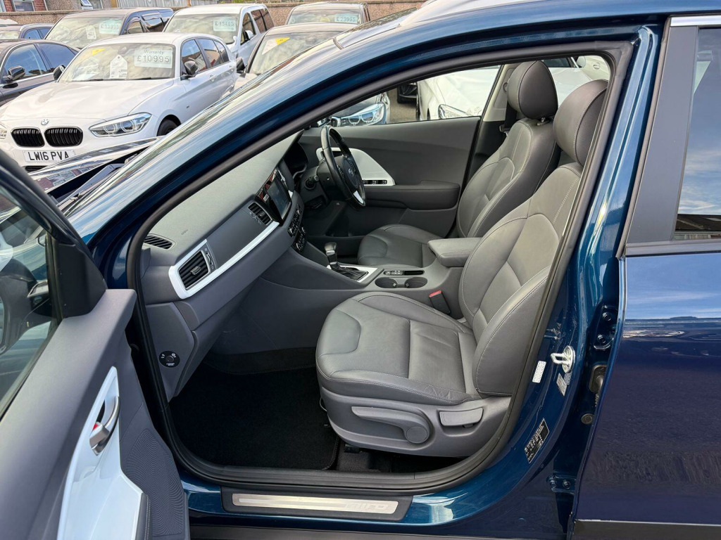 ULEZ ✅, All Major Cards Accepted. Finance Available. Free One Year Basic Breakdown Cover with AA. Sat Nav, Front Cooled Seats, Front & Back Heated Seats, SunRoof, Reverse Camera, Full Leather, Electric Memory Seats, Front & Back Parking Sensors, Automatic Folding Wing Mirrors, 5 x Services - 5 x Main Dealer, 2 x Keys, Good Condition, , Cars Spot is excited to offer this 2018 KIA NIRO in blue, a perfect vehicle for families with young children. With a 1580cc petrol hybrid engine, this car offers a great balance of performance and fuel efficiency. , Inside, youll find a comfortable and spacious interior, complete with full leather upholstery and front cooled seats, ideal for hot summer days. The front and back heated seats ensure that everyone stays warm and cosy during the colder months. The electric memory seat allows for easy adjustments, providing the perfect driving position. , The KIA NIRO also features a range of convenient and safety-focused features, including a built-in Sat Nav system, reverse camera, and front and back parking sensors. These features make navigating busy roads and parking in tight spaces a breeze. , The sunroof adds a touch of brightness to the interior, providing natural light and a sense of openness. With its practical and feature-packed design, the Kia Niro is an excellent choice for families seeking a reliable and comfortable vehicle. , As a 2018 model, the Kia Niro benefits from advanced safety features and modern technology, making it an excellent option for those seeking a dependable family car. With its low running costs and Petrol Hybrid engine, this vehicle is perfect for families who want to reduce their environmental impact without sacrificing performance. , We invite you to come and take a closer look at this fantastic KIA NIRO. With its comfortable interior, advanced safety features, and low running costs, its the perfect vehicle for families with young children.