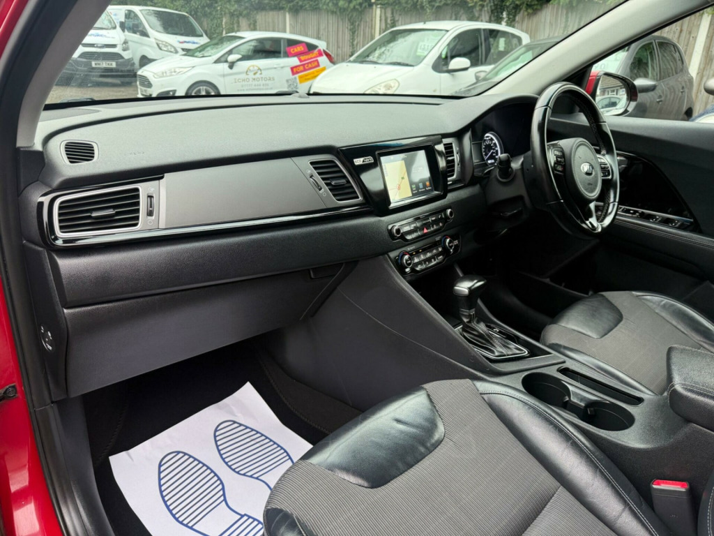 Echo motors are delighted to offer this beautiful KIA Niro which comes with: Part Service history, 2 Keys, 3 Owners, £20 tax, ULEZ Compliant, HPI Clear, Climate control, Reverse camera, Bluetooth, ***FREE DELIVERY WITHIN 20 MILE RADIUS******EXTENDED WARRANTY AVAILABLE*** Due to high volume of enquiries, we recommend booking a viewing in advance, this can be done via phone 07747 879 005 or email salesechomotors.co.uk Standard of quality: -All cars go through a 32 point inspection prior to sale -All vehicles come with a nationwide Auto Protect warranty -Minimum of 6 Months of MOT provided with all cars Nationwide delivery is available, give us a call or email us for a quote. Part-exchanges is also available. GIVE US A CALL ON 07747 879 006 OR EMAIL SALESECHOMOTORS.CO.UK ADDRESS: ECHO MOTORS HORSHAM ROAD, FIVE OAKS BILLINGSHURST RH14 9AL v power socket - rear - centre console, 16in alloy wheels, 3 x passenger assist grips, 4.2in supervision cluster with lcd tft colour display, 6-speaker system, 60-40 split folding 2nd row seats, 7in touchscreen satellite navigation with european mapping with traffic message channel - tmc, abs - anti lock braking system, advanced anti-theft system including immobiliser and alarm, all-round 3-point seatbelts, all-round electric windows with drivers auto up-down function, all-round height adjustable headrests, android auto connectivity, auto dimming rear-view mirror, automatic headlight control, black side sill and wheel arch body mouldings, bluetooth with voice recognition and music streaming, centre cabin light, centre console storage box, chrome beltline mouldings, chrome coated exterior door handles, chrome coated interior door handles, cruise control with speed limiter, cupholders in rear armrest, dab radio with mp3 compatibility, digital clock, door deadlocks, drive mode select, driver and passenger sunvisors with vanity mirror and illumination, drivers seat height adjuster, drivers wide view door mirror, dual automatic air conditioning with ioniser, esc - electronic stability control, electrically folding-adjustable and heated door mirrors with led indicator lights, emergency stop signalling - ess, foot parking brake, front cabin map light with sunglasses case, front fog lights, front passenger airbag cut off switch, front seatback pockets - driver, front seatbelt height adjusters, front and rear centre armrests, front and rear door storage, grab-type exterior door handles, high gloss black centre fascia trim, high gloss black door insert trim, high gloss black lower console trim, high gloss black steering wheel trim, high gloss door mirrors, hill-start assist control - hac, isofix child seat top tethers and anchor fixings, ignition keyhole illumination, impact sensing auto door unlocking, interior door lock-unlock function, kia connected services featuring tomtom - traffic - speed cameras - local search and weather updates, knee airbag - driver, led daytime running lights, led rear tail lights, lane keep assist system - lkas, leather trimmed door armrests, leather trimmed gear shift, leather trimmed steering wheel, light grey headlining, locking wheel nuts, luggage area light, luggage area load cover, luggage net hooks, manual headlight levelling device, matt black colour radiator grille, motor driven power steering - mdps, privacy glass - rear windows and tailgate, rain sensing front wipers, rear parking sensors, rear spoiler, rear ventilation duct, remote central locking with folding key, reversing camera system, roof rails, shark fin antenna, solar glass, speed sensing auto door locking, steering wheel mounted audio controls, tmk - tyre mobility kit, tilt and telescopic steering wheel adjustment, trip computer, twin curtain airbags with roll-over sensor, twin front airbags, twin side airbags - front, tyre pressure monitoring system - tpms, usb port in centre console, usb and aux ports for connection of an audio media device - ipod - memory stick, visible vehicle identification number - vin, welcome and follow-me-home light functionality