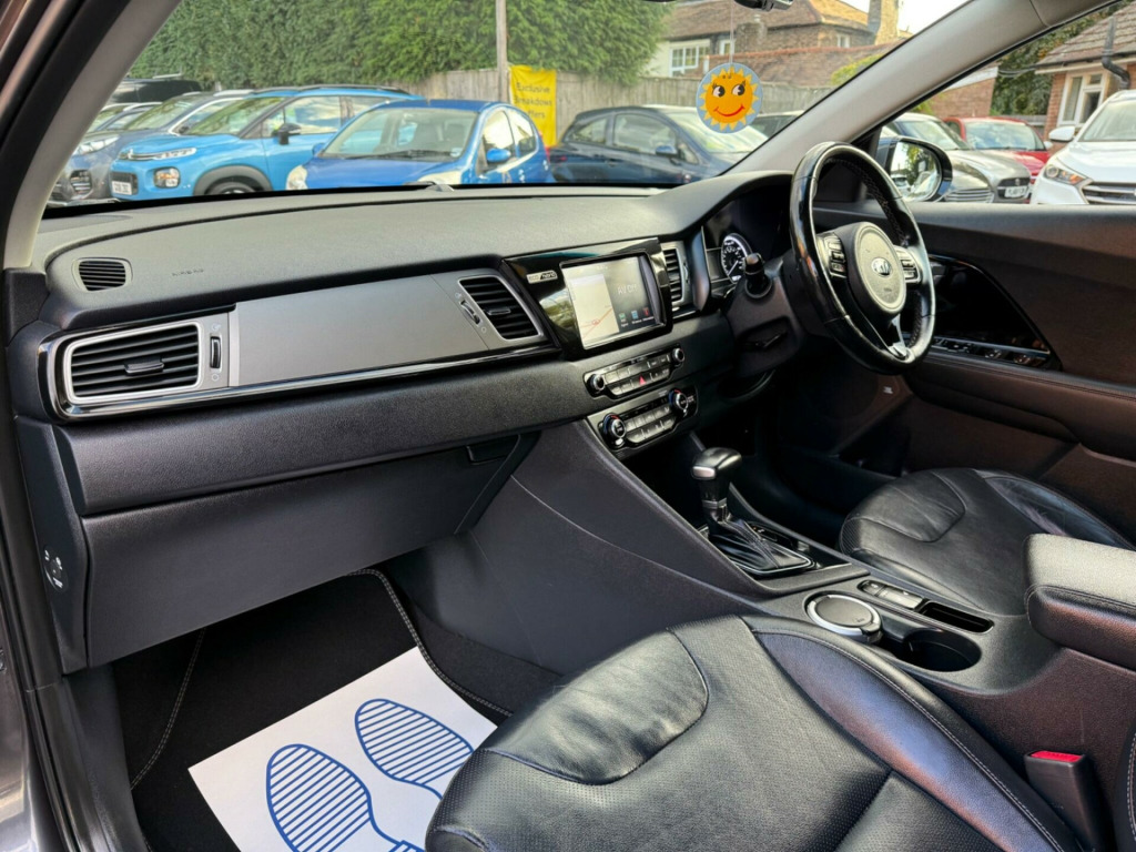 Echo motors are delighted to offer this beautiful KIA Niro which comes with: Part service history, 2 Owners, 2 Keys, ULEZ Compliant, HPI Clear, Remote central locking, Heated Seats, Apple Car Play, Sat-Nav, Reverse Camera, Climate Control, Seat ISOFIX***EXTENDED WARRANTY AVAILABLE*** Due to high volume of enquiries, we recommend booking a viewing in advance, this can be done via phone 07747 879 005 or email salesechomotors.co.uk Standard of quality: -All cars go through a 32 point inspection prior to sale -All vehicles come with a nationwide Auto Protect warranty -Minimum of 6 Months of MOT provided with all cars Nationwide delivery is available, give us a call or email us for a quote. Part-exchanges is also available. GIVE US A CALL ON 07747 879 006 OR EMAIL SALESECHOMOTORS.CO.UK ADDRESS: ECHO MOTORS HORSHAM ROAD, FIVE OAKS BILLINGSHURST RH14 9AL in alloy wheels, 3 x passenger assist grips, 4.2in supervision cluster with lcd tft colour display, 60-40 split folding 2nd row seats, 8-speaker jbl - premium sound system with subwoofer - external amp and front centre speaker, 8-way drivers power adjustable seat - sliding-reclining-height adjustment, 8in touchscreen satellite navigation with european mapping and traffic messaging channel - tmc, abs - anti lock braking system, alarm system and engine immobiliser, all-round 3-point seatbelts, all-round electric windows with driver and front passenger auto up-down function, all-round height adjustable headrests, apple carplay and android auto, auto dimming rear-view mirror, automatic headlight control, automatic windscreen de-fog, black side sill and wheel arch body mouldings, bluetooth with music streaming, body coloured - high gloss door mirrors, centre cabin light, centre console storage box, chrome beltline mouldings, chrome coated exterior door handles, cruise control, cupholders in rear armrest, dab radio with mp3 compatibility, digital clock, door deadlocks, drive mode select - eco-sport, driver and passenger sunvisors with vanity mirror and illumination, drivers seat power lumbar support, drivers wide view door mirror, dual automatic air conditioning, esc - electronic stability control, electrically folding-adjustable and heated door mirrors with led indicator lights, emergency stop signalling - ess, foot parking brake, front cabin map light with sunglasses case, front fog lights, front parking sensors, front passenger airbag cut off switch, front seatback pockets - driver, front seatback pockets - front passenger, front seatbelt height adjusters, front usb and aux port, front and rear centre armrests, front and rear door storage, heated front seats, heated steering wheel, high gloss black centre fascia trim, high gloss black door insert trim, high gloss black lower console trim, high gloss black steering wheel trim, hill-start assist control - hac, isofix child seat top tethers and anchor fixings, ignition keyhole illumination, impact sensing auto door unlocking, interior door lock-unlock function, kia connected services featuring tomtom - traffic - speed cameras - local search and weather updates, knee airbag - driver, led daytime running lights, led rear combination lights, lane keep assist system - lkas, leather trimmed door armrests, leather trimmed gear shift, leather trimmed steering wheel, light grey headlining, locking wheel nuts, luggage area light, luggage area load cover, luggage net hooks, manual headlight levelling device, matt black colour radiator grille, motor driven power steering - mdps, privacy glass - rear windows and tailgate, projection headlights, rain sensing front wipers, rear parking sensors, rear spoiler, rear ventilation duct, remote central locking with folding key, reversing camera system - integrated into satellite navigation screen, roof rails, satin finish interior door handles, shark fin antenna, solar glass, speed limiter, speed sensing auto door locking - dealer-activated feature, stainless steel door scuff plates, steering wheel mounted audio controls, tmk - tyre mobility kit, tilt and telescopic steering wheel adjustment, trip computer, twin curtain airbags with roll-over sensor, twin front airbags, twin side airbags - front, tyre pressure monitoring system - tpms, usb port in centre console - fast charge, underfloor tray, visible vehicle identification number - vin, welcome and follow-me-home light functionality, wireless phone charger