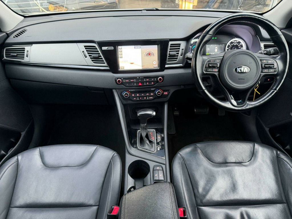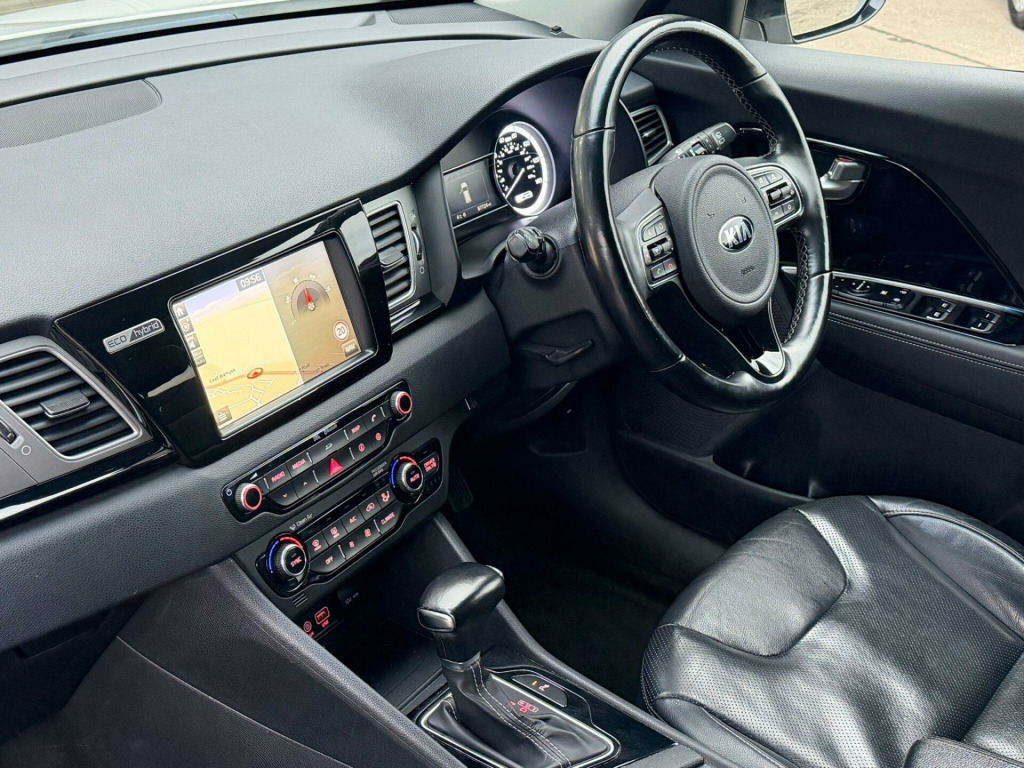This 2016 Kia Niro h GDi 3 boasts a clear vehicle history, offering you peace of mind. This stylish hatchback features a 1.6 litre petrol hybrid engine, meeting Euro 6 emissions standards. Inside, you'll find a comfortable cabin equipped with heated front seats and a heated steering wheel for those colder days. Stay connected and comfortable with dual automatic air conditioning that includes an ioniser, and conveniently charge your phone with the wireless phone charger. The automatic headlight control ensures optimal visibility in varying conditions.The Kia Niro h GDi 3 stands out with an impressive fuel economy of 64 miles per gallon, demonstrating its efficiency compared to other vehicles in its class. Furthermore, its low insurance group rating suggests that running costs will be more affordable. This combination of economical running and desirable features makes this 2016 Kia Niro a compelling choice.. 10-Way Drivers Power Adjustable Seat, 12V Power Socket - Rear - Centre Console, 18in Alloy Wheels, 3 x Passenger Assist Grips, 4.2in Supervision Cluster with LCD TFT Colour Display, 60-40 Split Folding 2nd Row Seats, 8-Speaker JBL - Premium Sound System with Subwoofer - External Amp and Front Centre Speaker, 8in Touchscreen Satellite Navigation with European Mapping and Traffic Messaging Channel - TMC, ABS - Anti Lock Braking System, Advanced Anti-Theft System including Immobiliser and Alarm, All-Round 3-Point Seatbelts, All-Round Electric Windows with Driver and Front Passenger Auto Up-Down Function, All-Round Height Adjustable Headrests, Android Auto Connectivity, Auto Dimming Rear-View Mirror, Automatic Headlight Control, Black Side Sill and Wheel Arch Body Mouldings, Bluetooth with Voice Recognition and Music Streaming, Centre Cabin Light, Centre Console Storage Box, Chrome Beltline Mouldings, Chrome Coated Exterior Door Handles, Chrome Coated Interior Door Handles, Cruise Control with Speed Limiter, Cupholders in Rear Armrest, DAB Radio with MP3 Compatibility, Digital Clock, Door Deadlocks, Drive Mode Select, Driver and Passenger Sunvisors with Vanity Mirror and Illumination, Drivers Seat Power Lumbar Support, Drivers Wide View Door Mirror, Dual Automatic Air Conditioning with Ioniser, ESC - Electronic Stability Control, Electrically Folding-Adjustable and Heated Door Mirrors with LED Indicator Lights, Emergency Stop Signalling - ESS, Foot Parking Brake, Front Cabin Map Light with Sunglasses Case, Front Fog Lights, Front Parking Sensors, Front Passenger Airbag Cut Off Switch, Front Seatback Pockets - Driver, Front Seatback Pockets - Front Passenger, Front Seatbelt Height Adjusters, Front and Rear Centre Armrests, Front and Rear Door Storage, Grab-Type Exterior Door Handles, Heated Front Seats, Heated Steering Wheel, High Gloss Black Centre Fascia Trim, High Gloss Black Door Insert Trim, High Gloss Black Lower Console Trim, High Gloss Black Steering Wheel Trim, High Gloss Door Mirrors, Hill-Start Assist Control - HAC, ISOFIX Child Seat Top Tethers and Anchor Fixings, Ignition Keyhole Illumination, Impact Sensing Auto Door Unlocking, Interior Door Lock-Unlock Function, Kia Connected Services Featuring TomTom - Traffic - Speed Cameras - Local Search and Weather Updates, Knee Airbag - Driver, LED Daytime Running Lights, LED Rear Tail Lights, Lane Keep Assist System - LKAS, Leather Trimmed Door Armrests, Leather Trimmed Gear Shift, Leather Trimmed Steering Wheel, Light Grey Headlining, Locking Wheel Nuts, Luggage Area Light, Luggage Area Load Cover, Luggage Net Hooks, Manual Headlight Levelling Device, Matt Black Colour Radiator Grille, Motor Driven Power Steering - MDPS, Privacy Glass - Rear Windows and Tailgate, Rain Sensing Front Wipers, Rear Parking Sensors, Rear Spoiler, Rear Ventilation Duct, Remote Central Locking with Folding Key, Reversing Camera System, Roof Rails, Shark Fin Antenna, Solar Glass, Speed Sensing Auto Door Locking, Stainless Steel Door Scuff Plates, Steering Wheel Mounted Audio Controls, TMK - Tyre Mobility Kit, Tilt and Telescopic Steering Wheel Adjustment, Trip Computer, Twin Curtain Airbags with Roll-Over Sensor, Twin Front Airbags, Twin Side Airbags - Front, Tyre Pressure Monitoring System - TPMS, USB Port in Centre Console, USB and AUX Ports for Connection of an Audio Media Device - iPod - Memory Stick, Visible Vehicle Identification Number - VIN, Welcome and Follow-Me-Home Light Functionality, Wireless Phone Charger.