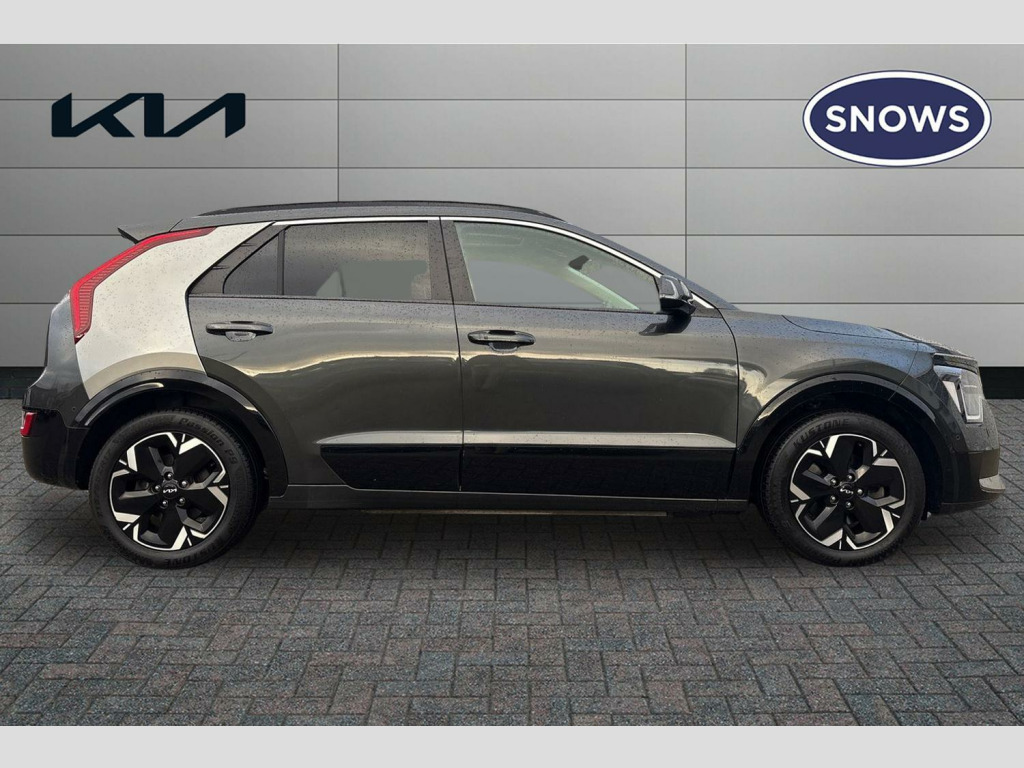 The Kia Niro 4 stands out with its impressive electric capabilities, providing a generous 285 mile range from its 68 kWh battery, which is more than many comparable electric cars. Charging is efficient, with a full charge at home taking approximately 9 hours and 25 minutes using a 7kW charger, and a rapid charge to 80% achievable in just 43 minutes at a public charging station. Furthermore, this model offers ample storage with its large boot space, ensuring practicality for all your needs. 17' Alloy Wheels, Heated Front & Rear Outer Seats, Head-Up Display (TFT-LCD), Integrated 10.25' TFT LCD Cluster w 10.25' Touchscreen Navigation with Free 7-Year Kia Connect Services, Power Opening Tailgate, Premium Relaxation Passenger Seat, Remote Smart Parking Assist (RSPA 1.0), Sunroof (One Touch - Tilt & Slide), Vegan Leather Upholstery, Vehicle-to-Device, Aluminium Pedals, Deluxe Door Scuff Plates, Driver & Front Passenger Power Adjusted Seat, Driver Power Adjusted Memory Seat, Forward Collision-Avoidance Assist (FCA 2.0) Car/Pedestrian/Cyclist/JunctionTurning & Crossing, Highway Driving Assist (HDA 2.0), Lumbar Support Passenger; Power (Aircell Type), Overhead Console 2nd Row & Luggage Lamp - LED, Parking Collision Avoidance Assist, Ventilated Front Seats, Optional Heat Pump, Optional C-Pillar Trim, Android Auto and Apple CarPlay, Driver Lumbar Support, Free 7-year Kia Connect services, Front & Rear Parking Sensors, Heated Front Seats & Steering Wheel, Rear Privacy Glass, All-round Electric Windows with Driver's & Front Passenger Auto Up/Down/Safety Function, Black & Chrome Coated Radiator Grille, Blind Spot Collision Avoidance Assist, Centre Fascia Metal Chopped Carbon, Electrically Folding Door Mirrors, Front & Rear Chrome Skid Plate, Front Parking Sensors, Gloss Black Cladding, Heated Front Seats, Heated Steering Wheel, High Gloss Door Mirrors, Inside Door Handle Chrome Coating, Lumbar Support Driver; Power (Aircell Type), Rain Sensor, Rear Console Ventilation Duct, Wireless Phone Charger, Rear Parking Sensors, 11kW On Board Charging, Smart Cruise Control with Stop & Go, Towing Pack, 2 x C-type port on front seats, 2x Front USB Charge ports (one for C-type / one for USB), 6-Speaker Audio System, Anti-Lock Braking System (ABS), Bluetooth with Music Streaming, Dual LED Headlights (Low & High Projection), eShift SBW, Electrically Heated Door Mirrors, Electronic Stability Control (ESC), Folding Rear Seats, Lane Follow Assist (LFA), Lane Keep Assist System (LKAS), LED Daytime Running Lights, Luggage Board, Rear LED Lights, Rear Solar Glass, Paddle Shifters, Reversing Camera System with Dynamic Guidelines, Roof Rails, Start/Stop Button with Smart Entry System, Solar Windshield, Standard Door Scuff Plates, Tow Pack (wiring), Tyre Mobility Kit, Tyre Pressure Monitoring System (TPMS)