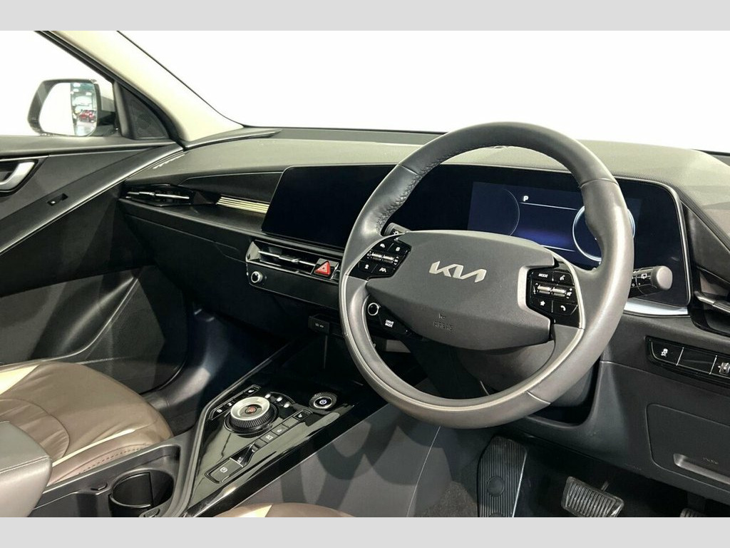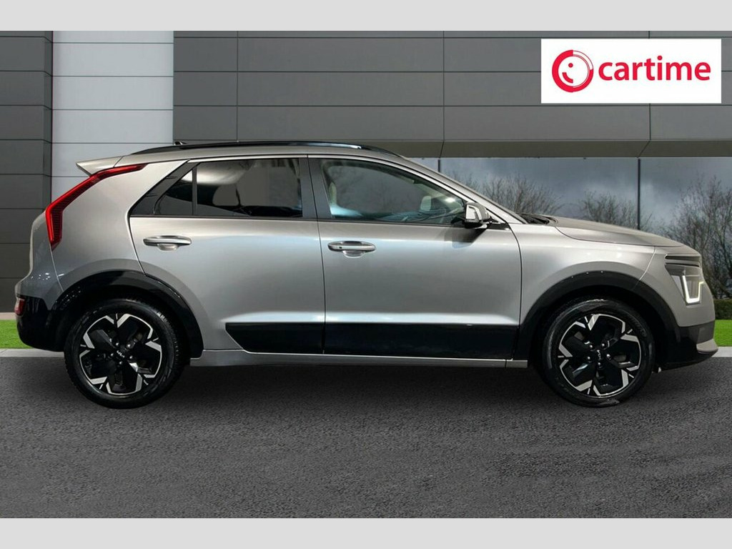 This 2023 Kia Niro 3 is a superb example, having had only one owner since new. This electric vehicle boasts a substantial 68 kWh battery, offering an impressive maximum range of 285 miles when new. For your peace of mind, the MOT is valid until September 2026. Inside, you'll find a host of convenient features including Bluetooth with music streaming, front parking sensors for easier manoeuvring, and a wireless phone charger to keep your devices powered up. The automatic headlight control ensures optimal visibility, and the heated steering wheel provides extra comfort during colder journeys. The Kia Niro 3 stands out with its exceptional electric range of 285 miles, demonstrating its capability for longer trips compared to many other electric vehicles. Charging is also efficient, with a full charge at home taking approximately 9 hours and 25 minutes using a 7kW charger, and a rapid charge from empty to 80% achievable in just 43 minutes at a public charging station. These charging times highlight the practicality of this Niro for everyday use and longer journeys alike. 11KW On Board Charging System, 17in Alloy Wheels with Continental Tyres, 1x Front 12v Socket, 1x Luggage Compartment 12v Socket, 2x C-Type Charge Port on Front Seats, 2x Front USB Charge Ports - 1x Type C, 5 Seats, 6-Speaker Audio System, 60-40 Split Remote Folding Rear Seats, ABS - Anti Lock Braking System, Acoustic Film - Windscreen, Adaptive Smart Cruise Control with Stop , Air Filter, Airbags - Driver, Airbags - Passenger, Alarm System and Engine Immobiliser, All-Round 3-Point Seatbelts, All-Round Electric Windows with Driver a, All-Round Height Adjustable Headrests, Android Auto and Apple Carplay with Voic, Artificial Leather Steering Wheel, Artificial Leather Storage Console Box, Autom