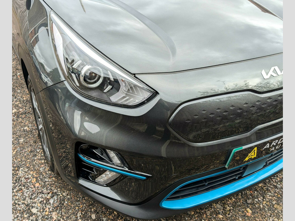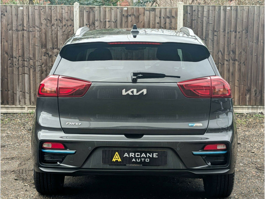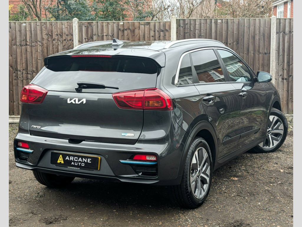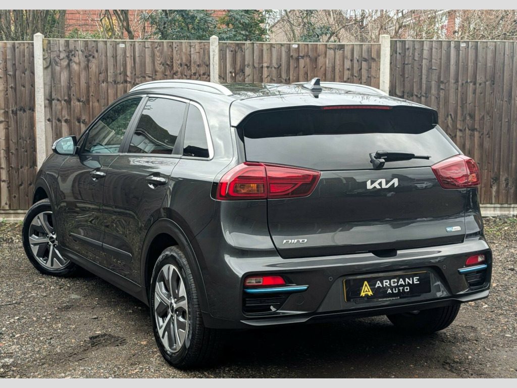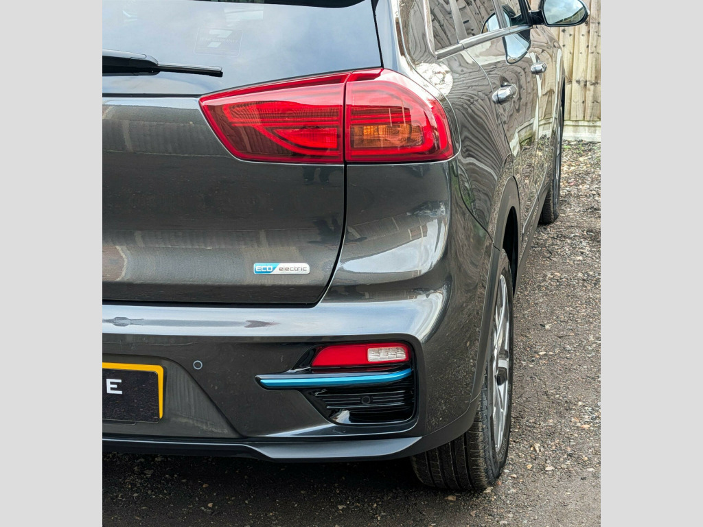 This 2022 Kia Niro 2 is a superb example, boasting a full dealership service history and having had only one owner from new. This electric vehicle offers a substantial battery total capacity of 68 kWh, providing a maximum range of 282 miles when new, ensuring you can travel further on a single charge. Convenience is key with features like automatic headlight control, rear parking sensors for easier manoeuvring, and a smart entry system with an engine start-stop button. Inside, you'll appreciate the single automatic air conditioning for a comfortable cabin temperature and Android Auto with voice control for seamless smartphone integration.The impressive range highlights how this Kia Niro stands out, offering greater freedom for your journeys compared to many other electric vehicles. Charging is also efficient, with a full charge at home taking approximately 9 hours using a 7kW charger, and a rapid charge from a public charging station will be even faster. This particular model comes with a 3 month warranty for your peace of mind, and its MOT is valid until October 2026. The last service was completed on 07/05/2025 at 49,716 miles, with a total of 5 main dealer service on record. in alloy wheels, 3 x passenger assist grips, 6-speaker system, 60-40 split folding 2nd row seats, 7in full tft colour display cluster, 8in touchscreen display, abs - anti lock braking system, adaptive smart cruise control with stop and go functionality, alarm system and engine immobiliser, all-round 3-point seatbelts, all-round electric windows with drivers auto up-down function, all-round height adjustable headrests, android auto with voice control, apple carplay with voice control, ash coloured steering wheel vezel, auto dimming rear-view mirror, automatic headlight control, automatic windscreen de-fog, battery heating system, black beltline mouldings, black side sill and wheel arch body mouldings, bluetooth with music streaming, body colour radiator grille, body coloured - high gloss door mirrors, body coloured exterior door handles, centre console storage box, centre fascia - metal paint, centre room lamp, charging indicator on dashboard, cupholders in rear armrest, dab radio with mp3 compatibility, digital clock, door deadlocks, drive mode select - eco-sport, driver and passenger sunvisors with vanity mirror and illumination, drivers seat height adjuster, drivers wide view door mirror, epb - electronic parking brake with autohold, esc - electronic stability control, electrically folding-adjustable and heated door mirrors with led indicator lights, emergency stop signalling - ess, engine start-stop button with smart entry system, forward collision-avoidance assist, front bulb fog lights, front passenger airbag cut off switch, front passenger seat height adjuster, front seatback pockets - front passenger, front seatbelt height adjusters, front usb port, front and rear centre armrests, front and rear door storage, hill-start assist control - hac, isofix child seat top tethers and anchor fixings, impact sensing auto door unlocking, interior door lock-unlock function, knee airbag - driver, led daytime running lights, led rear tail lights, lane follow assist - lfa, lane keep assist system - lkas, leather trimmed door armrests, leather trimmed steering wheel, locking wheel nuts, luggage area light, luggage area load cover, luggage net hooks, manual headlight levelling device, medium silver paint door insert trim, medium silver paint lower console trim, metal paint interior door handles, motor driven power steering - mdps, overhead console lamp with sunglasses case, privacy glass - rear windows and tailgate, projection headlights, rain sensing front wipers, rear parking sensors, rear spoiler, regenerative braking level controlled by paddle shift mounted on steering wheel, reversing camera system, roof rails, shark fin antenna, shift by wire, single automatic air conditioning, solar glass, speed limiter, speed sensing auto door locking - dealer-activated feature, steering wheel mounted audio controls, sunglasses case, tmk - tyre mobility kit, tilt and telescopic steering wheel adjustment, trip computer, twin curtain airbags with roll-over sensor, twin front airbags, twin side airbags - front, type 2 to 3 pin charger, type 2 to type 2 charger - 5m cable length, tyre pressure monitoring system - tpms, visible vehicle identification number - vin, welcome and follow-me-home light functionality