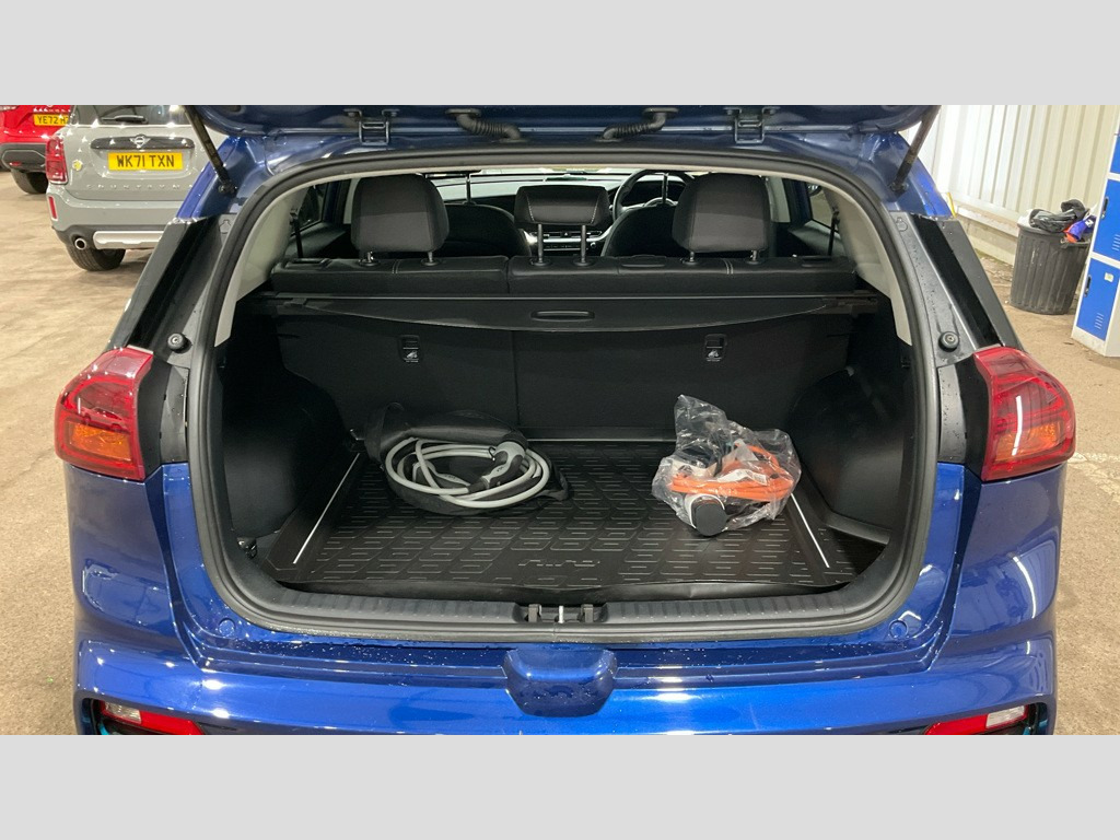 Here we have a stylish and efficient 2021 Kia Niro SUV with an impressive 51425 miles on the clock, making it a great choice for eco-conscious drivers. This electric vehicle comes with a powerful 64kWh battery and a 201 bhp motor, ensuring a smooth and responsive ride. With 5 doors and 5 seats, there's plenty of space for passengers and luggage, while the 17in Alloy Wheels add a touch of sophistication to the exterior. And with features like All-Round Electric Windows, Black Beltline Mouldings, and a Body Colour Radiator Grille, this car offers both practicality and sleek design. Plus, the MOT is valid until 30/10/2026 and it's ULEZ compliant, making it an ideal choice for city driving. in alloy wheels, all-round electric windows with drivers auto up-down function, black beltline mouldings, black side sill and wheel arch body mouldings, body colour radiator grille, body coloured - high gloss door mirrors, body coloured exterior door handles, drivers wide view door mirror, electrically folding-adjustable and heated door mirrors with led indicator lights, locking wheel nuts, privacy glass - rear windows and tailgate, rear spoiler, roof rails, solar glass, tmk - tyre mobility kit, 3 x passenger assist grips, 60-40 split folding 2nd row seats, all-round height adjustable headrests, ash coloured steering wheel vezel, auto dimming rear-view mirror, automatic windscreen de-fog, centre console storage box, centre fascia - metal paint, centre room lamp, cupholders in rear armrest, driver and passenger sunvisors with vanity mirror and illumination, drivers seat height adjuster, front passenger seat height adjuster, front seatback pockets - front passenger, front and rear centre armrests, front and rear door storage, leather trimmed door armrests, leather trimmed steering wheel, luggage area light, luggage area load cover, luggage net hooks, medium silver paint door insert trim, medium silver paint lower console trim, metal paint interior door handles, overhead console lamp with sunglasses case, rain sensing front wipers, single automatic air conditioning, steering wheel mounted audio controls, sunglasses case, tilt and telescopic steering wheel adjustment, 6-speaker system, 7in full tft colour display cluster, 8in touchscreen display, android auto with voice control, apple carplay with voice control, bluetooth with music streaming, dab radio with mp3 compatibility, front usb port, shark fin antenna, abs - anti lock braking system, alarm system and engine immobiliser, all-round 3-point seatbelts, door deadlocks, epb - electronic parking brake with autohold, esc - electronic stability control, emergency stop signalling - ess, engine start-stop button with smart entry system, front passenger airbag cut off switch, front seatbelt height adjusters, hill-start assist control - hac, isofix child seat top tethers and anchor fixings, impact sensing auto door unlocking, interior door lock-unlock function, knee airbag - driver, lane follow assist - lfa, lane keep assist system - lkas, regenerative braking level controlled by paddle shift mounted on steering wheel, speed sensing auto door locking - dealer-activated feature, twin curtain airbags with roll-over sensor, twin front airbags, twin side airbags - front, visible vehicle identification number - vin, adaptive smart cruise control with stop and go functionality, battery heating system, charging indicator on dashboard, digital clock, drive mode select - eco-sport, forward collision-avoidance assist, motor driven power steering - mdps, rear parking sensors, reversing camera system, shift by wire, speed limiter, trip computer, type 2 to 3 pin charger, type 2 to type 2 charger - 5m cable length, tyre pressure monitoring system - tpms, automatic headlight control, front bulb fog lights, led daytime running lights, led rear tail lights, manual headlight levelling device, projection headlights, welcome and follow-me-home light functionality