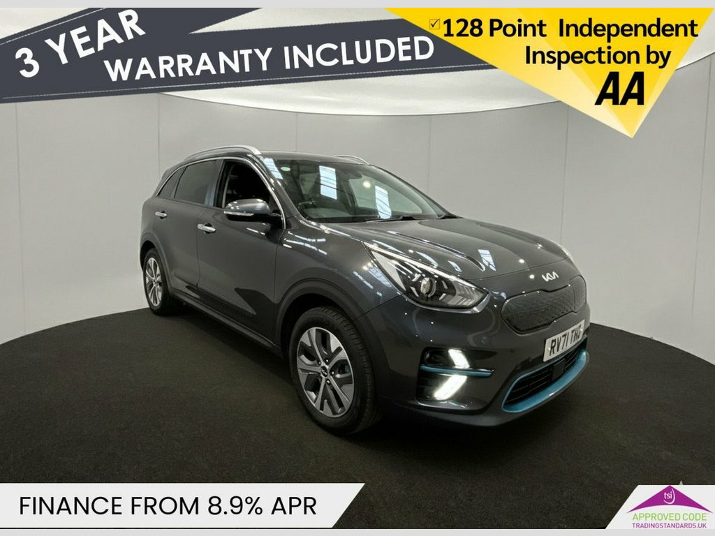 With an MOT valid until August 2026 and a clear vehicle history check, this 2021 Kia Niro 2 Electric offers excellent peace of mind. This single owner vehicle boasts a substantial 68 kWh battery, providing a maximum range of 282 miles from new. Key features include Adaptive Smart Cruise Control with Stop and Go Functionality, Bluetooth with Music Streaming, and an Engine Start-Stop Button with a Smart Entry System for effortless access. You'll also appreciate the convenience of a Reversing Camera System and Single Automatic Air Conditioning for a comfortable driving experience. The impressive 282 mile range at new sets this Kia Niro apart, offering greater flexibility for your journeys compared to many other electric vehicles. Charging is also convenient, with a full charge at home taking approximately 9 hours and 35 minutes using a 7kW charger, and a rapid charge to 80% achievable in just 54 minutes at a public charging station. This well maintained electric Kia Niro 2 is ready for its next owner. 17in Alloy Wheels, 3 x Passenger Assist Grips, 6-Speaker System, 60-40 Split Folding 2nd Row Seats, 7in Full TFT Colour Display Cluster, 8in Touchscreen Display, ABS - Anti Lock Braking System, Adaptive Smart Cruise Control with Stop , Alarm System and Engine Immobiliser, All-Round 3-Point Seatbelts, All-Round Electric Windows with Drivers , All-Round Height Adjustable Headrests, Android Auto with Voice Control, Apple CarPlay with Voice Control, Ash Coloured Steering Wheel Vezel, Auto Dimming Rear-View Mirror, Automatic Headlight Control, Automatic Windscreen De-Fog, Battery Heating System, Black Beltline Mouldings, Black Side Sill and Wheel Arch Body Moul, Bluetooth with Music Streaming, Bo
