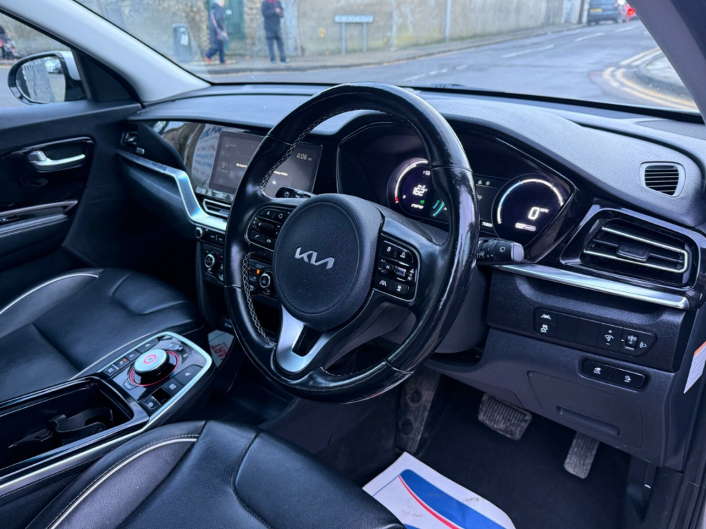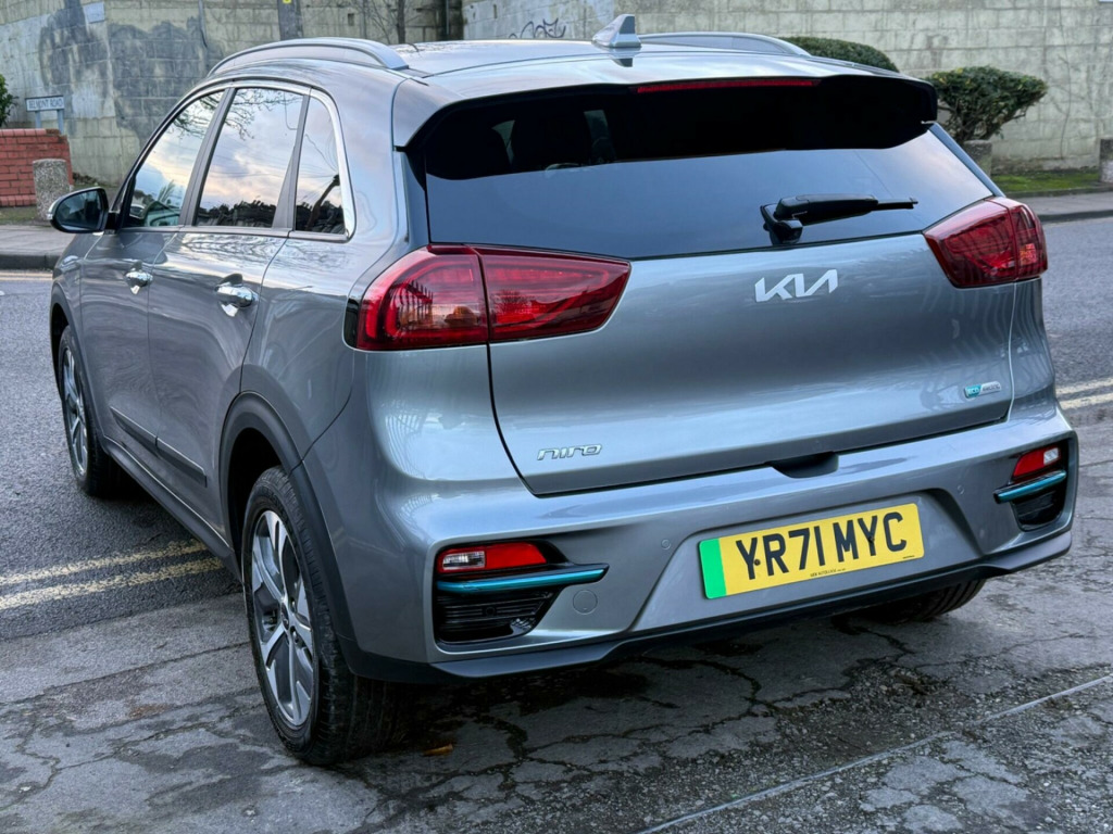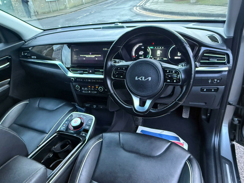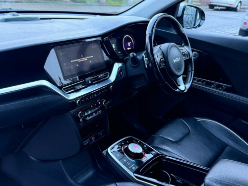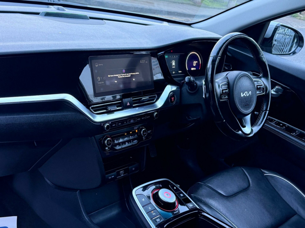 EXCELLENT SERVICE HISTORY! SERVICED EVERY YEAR BY KIA MEANING THE MANUFACTURE WARRANTY IS STILL IN PLACE! 1 OWNER FROM NEW! 2 KEYS WITH THE CAR. This 2021 Kia Niro 3 is a fantastic example, having had only one owner since new. This electric vehicle boasts a substantial 68 kWh battery, offering an impressive maximum range of 282 miles when new, perfect for both daily commutes and longer journeys. The Niro 3 comes equipped with Automatic Headlight Control, ensuring optimal visibility, and a Reversing Camera System paired with Rear Parking Sensors for effortless manoeuvring. Inside, you'll appreciate the convenience of a Wireless Phone Charger and seamless integration with your smartphone via Android Auto with Voice Control.The 282 mile range is a significant highlight, demonstrating the Niro's capability to go further on a single charge compared to many other electric vehicles. Charging is also convenient, with a full charge at home taking approximately 9 hours and 35 minutes using a 7kW charger, while rapid public charging can take your battery from empty to 80% in just 54 minutes. These features combine to make this Kia Niro 3 a practical and advanced choice for electric motoring.. 10.25in Touchscreen Satellite Navigation with European Mapping and Traffic Messaging Channel, 17in Alloy Wheels, 3 x Passenger Assist Grips, 6-Speaker System, 60-40 Split Folding 2nd Row Seats, 7in Full TFT Colour Display Cluster, 8-Way Drivers Power Adjustable Seat - Sliding-Reclining-Height Adjustment, ABS - Anti Lock Braking System, Adaptive Smart Cruise Control with Stop and Go Functionality, Alarm System and Engine Immobiliser, All-Round 3-Point Seatbelts, All-Round Electric Windows with Driver and Front Passenger Auto Up-Down Function, All-Round Height Adjustable Headrests, Aluminium Door Scuff Plates, Android Auto with Voice Control, Apple CarPlay with Voice Control, Auto Dimming Rear-View Mirror, Automatic Headlight Control, Automatic Windscreen De-Fog, Battery Heating System, Black Beltline Mouldings, Black Side Sill and Wheel Arch Body Mouldings, Bluetooth with Music Streaming, Body Colour Radiator Grille, Body Coloured - High Gloss Door Mirrors, Centre Console Storage Box, Centre Room Lamp, Charging Indicator on Dashboard, Chrome Coated Exterior Door Handles, Cupholders in Rear Armrest, DAB Radio with MP3 Compatibility, Digital Clock, Door Deadlocks, Driver and Passenger Sunvisors with Vanity Mirror and Illumination, Drivers Seat Power Lumbar Support, Drivers Wide View Door Mirror, EPB - Electronic Parking Brake with Autohold, ESC - Electronic Stability Control, Electrically Folding-Adjustable and Heated Door Mirrors with LED Indicator Lights, Emergency Stop Signalling - ESS, Engine Start-Stop Button with Smart Entry System, Forward Collision-Avoidance Assist, Front Bulb Fog Lights, Front Passenger Airbag Cut Off Switch, Front Passenger Seat Height Adjuster, Front Seatback Pockets - Driver, Front Seatback Pockets - Front Passenger, Front Seatbelt Height Adjusters, Front USB Port, Front and Rear Centre Armrests, Front and Rear Door Storage, Heated Front Seats, Heated Steering Wheel, High Gloss Black Centre Fascia Trim, High Gloss Black Door Insert Trim, High Gloss Black Lower Console Trim, High Gloss Black Steering Wheel Trim, Hill-Start Assist Control - HAC, ISOFIX Child Seat Top Tethers and Anchor Fixings, Impact Sensing Auto Door Unlocking, Interior Door Lock-Unlock Function, Kia Connected Services Featuring TomTom - Traffic - Speed Cameras - Local Search and Weather Updates, Knee Airbag - Driver, LED Daytime Running Lights, LED Rear Tail Lights, Lane Follow Assist - LFA, Lane Keep Assist System - LKAS, Leather Trimmed Door Armrests, Leather Trimmed Steering Wheel, Locking Wheel Nuts, Luggage Area Light, Luggage Area Load Cover, Luggage Net Hooks, Manual Headlight Levelling Device, Motor Driven Power Steering - MDPS, Overhead Console Lamp with Sunglasses Case, Privacy Glass - Rear Windows and Tailgate, Projection Headlights, Rain Sensing Front Wipers, Rear Parking Sensors, Rear Spoiler, Rear Ventilation Duct, Regenerative Braking Level Controlled by Paddle Shift Mounted on Steering Wheel, Reversing Camera System, Roof Rails, Satin Finish Interior Door Handles, Shark Fin Antenna, Shift by Wire, Single Automatic Air Conditioning, Solar Glass, Speed Limiter, Speed Sensing Auto Door Locking - Dealer-Activated Feature, Steering Wheel Mounted Audio Controls, Sunglasses Case, TMK - Tyre Mobility Kit, Telematics System with UVO Connect Services, Tilt and Telescopic Steering Wheel Adjustment, Trip Computer, Twin Curtain Airbags with Roll-Over Sensor, Twin Front Airbags, Twin Side Airbags - Front, Type 2 to 3 Pin Charger, Type 2 to Type 2 Charger - 5m Cable Length, Tyre Pressure Monitoring System - TPMS, USB Port in Centre Console - Fast Charge, Underfloor Tray, Visible Vehicle Identification Number - VIN, Voice Recognition, Welcome and Follow-Me-Home Light Functionality, Wireless Phone Charger.