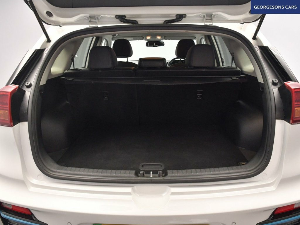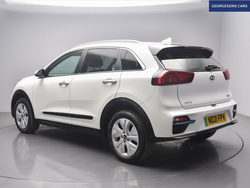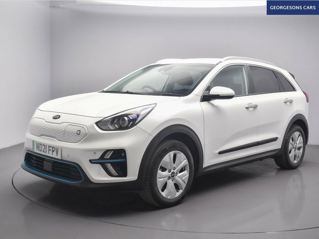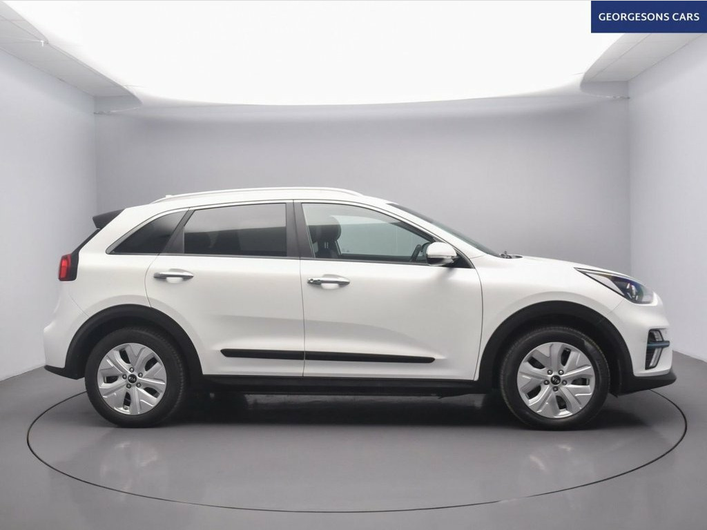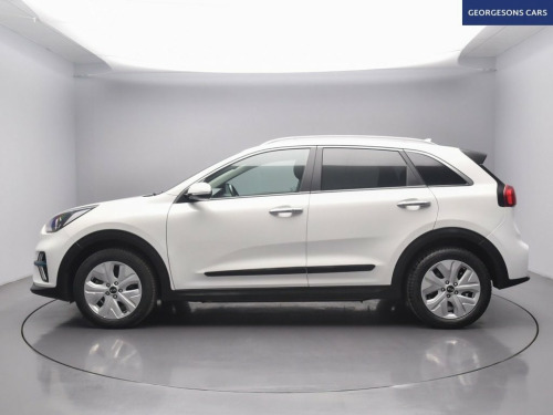 The Kia Niro 64kWh 3 combines an efficient electric motor with 201hp, delivering 0-62mph in 7.8 seconds and up to 275 miles of WLTP range in this front-wheel-drive setup with a smooth single-speed automatic transmission. The 3 trim offers a refined blend of style and tech with 17-inch alloy wheels and a spacious interior for premium EV family motoring. With one owner and three services, this Niro is in excellent condition. Navigate effortlessly with integrated satellite navigation, Apple CarPlay, Bluetooth, and DAB radio, ensuring seamless connectivity on every journey. Parking is a breeze thanks to the reverse camera and parking sensors, providing clear visibility and confidence in tight spaces. Stay comfortable with climate control, electric heated seats, and a heated steering wheel, offering personalized warmth year-round. Adaptive cruise control with speed limiter and lane assist enhance safety and relaxation on highways, while hill assist ensures smooth starts on inclines and blind spot assist adds extra security. Selectable drive modes provide tailored performance, whether for efficiency or dynamic driving, and the push-button start adds daily convenience. The spacious five-door SUV design includes a 475-litre boot for practicality. 10.25in Touchscreen Satellite Navigation, 17in Alloy Wheels, 3 x Passenger Assist Grips, 6-Speaker System, 60-40 Split Folding 2nd Row Seats, 7in Full TFT Colour Display Cluster, 8-Way Drivers Power Adjustable Seat - Sl, ABS - Anti Lock Braking System, Adaptive Smart Cruise Control with Stop , Alarm System and Engine Immobiliser, All-Round 3-Point Seatbelts, All-Round Electric Windows with Driver a, All-Round Height Adjustable Headrests, Aluminium Door Scuff Plates, Android Auto with Voice Control, Apple CarPlay with Voice Control, Auto Dimming Rear-View Mirror, Automatic Headlight Control, Automatic Windscreen De-Fog, Battery Heating System, Black Beltline Mouldings, Black Side Sill and Whe