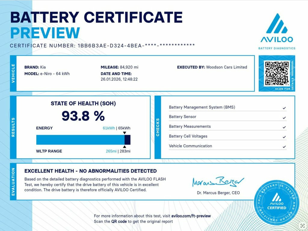 Finance Soft Search Pre Approval. This Kia Niro 64kWh 3 SUV Electric Auto (201bhp) has covered 84000 miles in black with black heated leather interior. 1 owner from new, apple car play, DAB Radio, bluetooth, isofix, reverse camera, heated steering wheel, cruise control + much more. *MAIN DEALER PART EXCHANGE* Warranty Included (upgrades are available). Any inspection/test drive always welcome. More than 40 photos are available + Video Walk Around available upon Request. Credit/Debit card payment welcome + Approved finance partner with consumer credit licence held + Part exchange welcome + Private plate transfers, delivery service all available on request + Call 7 days a week to discuss and book an appointment Leather - Black, Midnight Black, 10.25in Touchscreen Satellite Navigation, 17in Alloy Wheels, 3 x Passenger Assist Grips, 6-Speaker System, 60-40 Split Folding 2nd Row Seats, 7in Full TFT Colour Display Cluster, 8-Way Drivers Power Adjustable Seat - Sl, ABS - Anti Lock Braking System, Adaptive Smart Cruise Control with Stop , Alarm System and Engine Immobiliser, All-Round 3-Point Seatbelts, All-Round Electric Windows with Driver a, All-Round Height Adjustable Headrests, Aluminium Door Scuff Plates, Android Auto with Voice Control, Apple CarPlay with Voice Control, Auto Dimming Rear-View Mirror, Automatic Headlight Control, Automatic Windscreen De-Fog, Battery Heating System, Black Beltline M