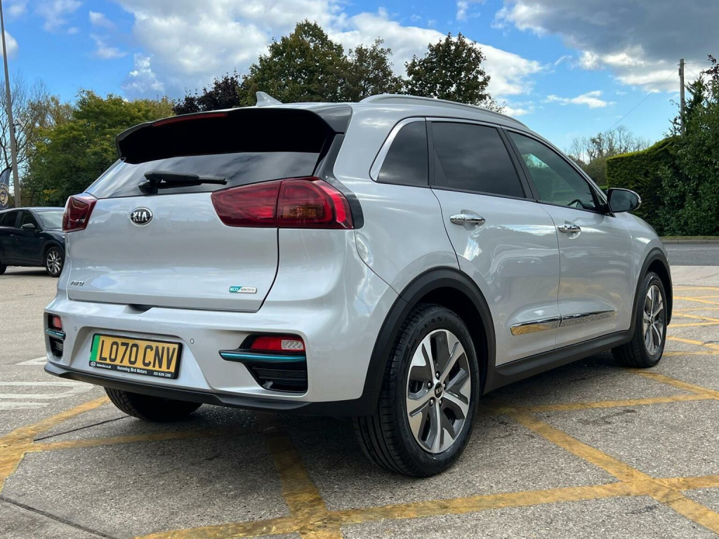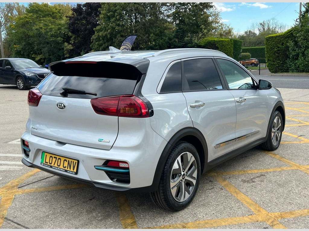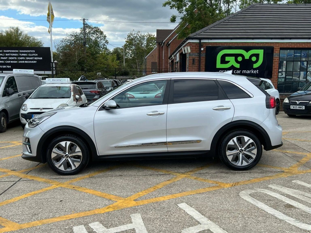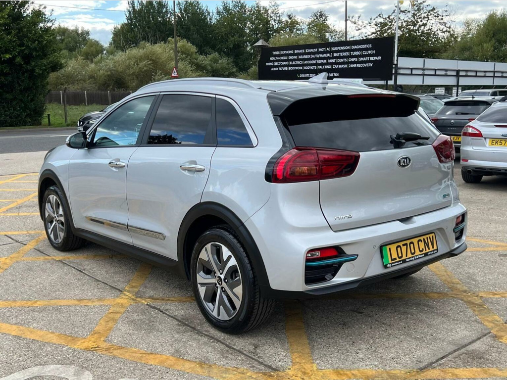 <> CAT S REPAIR----fULL KIA SERVICE HISTORY, PCO READY FOR UBER-----This 2021 Kia Niro 4+ Electric boasts exceptionally low mileage for its age, having covered just 33,070 miles. As an electric vehicle, it offers a substantial battery capacity of 68 kWh, providing a maximum range of 282 miles when new. This Niro is equipped with a smart entry system featuring an engine start stop button and keyless entry, alongside automatic headlight control. For added comfort and convenience, it includes a heated steering wheel and a wireless phone charger. Parking is made easier with rear parking sensors. The vehicles MOT is valid until March 2026, and it comes with a 6 month warranty for your peace of mind. The impressive 282 mile range at new sets this Kia Niro apart, indicating a superior ability to cover longer distances between charges compared to many other electric vehicles. Charging is also efficient, with a full charge at home taking approximately 9 hours and 35 minutes using a 7kW charger, while the fastest public charging can take an electric vehicle from empty to 80% in just 54 minutes. These features combine to offer a practical and enjoyable driving experience, making this Niro a compelling choice for those seeking an electric car with excellent usability and a strong range.