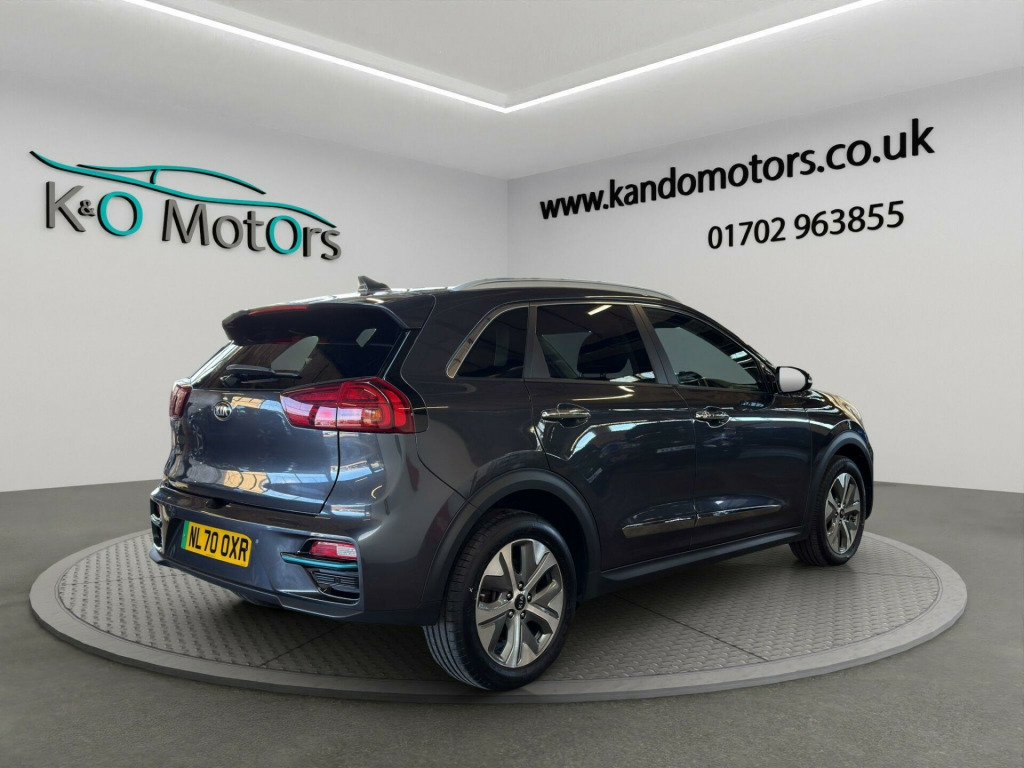 This 2020 Kia Niro (e-Niro) 4, finished in metallic grey, is ULEZ compliant and offered for sale in Southend, Essex. It benefits from being in fantastic condition, full service history and some great optional extras being the top spec '4' model. The car has been fully prepared and is ready for its next owner today.K&O Motors, your trusted independent car dealer in Southend-on-Sea, Essex, specialising in quality used cars at competitive prices. All vehicles are hand-selected for condition, value, and performance and are available for immediate viewing. We are a family run business with 8 staff members (7 are family!) and offer a much more friendly environment to buy your next car than some of the bigger supermarket dealers!At K&O Motors in Southend, every vehicle is HPI clear and undergoes a comprehensive 150 point health check for complete peace of mind. We’re proud to be ranked in the top 5% of AutoTrader dealers for five consecutive years, earning the “Highly Rated for Customer Service” award every year thanks to our commitment to customer satisfaction.Ask a team member how to secure this vehicle today with a fully refundable deposit scheme from as little as £250.With over 300 verified 5-star reviews and a 99%+ customer satisfaction rate, you can buy with confidence. We offer competitive part exchange, flexible finance options for all credit backgrounds (including poor credit), and nationwide delivery. For added reassurance, nationwide warranty cover is available for up to 3 years.We’re conveniently located in Southend, Essex, with free collection from Southend Central or Prittlewell train stations. People have also flown into London Southend airport to visit us! Viewings is advised by appointment.Opening hours: Mon–Fri 9:15am–5.30pm | Sat 9:15am–1pm. Out-of-hours appointments available on request.K&O Motors – Quality Used Cars in Southend, Essex. Contact us today.. 10.25in Touchscreen Satellite Navigation with European Mapping and Traffic Messaging Channel, 17in Alloy Wheels, 3 x Passenger Assist Grips, 60-40 Split Folding 2nd Row Seats, 7in Full TFT Colour Display Cluster, 8-Speaker JBL - Premium Sound System with Subwoofer - External Amp and Front Centre Speaker, 8-Way Drivers Power Adjustable Seat - Sliding-Reclining-Height Adjustment, ABS - Anti Lock Braking System, Adaptive Smart Cruise Control with Stop and Go Functionality, Alarm System and Engine Immobiliser, All-Round 3-Point Seatbelts, All-Round Electric Windows with Driver and Front Passenger Auto Up-Down Function, All-Round Height Adjustable Headrests, Aluminium Door Scuff Plates, Ambient Lighting - EV, Android Auto with Voice Control, Apple CarPlay with Voice Control, Auto Dimming Rear-View Mirror, Automatic Headlight Control, Automatic Windscreen De-Fog, Battery Heating System, Black Side Sill and Wheel Arch Body Mouldings, Bluetooth with Music Streaming, Body Coloured - High Gloss Door Mirrors, Centre Console Storage Box, Centre Room Lamp, Charging Indicator on Dashboard, Chrome Beltline Mouldings, Chrome Coated Exterior Door Handles, Cupholders in Rear Armrest, DAB Radio with MP3 Compatibility, Digital Clock, Door Deadlocks, Driver and Passenger Sunvisors with Vanity Mirror and Illumination, Drivers Seat Power Lumbar Support, Drivers Wide View Door Mirror, EPB - Electronic Parking Brake with Autohold, ESC - Electronic Stability Control, Electrically Folding-Adjustable and Heated Door Mirrors with LED Indicator Lights, Emergency Stop Signalling - ESS, Engine Start-Stop Button with Smart Entry System, Forward Collision-Avoidance Assist, Front Bulb Fog Lights, Front Parking Sensors, Front Passenger Airbag Cut Off Switch, Front Passenger Seat Height Adjuster, Front Seatback Pockets - Driver, Front Seatback Pockets - Front Passenger, Front Seatbelt Height Adjusters, Front USB Port, Front and Rear Centre Armrests, Front and Rear Door Storage, Heat Pump System, Heated Front Seats, Heated Steering Wheel, High Gloss Black Centre Fascia Trim, High Gloss Black Door Insert Trim, High Gloss Black Lower Console Trim, High Gloss Black Steering Wheel Trim, Hill-Start Assist Control - HAC, ISOFIX Child Seat Top Tethers and Anchor Fixings, Impact Sensing Auto Door Unlocking, Interior Door Lock-Unlock Function, Kia Connected Services Featuring TomTom - Traffic - Speed Cameras - Local Search and Weather Updates, Knee Airbag - Driver, LED Daytime Running Lights, LED Headlights with Bi-Function Projection, LED Rear Tail Lights, Lane Follow Assist - LFA, Lane Keep Assist System - LKAS, Leather Trimmed Door Armrests, Leather Trimmed Steering Wheel, Locking Wheel Nuts, Luggage Area Light, Luggage Area Load Cover, Luggage Net Hooks, Manual Headlight Levelling Device, Matt Black Colour Radiator Grille, Motor Driven Power Steering - MDPS, Overhead Console Lamp with Sunglasses Case, Privacy Glass - Rear Windows and Tailgate, Rain Sensing Front Wipers, Rear Parking Sensors, Rear Spoiler, Rear Ventilation Duct, Regenerative Braking Level Controlled by Paddle Shift Mounted on Steering Wheel, Reversing Camera System, Roof Rails, Satin Finish Interior Door Handles, Shark Fin Antenna, Shift by Wire, Single Automatic Air Conditioning, Solar Glass, Speed Limiter, Speed Sensing Auto Door Locking - Dealer-Activated Feature, Steering Wheel Mounted Audio Controls, Sunglasses Case, TMK - Tyre Mobility Kit, Telematics System with UVO Connect Services, Tilt and Telescopic Steering Wheel Adjustment, Trip Computer, Twin Curtain Airbags with Roll-Over Sensor, Twin Front Airbags, Twin Side Airbags - Front, Type 2 to 3 Pin Charger, Type 2 to Type 2 Charger - 5m Cable Length, Tyre Pressure Monitoring System - TPMS, USB Port in Centre Console - Fast Charge, Underfloor Tray, Visible Vehicle Identification Number - VIN, Voice Recognition, Welcome and Follow-Me-Home Light Functionality, Wireless Phone Charger.