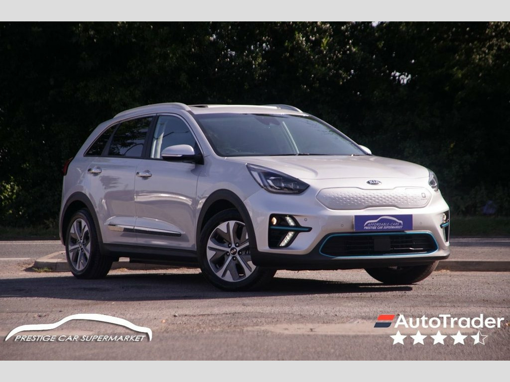 Prestige Car Supermarket in York presents this impressive 2021 KIA NIRO 64kWh 4+ SUV, a five-door electric automatic delivering a substantial 201 bhp. Finished in sleek Silky Silver, this model features a refined interior upholstered in black leather. It is equipped with a 10.25-inch touchscreen satellite navigation system with European mapping, a 7-inch full TFT colour display cluster, and an 8-speaker JBL premium sound system for an immersive audio experience. Comfort is prioritised with 8-way power adjustable and heated front seats, heated outer rear seats, and a heated steering wheel. Practicality is evident through the 60-40 split folding rear seats, front and rear parking sensors, and a reversing camera system. This Niro 4+ boasts a generous 285-mile WLTP electric range and is capable of rapid charging from 10% to 80% in approximately 44 minutes using a 100kW DC charger, or a full charge in around 6 hours and 20 minutes with an 11kW AC three-phase charger. Advanced safety and driver assistance systems include adaptive smart cruise control with stop and go functionality, blind spot detection, and lane follow assist, making this electric SUV a compelling choice for both urban and longer journeys. Leather - Black, Silky Silver, 10.25in Touchscreen Satellite Navigation, 17in Alloy Wheels, 3 x Passenger Assist Grips, 60-40 Split Folding 2nd Row Seats, 7in Full TFT Colour Display Cluster, 8-Speaker JBL - Premium Sound System wit, 8-Way Drivers Power Adjustable Seat - Sl, ABS - Anti Lock Braking System, AC 11kW Charger - 3-Phase, Adaptive Smart Cruise Control with Stop , Alarm System and Engine Immobiliser, All-Round 3-Point Seatbelts, All-Round Electric Windows with Driver a, All-Round Height Adjustable Headrests, Aluminium Door Scuff Plates, Aluminium Pedals, Ambient Lighting - EV, Android Auto with Voice Control, Apple CarPlay with Voice Control, Auto Dimming Rear-View Mirror, Automati