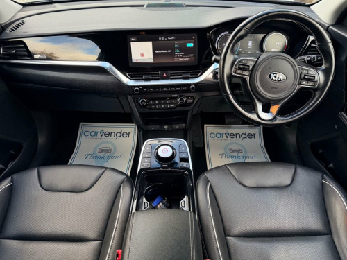 Carvender is presenting the all electric 2020 Kia Niro 64kWh 4 5dr. The 2020 Kia Niro is a well-maintained SUV. This compact car offers a perfect combination of style, efficiency and practicality, making it an excellent choice for daily commuting and urban driving. The Kia Niro is equipped with a 64kWh electric motor which delivers a smooth and efficient driving experience and generates 201 Brake Horse Power. This Kia Niro is equipped with modern features including Front and Rear Parking Sensors, Reversing Camera, Leather Heated Seats, Lane Assist, Adaptive Cruise Control, Heated Steering, Satellite Navigation, Apple CarPlay/Android Auto and a touchscreen infotainment system with Bluetooth and much more. Please refer to advert photos for more features. This Kia is in pristine condition and has been look after very well. Last serviced at 17910 miles on 20/11/2025. Contact us today to schedule a test drive or visit our website for home delivery with a 14 days money back guarantee. 10.25in Touchscreen Satellite Navigation, 17in Alloy Wheels, 3 x Passenger Assist Grips, 60-40 Split Folding 2nd Row Seats, 7in Full TFT Colour Display Cluster, 8-Speaker JBL - Premium Sound System wit, 8-Way Drivers Power Adjustable Seat - Sl, ABS - Anti Lock Braking System, Adaptive Smart Cruise Control with Stop , Alarm System and Engine Immobiliser, All-Round 3-Point Seatbelts, All-Round Electric Windows with Driver a, All-Round Height Adjustable Headrests, Aluminium Door Scuff Plates, Ambient Lighting - EV, Android Auto with Voice Control, Apple CarPlay with Voice Control, Auto Dimming Rear-View Mirror, Automatic Headlight Control, Automatic Windscreen De-Fog, Battery Heating System, Bl