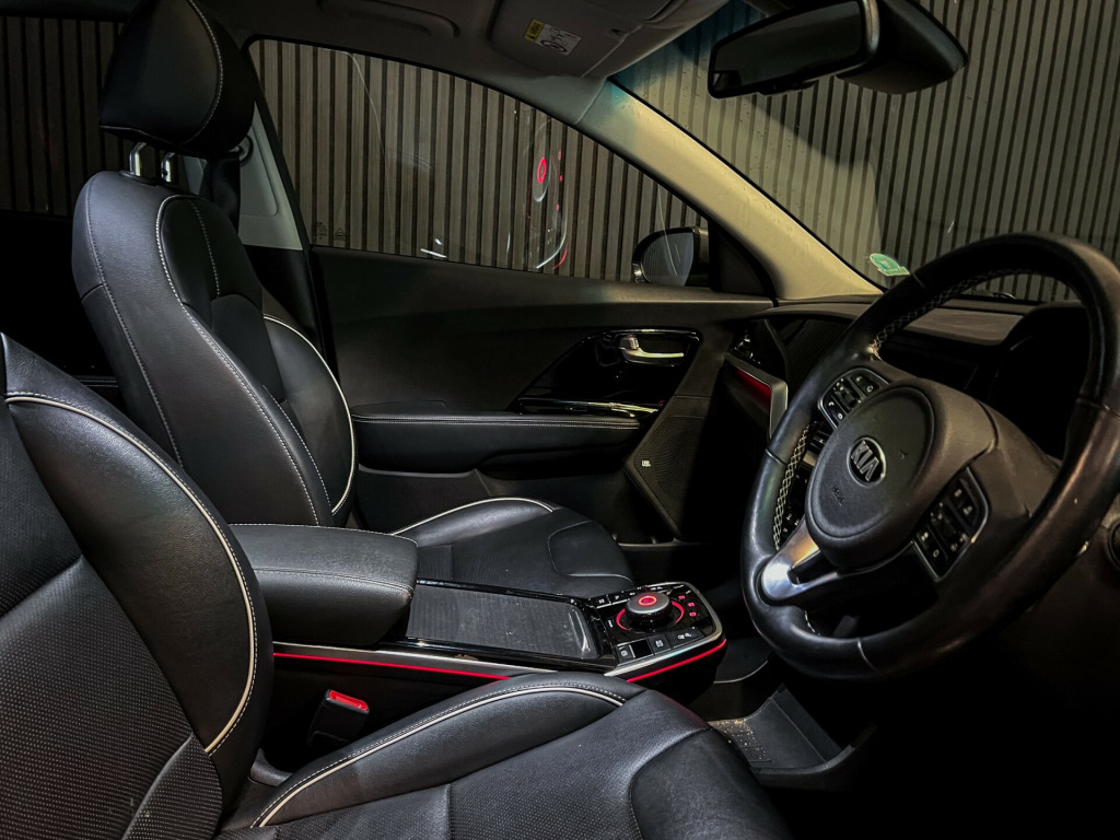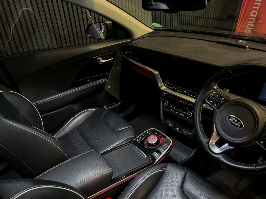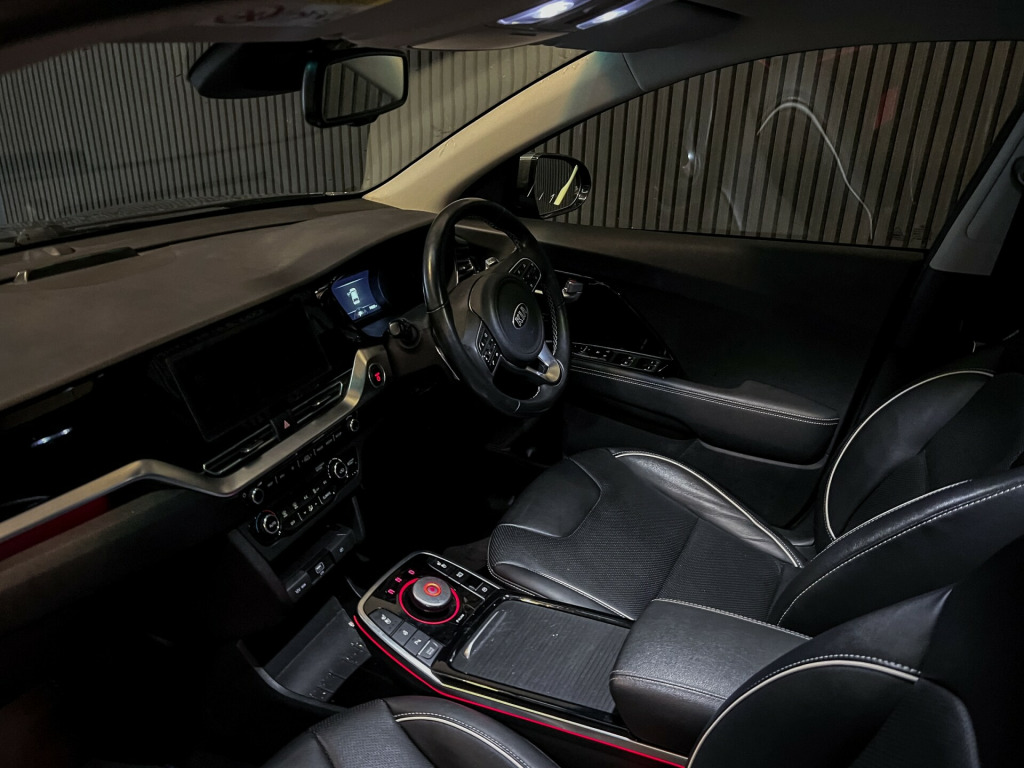 Full main dealer service history meaning car still has kia warranty! PAN ROOF, REVERSE CAMERA, LEATHER HEATED HEATS, SAT NAV, APPLECARPLAY, HEATED STEERING WHEEL, BLUETOOTH, PARKING SENSORS, LANE ASSIST, CRUISE CONTROL Multifunctional steering Wheel, Voice assist, Dual zone climate control, Leather steering wheel, LED running lights, ZENON lights, DAB radio, ISOFIX, electric windows, central locking This 2021 Kia Niro 64kWh 4+ SUV 5dr Electric Auto with 201 bhp has only 74822 miles on it and comes with a MOT that expires on 17/02/2027. This SUV has 5 seats and 5 doors, making it spacious and practical for families or group outings. It is also ULEZ compliant, meaning it meets the standards for driving in Ultra Low Emission Zones. The car includes features like 10.25in Touchscreen Satellite Navigation with European Mapping and Traffic Messaging Channel, 7in Full TFT Colour Display Cluster, 8-Speaker JBL - Premium Sound System with Subwoofer - External Amp and Front Centre Speaker, Android Auto with Voice Control, and Apple CarPlay with Voice Control. This electric vehicle combines eco-friendly driving with modern technology for a convenient and enjoyable driving experience. .25in touchscreen satellite navigation with european mapping and traffic messaging channel, 7in full tft colour display cluster, 8-speaker jbl - premium sound system with subwoofer - external amp and front centre speaker, android auto with voice control, apple carplay with voice control, bluetooth with music streaming, dab radio with mp3 compatibility, front usb port, kia connected services featuring tomtom - traffic - speed cameras - local search and weather updates, shark fin antenna, telematics system with uvo connect services, usb port in centre console - fast charge, wireless phone charger, 17in alloy wheels, all-round electric windows with driver and front passenger auto up-down function, aluminium door scuff plates, black side sill and wheel arch body mouldings, body colour radiator grille, body coloured - high gloss door mirrors, chrome beltline mouldings, chrome coated exterior door handles, drivers wide view door mirror, electrically folding-adjustable and heated door mirrors with led indicator lights, locking wheel nuts, privacy glass - rear windows and tailgate, rear spoiler, roof rails, solar glass, tmk - tyre mobility kit, tilting and sliding power - one touch - sunroof, 3 x passenger assist grips, 60-40 split folding 2nd row seats, 8-way drivers power adjustable seat - sliding-reclining-height adjustment, all-round height adjustable headrests, aluminium pedals, ambient lighting - ev, auto dimming rear-view mirror, automatic windscreen de-fog, centre console storage box, centre room lamp, cupholders in rear armrest, driver power memory seat and memory mirror function, driver and passenger sunvisors with vanity mirror and illumination, drivers seat power lumbar support, front passenger seat height adjuster, front seatback pockets - driver, front seatback pockets - front passenger, front and rear centre armrests, front and rear door storage, heated front seats, heated outer rear seats, heated steering wheel, high gloss black centre fascia trim, high gloss black door insert trim, high gloss black lower console trim, high gloss black steering wheel trim, leather trimmed door armrests, leather trimmed steering wheel, luggage area light, luggage area load cover, luggage net hooks, overhead console lamp with sunglasses case, rain sensing front wipers, rear ventilation duct, satin finish interior door handles, single automatic air conditioning, steering wheel mounted audio controls, sunglasses case, tilt and telescopic steering wheel adjustment, underfloor tray, ventilated front seats, abs - anti lock braking system, alarm system and engine immobiliser, all-round 3-point seatbelts, door deadlocks, epb - electronic parking brake with autohold, esc - electronic stability control, emergency stop signalling - ess, engine start-stop button with smart entry system, front passenger airbag cut off switch, front seatbelt height adjusters, hill-start assist control - hac, isofix child seat top tethers and anchor fixings, impact sensing auto door unlocking, intelligent speed limit warning - islw, interior door lock-unlock function, knee airbag - driver, lane follow assist - lfa, lane keep assist system - lkas, regenerative braking level controlled by paddle shift mounted on steering wheel, speed sensing auto door locking - dealer-activated feature, twin curtain airbags with roll-over sensor, twin front airbags, twin side airbags - front, visible vehicle identification number - vin, ac 11kw charger - 3-phase, adaptive smart cruise control with stop and go functionality, battery heating system, blind spot detection - bsd with rear-cross traffic assist - rcta, charging indicator on dashboard, digital clock, forward collision-avoidance assist, front parking sensors, heat pump system, motor driven power steering - mdps, rear parking sensors, reversing camera system, shift by wire, speed limiter, trip computer, type 2 to 3 pin charger, type 2 to type 2 charger - 5m cable length, tyre pressure monitoring system - tpms, voice recognition, automatic headlight control, front bulb fog lights, led daytime running lights, led headlights with bi-function projection, led rear tail lights, manual headlight levelling device, welcome and follow-me-home light functionality