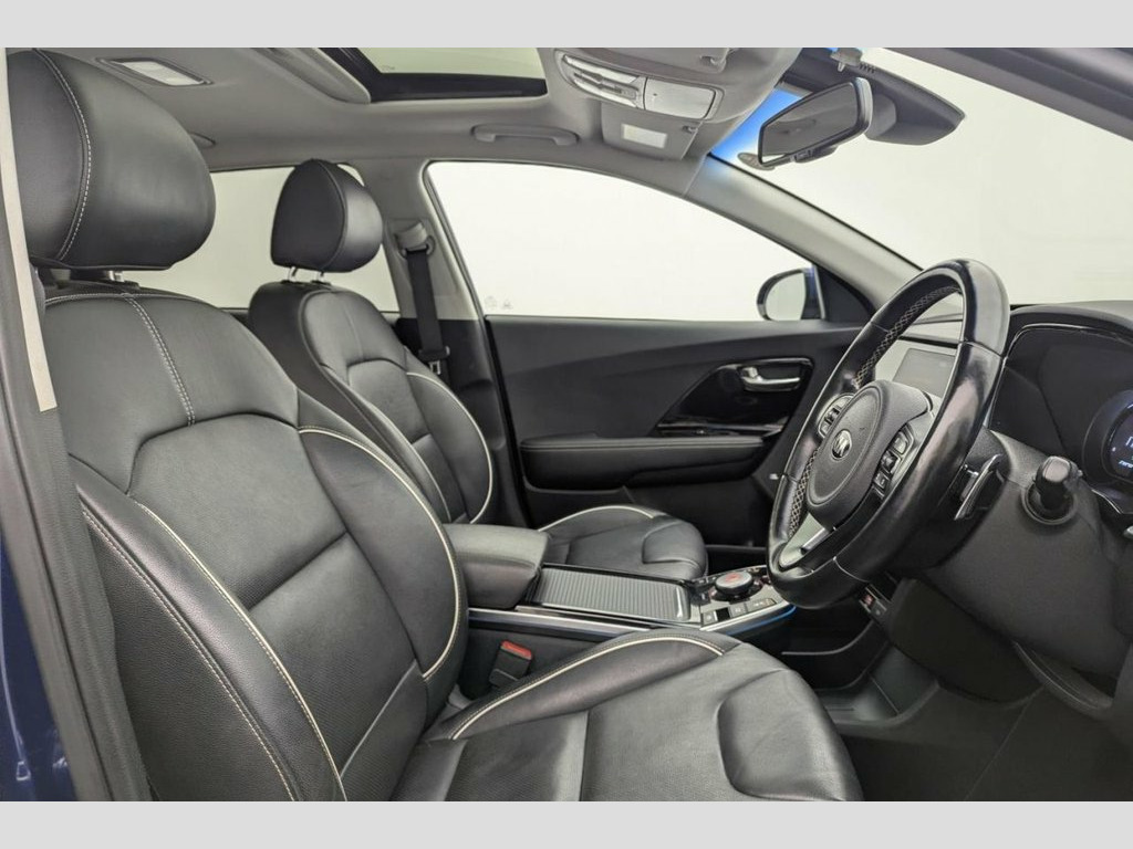 Henson Car Store presents the KIA NIRO 64kWh 4+ SUV 5dr Electric Auto (201 bhp) finished in Blue, this car comes with service history. A practical, efficient and stylish electric SUV, the 2020 Kia Niro 64?kWh 4+ combines modern technology with everyday usability. Powered by a 201?bhp electric motor and paired with a smooth automatic transmission, this all-electric Niro offers zero-emissions driving, instant torque, and a range of up to 280–300 miles on a full charge (WLTP), making it ideal for both city commuting and longer journeys. This 4+ trim delivers premium features and comfort, including advanced driver assistance systems, a large touchscreen infotainment system with navigation, Apple CarPlay and Android Auto, dual-zone climate control, and high-quality interior finishes. With its SUV practicality, it provides spacious seating for five, a generous boot, and clever storage solutions throughout the cabin. On the exterior, the Niro 4+ SUV features alloy wheels, LED daytime running lights, aerodynamic styling, and a sleek, modern design that signals its electric performance. With rapid charging capability, efficient energy management, and Kia's reputation for reliability and warranty coverage, this Niro is a smart, eco-friendly choice for families or individuals looking to switch to electric motoring. Yacht Blue, 10.25in Touchscreen Satellite Navigation, 17in Alloy Wheels, 3 x Passenger Assist Grips, 60-40 Split Folding 2nd Row Seats, 7in Full TFT Colour Display Cluster, 8-Speaker JBL - Premium Sound System wit, 8-Way Drivers Power Adjustable Seat - Sl, ABS - Anti Lock Braking System, AC 11kW Charger - 3-Phase, Adaptive Smart Cruise Control with Stop , Alarm System and Engine Immobiliser, All-Round 3-Point Seatbelts, All-Round Electric Windows with Driver a, All-Round Height Adjustable Headrests, Aluminium Door Scuff Plates, Aluminium Pedals, Ambient Lighting - EV, Android Auto with Voice Control, Apple CarPlay with Voice Control, Auto Dimming Rear-View Mirror, Automatic Headlight Control
