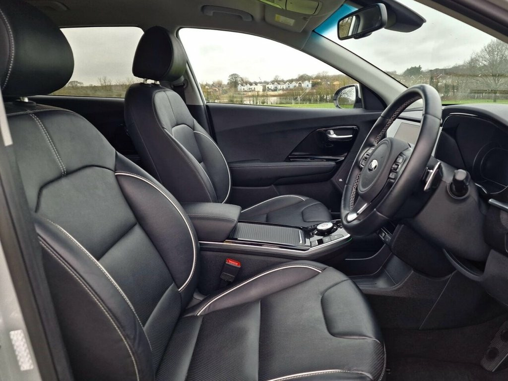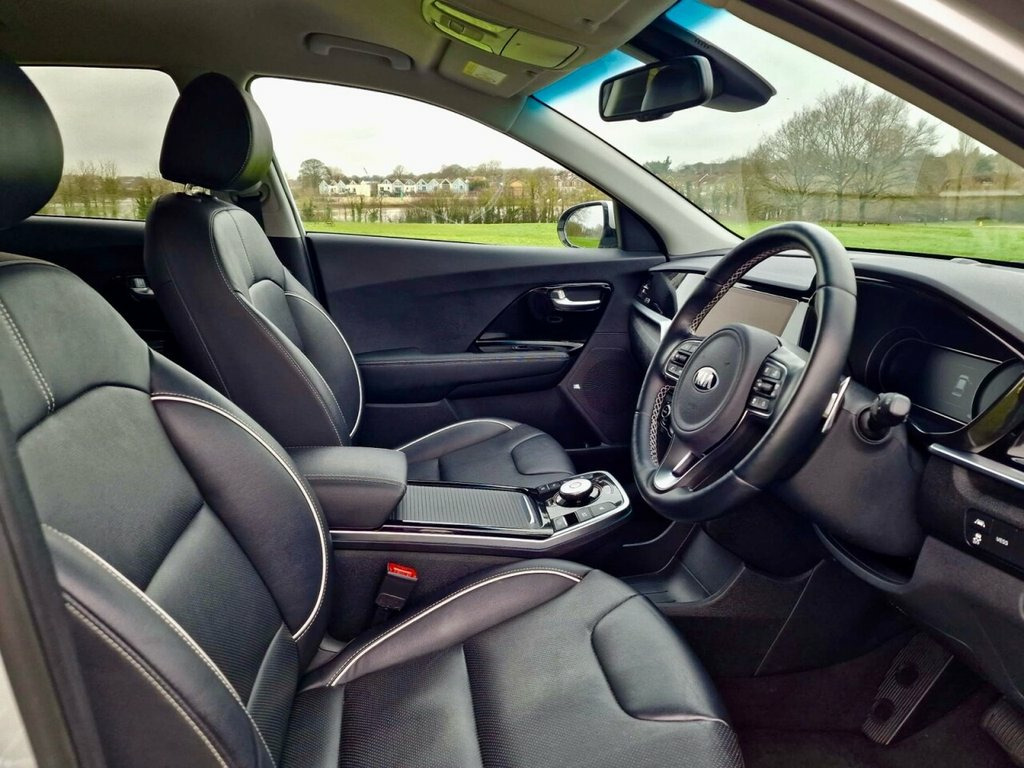 This 2021 Kia Niro 4 is an exceptional electric vehicle, offering a substantial battery capacity of 68 kWh. As a 4 trim model, it combines practicality with advanced electric technology, providing a smooth and efficient driving experience. This particular Niro has been well maintained, ensuring its readiness for many more miles of enjoyable journeys. With a maximum range of 282 miles from new, this Kia Niro stands out from many other electric cars on the market. Recharging is convenient, taking approximately 9 hours and 35 minutes for a full charge at home using a 7kW charger. For quicker top ups, it can reach 80% charge in just 54 minutes at a public charging station. These impressive figures highlight the Niro's capability for both daily commuting and longer trips. 10.25in Touchscreen Satellite Navigation, 17in Alloy Wheels, 3 x Passenger Assist Grips, 60-40 Split Folding 2nd Row Seats, 7in Full TFT Colour Display Cluster, 8-Speaker JBL - Premium Sound System wit, 8-Way Drivers Power Adjustable Seat - Sl, ABS - Anti Lock Braking System, Adaptive Smart Cruise Control with Stop , Alarm System and Engine Immobiliser, All-Round 3-Point Seatbelts, All-Round Electric Windows with Driver a, All-Round Height Adjustable Headrests, Aluminium Door Scuff Plates, Ambient Lighting - EV, Android Auto with Voice Control, Apple CarPlay with Voice Control, Auto Dimming Rear-View Mirror, Automatic Headlight Control, Automatic Windscreen De-Fog, Battery Heating System, Bl