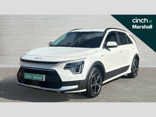 Kia Niro 1.6 GDi Hybrid 2 5dr DCT 4.2" supervision colour cluster display, 8" touch screen, Adaptive smart cruise control function (SCC) with stop and go, Apple car play/Android Auto with voice control, Drive mode select (Eco, sport), E-call, Emergency stop signalling system, Forward Collision-Avoidance Assist (FCA) 1.5 - City/Pedestrian/Cyclist/Junction turning, Lane Following Assist (LFA), Lane keep assist, Motor driven power steering, Rear parking sensors, Reversing camera with dynamic guide lines, Speed limit assist, Tailgate, Trip computer with distance/fuel consumption/average speed, Sports H-Matic Automatic, 'Shark fin' mobile antenna, 2 type C USB ports on front seats, 2 USB ports in centre console including 1 type C, 6 speakers, Bluetooth with music streaming, DAB Digital radio, Steering wheel mounted controls, Acoustic windshield, All round electric windows with drivers auto up/down function, Auto dimming rear view mirror, Automatic defog system, Automatic headlight control system, Black beltline mouldings, Black embossed cladding, Body colour bumpers, Body colour door mirrors, Body colour exterior door handles, Dual LED headlights (low and high projection), Electric heated door mirrors, Front and rear silver skid plates, Heated rear window with timer, LED daytime running lights, LED rear combination lights, LED third brake light, Manual folding door mirrors, Rain sensor, Rear fog lights, Rear side wing doors, Rear spoiler, Rear wiper, Roof rails, Solar glass rear windows and tailgate, Solar glass windscreen, Welcome and follow-me home light functionality, Windscreen Washer Level Warning, 12v socket in front, 12V socket in luggage compartment, 3 seat bench in 2nd row, 60/40 split/folding 2nd row of seats, All-round height adjustable headrests, Artificial leather centre console storage box, Artificial leather steering wheel, Bulb type overhead console lamp with sunglasses case, Centre console cupholder, Cloth upholstery, Driver seat manual adjustment, Driver/passenger sunvisors with illuminated vanity mirrors, Dual zone automatic air conditioning, Front and rear door storage, H-Matic gear selection, Illuminated glovebox, Interior door lock/unlock function, ISOFIX Child seat top tethers and anchor fixings, Luggage area lamp, Luggage area load cover, Luggage board, Metal paint interior door handles, Passenger seat height adjuster, Rear armrest, Seatback pocket - driver, Single front passenger seat, Tilt/telescopic adjustable steering wheel, Towing pack - Niro, 3 point seatbelts on all seats, ABS, Automatic unlocking of doors in case of impact, Centre side front airbags, Curtain and side airbags, Drivers knee airbag, Dual shell horn, Electric parking brake with auto hold function, Electronic stability control, Front passenger airbag deactivation, Height adjustable front seatbelts, Hill start assist control (HAC), Manual rear child locks, Rear seat alert system, Traction control, Tyre pressure monitoring system, Alarm system and engine immobiliser, Deadlocks, Locking wheel nuts, Remote central door locking with fold away key, Visible vehicle identification number, Warranty - 7 Years/ 100,000 miles, Graphite paint centre fascia, 16" alloy wheels, Tyre mobility kit