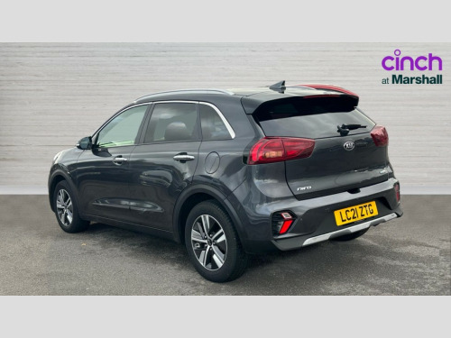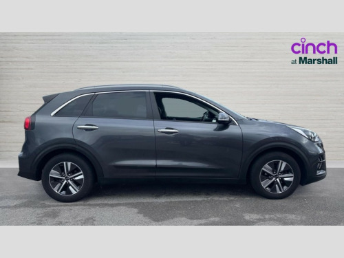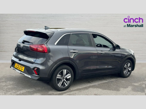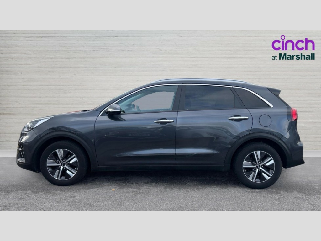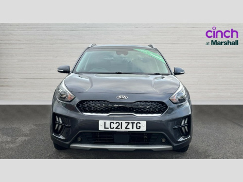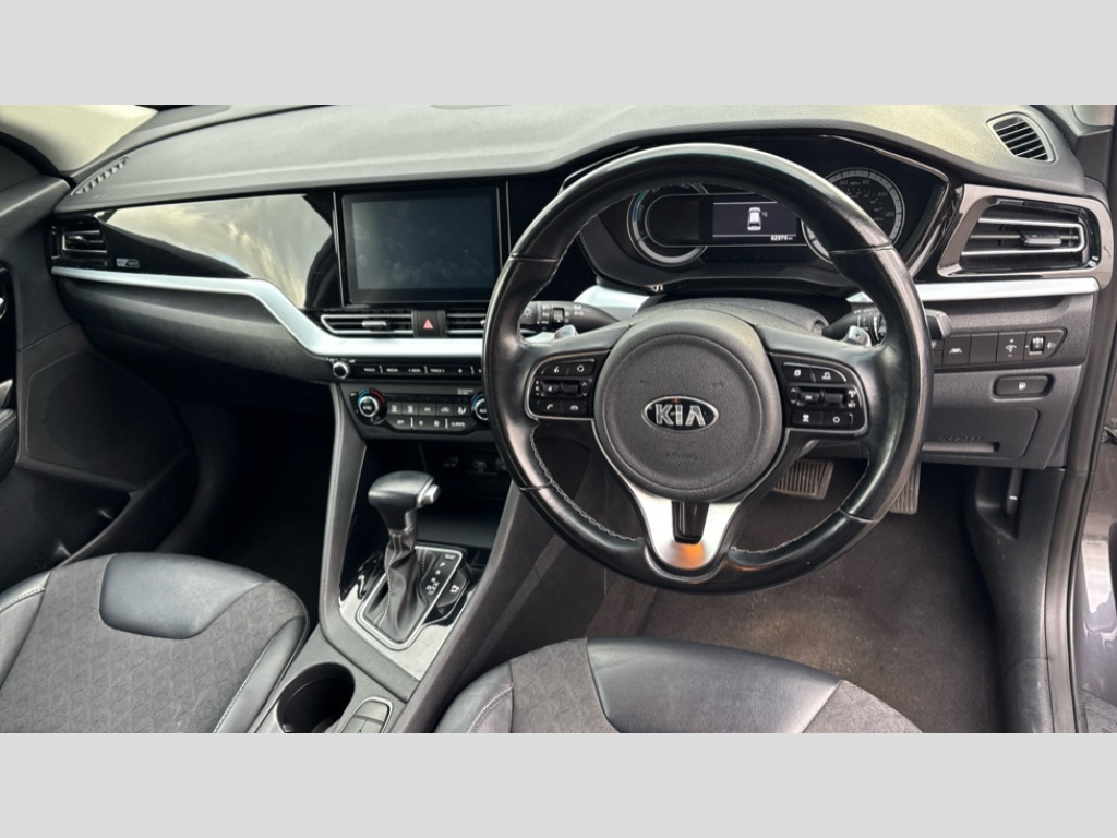 Kia Niro 1.6 GDi Hybrid 2 5dr DCT 8" touch screen, Adaptive smart cruise control function (SCC) with stop and go, Apple car play/Android Auto with voice control, Digital clock, Drive mode selector, Driver attention warning, Emergency stop signalling system, Forward collision avoidance assist, Lane Following Assist (LFA), Lane keep assist, Motor driven power steering, Rear parking sensors, Reversing camera, Speed limiter, Trip computer with distance/fuel consumption/average speed, 'Shark fin' mobile antenna, 4.2" supervision cluster with TFT colour display, 6 speakers, Bluetooth with music streaming, DAB Radio with MP3, Steering wheel mounted controls, USB connection located in centre console, USB port, All round electric windows with drivers auto up/down function, Auto dimming rear view mirror, Automatic defog system, Automatic headlight control system, Black beltline mouldings, Black side sills, Body colour bumpers, Body coloured/high gloss door mirrors, Chrome door handles, Driver's side wide angle mirror, Electrically folding/adjustable/heated door mirrors with LED indicators, Front fog lights, LED daytime running lights, LED rear combination lights, Manual headlight levelling, Matt black radiator grille, Privacy glass - Rear windows and tailgate, Projector headlamps, Rain sensing front wipers, Rear spoiler, Rear wiper, Roof rails, Solar glass, Welcome and follow-me home light functionality, Wheel arch mouldings, 3 x passenger assist grips, 60/40 split/folding 2nd row of seats, All-round height adjustable headrests, Centre console storage box, Centre room lamp, Cloth/leather upholstery, Cupholders in rear armrest, Door armrest in leather, Driver's seat height adjuster, Driver/passenger sunvisors with illuminated vanity mirrors, Dual zone automatic air conditioning, Front and rear door storage, Front/rear centre armrests, Headlining in Light grey, High gloss black lower console trim, High gloss black steering wheel trim, Illuminated ignition key hole, Interior door lock/unlock function, ISOFIX Child seat top tethers and anchor fixings, Leather trimmed gearshift, Leather trimmed steering wheel, Luggage area lamp, Luggage compartment cover, Luggage net with hooks, Overhead console lamp with sunglasses case, Passenger seat height adjuster, Satin finish inner door handles, Seatback pocket - front passenger, Steering wheel mounted paddle shift, Tilt/telescopic adjustable steering wheel, Under floor storage box, Ventiliation ducts to rear compartment, Towing pack - Niro, 3 point seatbelts on all seats, ABS, Automatic unlocking of doors in case of impact, Drivers knee airbag, Electric parking brake with auto hold function, Electronic stability control, Front passenger airbag cut-off switch, Height adjustable front seatbelts, Hill start assist control (HAC), Traction control, Twin curtain airbags with roll over sensor, Twin front and side airbags, Tyre pressure monitoring system, Alarm system and engine immobiliser, Deadlocks, Locking wheel nuts, Remote central door locking with fold away key, Speed sensitive auto door locking, Visible vehicle identification number, High gloss black centre fascia, High gloss black door inserts, 16" alloy wheels, Tyre mobility kit