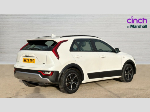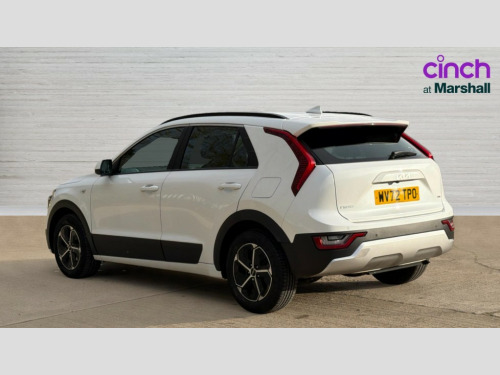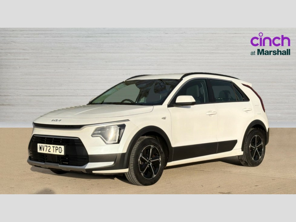 Kia Niro 1.6 GDi Hybrid 2 5dr DCT 4.2" supervision colour cluster display, 8" touch screen, Adaptive smart cruise control function (SCC) with stop and go, Apple car play/Android Auto with voice control, Drive mode select (Eco, sport), E-call, Emergency stop signalling system, Forward Collision-Avoidance Assist (FCA) 1.5 - City/Pedestrian/Cyclist/Junction turning, Lane Following Assist (LFA), Lane keep assist, Motor driven power steering, Rear parking sensors, Reversing camera with dynamic guide lines, Speed limit assist, Tailgate, Trip computer with distance/fuel consumption/average speed, Sports H-Matic Automatic, 'Shark fin' mobile antenna, 2 type C USB ports on front seats, 2 USB ports in centre console including 1 type C, 6 speakers, Bluetooth with music streaming, DAB Digital radio, Steering wheel mounted controls, Acoustic windshield, All round electric windows with drivers auto up/down function, Auto dimming rear view mirror, Automatic defog system, Automatic headlight control system, Black beltline mouldings, Black embossed cladding, Body colour bumpers, Body colour door mirrors, Body colour exterior door handles, Dual LED headlights (low and high projection), Electric heated door mirrors, Front and rear silver skid plates, Heated rear window with timer, LED daytime running lights, LED rear combination lights, LED third brake light, Manual folding door mirrors, Rain sensor, Rear fog lights, Rear side wing doors, Rear spoiler, Rear wiper, Roof rails, Solar glass rear windows and tailgate, Solar glass windscreen, Welcome and follow-me home light functionality, Windscreen Washer Level Warning, 12V socket in front, 12V socket in luggage compartment, 3 seat bench in 2nd row, 60/40 split/folding 2nd row of seats, All-round height adjustable headrests, Artificial leather centre console storage box, Artificial leather steering wheel, Bulb type overhead console lamp with sunglasses case, Centre console cupholder, Cloth upholstery, Driver seat manual adjustment, Driver/passenger sunvisors with illuminated vanity mirrors, Dual zone automatic air conditioning, Front and rear door storage, H-Matic gear selection, Illuminated glovebox, Interior door lock/unlock function, ISOFIX Child seat top tethers and anchor fixings, Luggage area lamp, Luggage area load cover, Luggage board, Metal paint interior door handles, Passenger seat height adjuster, Rear armrest, Seatback pocket - driver, Single front passenger seat, Tilt/telescopic adjustable steering wheel, Towing pack - Niro, 3 point seatbelts on all seats, ABS, Automatic unlocking of doors in case of impact, Centre side front airbags, Curtain and side airbags, Drivers knee airbag, Dual shell horn, Electric parking brake with auto hold function, Electronic stability control, Front passenger airbag deactivation, Height adjustable front seatbelts, Hill start assist control (HAC), Manual rear child locks, Rear seat alert system, Traction control, Tyre pressure monitoring system, Alarm system and engine immobiliser, Deadlocks, Locking wheel nuts, Remote central door locking with fold away key, Visible vehicle identification number, Warranty - 7 Years/ 100,000 miles, Graphite paint centre fascia, 16" alloy wheels, Tyre mobility kit