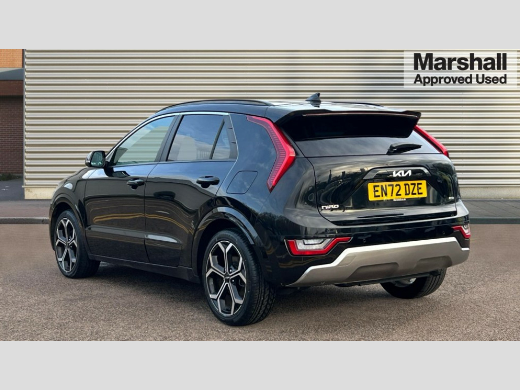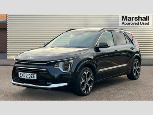 To find out more about this vehicle – simply call, click or visit us. 10.25" touchscreen satellite navigation, 4.2" supervision colour cluster display, Adaptive smart cruise control function (SCC) with stop and go, Apple car play/Android Auto with voice control, Blind spot collision avoidance assist, Drive mode select (Eco, sport), E-call, Emergency stop signalling system, Forward Collision-Avoidance Assist (FCA) 1.5 - City/Pedestrian/Cyclist/Junction turning, Front parking sensors, Highway Driving Assist (HDA), Kia Connect (UVO), Lane Following Assist (LFA), Lane keep assist, Motor driven power steering, Rear cross traffic alert, Rear parking sensors, Reversing camera with dynamic guide lines, Safe exit warning (SEW), Speed limit assist, Tailgate, Trip computer with distance/fuel consumption/average speed, Wireless Smartphone charger, 220v AC Inverter, 'Shark fin' mobile antenna, 2 type C USB ports on front seats, 2 USB ports in centre console including 1 type C, 6 speakers, Bluetooth with music streaming, DAB Digital radio, Steering wheel mounted controls, Acoustic windshield, All round electric windows with drivers and front passenger auto up/down and safety function, Auto dimming rear view mirror, Automatic defog system, Automatic headlight control system, Black grille with chrome surround, Body colour bumpers, Body colour exterior door handles, Dual LED headlights (low and high projection), Electric heated door mirrors, Electrically folding door mirrors, Front and rear chrome skid plates, Front fog lights, Heated rear window with timer, High gloss black cladding, High gloss black door mirrors, LED daytime running lights, LED rear combination lights, LED third brake light, Privacy glass - Rear windows and tailgate, Rain sensing front wipers, Rear fog lights, Rear side wing doors, Rear spoiler, Rear wiper, Roof rails, Solar glass windscreen, Welcome and follow-me home light functionality, Windscreen Washer Level Warning, 12V socket in front, 12V socket in luggage compartment, 3 seat bench in 2nd row, 60/40 split/folding 2nd row of seats, All-round height adjustable headrests, Artificial leather centre console storage box, Artificial leather steering wheel, Bulb overhead console, 2nd row and luggage lamp, Centre console cupholder, Chrome coating interior door handles, Cloth / Artificial leather upholstery, Driver's power adjustable seat, Driver/passenger sunvisors with illuminated vanity mirrors, Drivers seat power lumbar support, Dual zone automatic air conditioning, Front and rear door storage, Heated front seats, Heated steering wheel, Illuminated glovebox, Interior door lock/unlock function, ISOFIX Child seat top tethers and anchor fixings, Luggage area load cover, Luggage board, Paddle shifts, Passenger seat height adjuster, Rear armrest, Seatback pocket - driver, Seatback pocket - front passenger, Shift by wire SBW, Single front passenger seat, Tilt/telescopic adjustable steering wheel, Ventiliation ducts to rear compartment, Towing pack - Niro, 3 point seatbelts on all seats, ABS, Automatic unlocking of doors in case of impact, Centre side front airbags, Curtain and side airbags, Drivers knee airbag, Dual shell horn, Electric parking brake with auto hold function, Electronic stability control, Front passenger airbag deactivation, Height adjustable front seatbelts, Hill start assist control (HAC), Manual rear child locks, Rear seat alert system, Traction control, Tyre pressure monitoring system, Alarm system and engine immobiliser, Deadlocks, Engine Start/Stop Button with Smart Entry System, Locking wheel nuts, Visible vehicle identification number, Warranty - 7 Years/ 100,000 miles, Centre fascia chopped carbon, 18" Alloy wheels, Tyre mobility kit