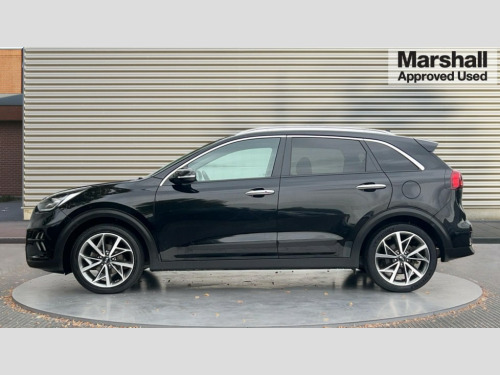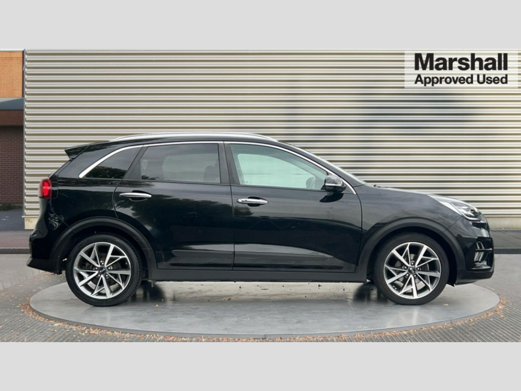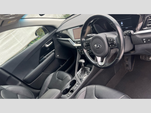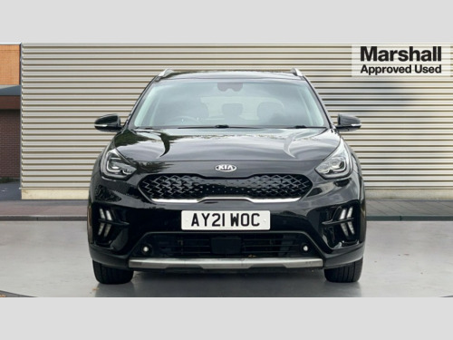 Kia Niro 1.6 GDi Hybrid 4 5dr DCT 10.25" Touch screen satellite navigation with european mapping and traffic messaging channel, 7" full supervision cluster with TFT colour display, Adaptive smart cruise control function (SCC) with stop and go, Apple car play/Android Auto with voice control, Blind spot monitoring with rear cross traffic alert, Digital clock, Drive mode selector, Driver attention warning, Emergency stop signalling system, Forward collision avoidance assist, Front parking sensors, Intelligent speed limit warning, Kia connected services featuring TomTom live, Lane Following Assist (LFA), Lane keep assist, Motor driven power steering, Rear parking sensors, Reversing camera, Speed limiter, Telematics system with UVO connect services, Trip computer with distance/fuel consumption/average speed, Wireless Smartphone charger, 'Shark fin' mobile antenna, Bluetooth with music streaming, DAB Radio with MP3, JBL Premium sound system with 8 speakers, external amp, subwoofer and front centre speaker, Steering wheel mounted controls, USB connection located in centre console, USB port, All round electric windows with drivers and front passenger auto up/down function, Auto dimming rear view mirror, Automatic defog system, Automatic headlight control system, Bi LED headlights, Black beltline mouldings, Black side sills, Body colour bumpers, Body coloured/high gloss door mirrors, Chrome door handles, Driver's door mirror memory, Driver's side wide angle mirror, Electrically folding/adjustable/heated door mirrors with LED indicators, LED daytime running lights, LED fog lights, LED rear combination lights, Manual headlight levelling, Matt black radiator grille, One touch single tilting/sliding power sunroof, Privacy glass - Rear windows and tailgate, Rain sensing front wipers, Rear spoiler, Rear wiper, Roof rails, Solar glass, Welcome and follow-me home light functionality, Wheel arch mouldings, 3 x passenger assist grips, 60/40 split/folding 2nd row of seats, 8 way electric adjustable drivers seat, All-round height adjustable headrests, Aluminium door scuff plates, Aluminium pedals, Ambient lighting, Centre console storage box, Cupholders in rear armrest, Door armrest in leather, Driver seat memory function, Driver/passenger sunvisors with illuminated vanity mirrors, Drivers seat power lumbar support, Dual zone automatic air conditioning, Front and rear door storage, Front/rear centre armrests, Headlining in Light grey, Heated front seats, Heated outer rear seats, Heated steering wheel, High gloss black lower console trim, High gloss black steering wheel trim, Interior door lock/unlock function, ISOFIX Child seat top tethers and anchor fixings, Leather trimmed gearshift, Leather trimmed steering wheel, Leather upholstery, LED centre room lamp, LED luggage area light, LED overhead console lamp with sunglasses case, Luggage compartment cover, Luggage net with hooks, Passenger seat height adjuster, Satin finish inner door handles, Seatback pocket - driver, Seatback pocket - front passenger, Steering wheel mounted paddle shift, Tilt/telescopic adjustable steering wheel, Under floor storage box, Ventilated front seats, Ventiliation ducts to rear compartment, Towing pack - Niro, 3 point seatbelts on all seats, ABS, Automatic unlocking of doors in case of impact, Drivers knee airbag, Electric parking brake with auto hold function, Electronic stability control, Front passenger airbag cut-off switch, Height adjustable front seatbelts, Hill start assist control (HAC), Traction control, Twin curtain airbags with roll over sensor, Twin front and side airbags, Tyre pressure monitoring system, Alarm system and engine immobiliser, Deadlocks, Engine Start/Stop Button with Smart Entry System, Locking wheel nuts, Visible vehicle identification number, High gloss black centre fascia, High gloss black door inserts, 18" Alloy wheels, Tyre mobility kit