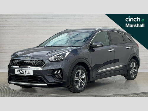 Kia Niro 1.6 GDi PHEV 3 5dr DCT 10.25" Touch screen satellite navigation with european mapping and traffic messaging channel, Adaptive smart cruise control function (SCC) with stop and go, Apple car play/Android Auto with voice control, Digital clock, Drive mode selector, Driver attention warning, Emergency stop signalling system, Forward collision avoidance assist, Front parking sensors, Kia connected services featuring TomTom live, Lane Following Assist (LFA), Lane keep assist, Motor driven power steering, Rear parking sensors, Reversing camera, Speed limiter, Telematics system with UVO connect services, Trip computer with distance/fuel consumption/average speed, Wireless Smartphone charger, 'Shark fin' mobile antenna, 4.2" supervision cluster with TFT colour display, 6 speakers, Bluetooth with music streaming, DAB Radio with MP3, Steering wheel mounted controls, USB connection located in centre console, USB port, All round electric windows with drivers and front passenger auto up/down function, Auto dimming rear view mirror, Automatic defog system, Automatic headlight control system, Black side sills, Body colour bumpers, Body coloured/high gloss door mirrors, Chrome beltline mouldings, Chrome door handles, Driver's side wide angle mirror, Electrically folding/adjustable/heated door mirrors with LED indicators, LED daytime running lights, LED fog lights, LED rear combination lights, Manual headlight levelling, Matt black radiator grille, Privacy glass - Rear windows and tailgate, Projector headlamps, Rain sensing front wipers, Rear spoiler, Rear wiper, Roof rails, Solar glass, Welcome and follow-me home light functionality, Wheel arch mouldings, 3 x passenger assist grips, 60/40 split/folding 2nd row of seats, 8 way electric adjustable drivers seat, All-round height adjustable headrests, Aluminium door scuff plates, Centre console storage box, Centre room lamp, Cupholders in rear armrest, Door armrest in leather, Driver/passenger sunvisors with illuminated vanity mirrors, Drivers seat power lumbar support, Dual zone automatic air conditioning, Front and rear door storage, Front/rear centre armrests, Headlining in Light grey, Heated front seats, Heated steering wheel, High gloss black lower console trim, High gloss black steering wheel trim, Illuminated ignition key hole, Interior door lock/unlock function, ISOFIX Child seat top tethers and anchor fixings, Leather trimmed gearshift, Leather trimmed steering wheel, Leather upholstery, Luggage area lamp, Luggage compartment cover, Luggage net with hooks, Overhead console lamp with sunglasses case, Passenger seat height adjuster, Satin finish inner door handles, Seatback pocket - driver, Seatback pocket - front passenger, Steering wheel mounted paddle shift, Tilt/telescopic adjustable steering wheel, Under floor storage box, Ventiliation ducts to rear compartment, Towing pack - Niro, 3 point seatbelts on all seats, ABS, Automatic unlocking of doors in case of impact, Drivers knee airbag, Electric parking brake with auto hold function, Electronic stability control, Front passenger airbag cut-off switch, Height adjustable front seatbelts, Hill start assist control (HAC), Traction control, Twin curtain airbags with roll over sensor, Twin front and side airbags, Tyre pressure monitoring system, Alarm system and engine immobiliser, Deadlocks, Locking wheel nuts, Remote central door locking with fold away key, Visible vehicle identification number, High gloss black centre fascia, High gloss black door inserts, 16" alloy wheels, Tyre mobility kit