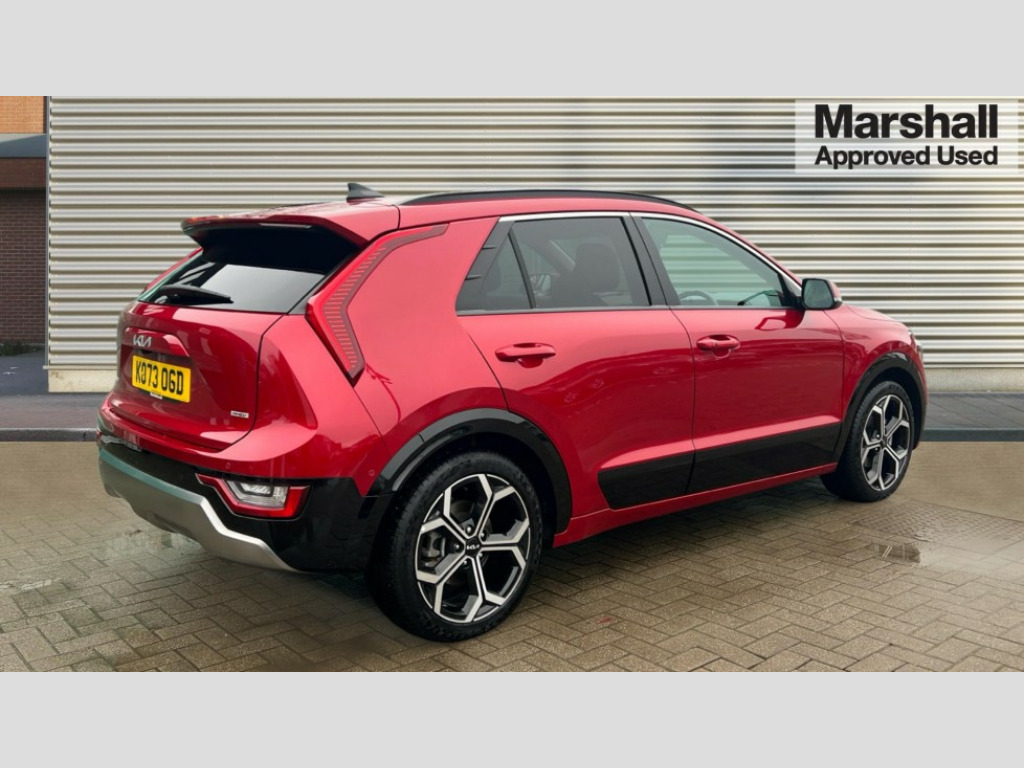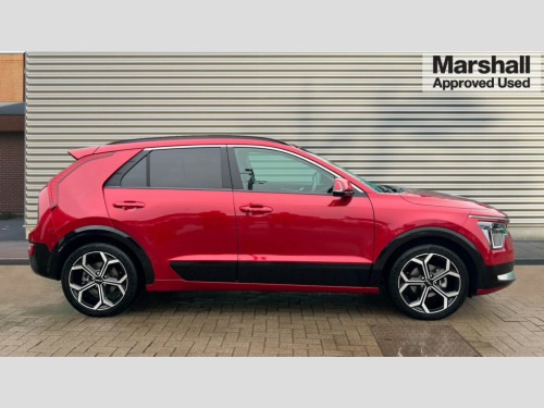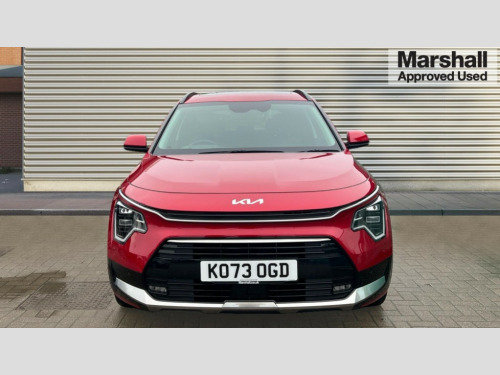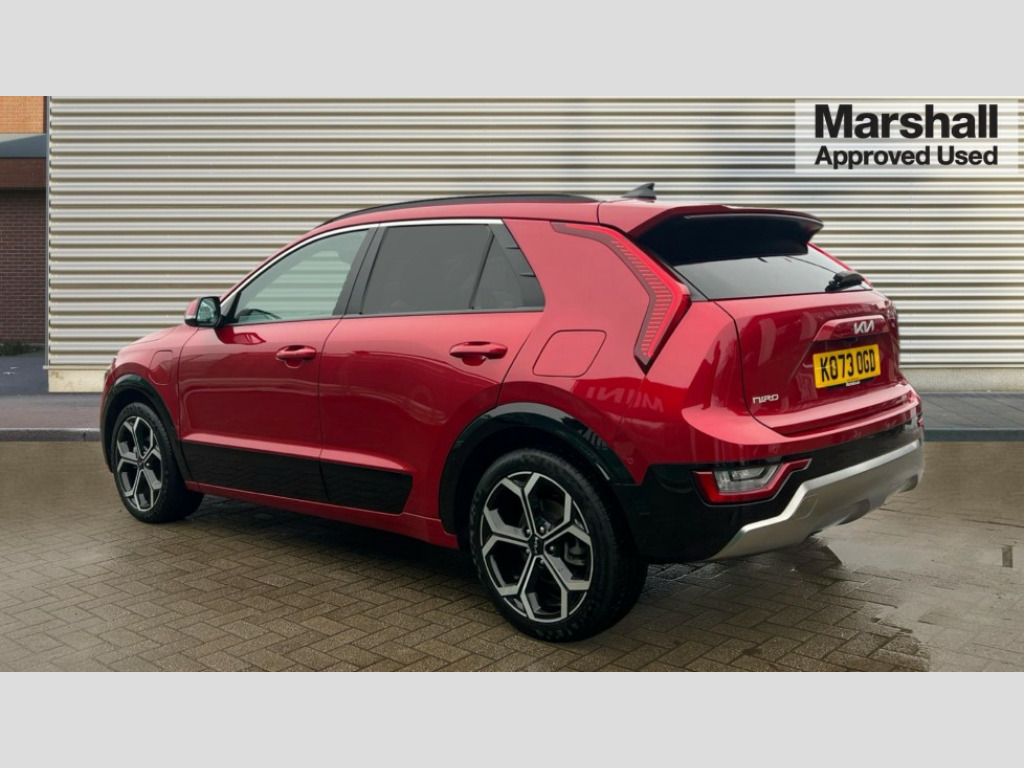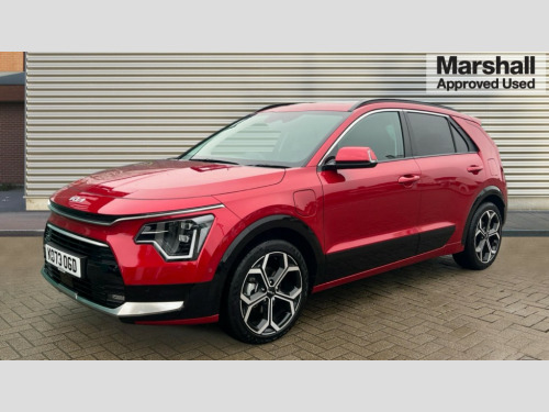 Kia Niro 1.6 GDi PHEV 4 5dr DCT 10.25" Supervision colour cluster display, 10.25" touchscreen satellite navigation, Adaptive smart cruise control function (SCC) with stop and go, Apple car play/Android Auto with voice control, Blind spot collision avoidance assist, Drive mode select (Eco, sport), E-call, Emergency stop signalling system, Forward Collision-Avoidance Assist (FCA) 1.5 - City/Pedestrian/Cyclist/Junction turning, Front parking sensors, Head up Display, Highway Driving Assist (HDA), Kia Connect (UVO), Lane Following Assist (LFA), Lane keep assist, Motor driven power steering, Parking collision avoidance assist (PCA), Power opening/closing tailgate, Rear cross traffic alert, Rear parking sensors, Remote smart parking assist, Reversing camera with dynamic guide lines, Safe exit warning (SEW), Speed limit assist, Trip computer with distance/fuel consumption/average speed, Wireless Smartphone charger, 220v AC Inverter, 'Shark fin' mobile antenna, 2 Front USB Charge port (one for C-type/one for USB), 2 type C USB ports on front seats, 6 speakers, Bluetooth with music streaming, DAB Digital radio, Steering wheel mounted controls, Acoustic windshield, All round electric windows with drivers and front passenger auto up/down and safety function, Auto dimming rear view mirror, Automatic defog system, Automatic headlight control system, Black grille with chrome surround, Body colour bumpers, Body colour exterior door handles, Deluxe door scuff plates, Dual LED headlights (low and high projection), Electric heated door mirrors, Electrically folding door mirrors, Front and rear chrome skid plates, Front fog lights, Heated rear window with timer, High gloss black cladding, High gloss black door mirrors, LED daytime running lights, LED rear combination lights, LED third brake light, One touch single tilting/sliding power sunroof, Privacy glass - Rear windows and tailgate, Rain sensing front wipers, Rear fog lights, Rear side wing doors, Rear spoiler, Rear wiper, Roof rails, Solar glass windscreen, Welcome and follow-me home light functionality, Windscreen Washer Level Warning, 12V socket in front, 12V socket in luggage compartment, 3 seat bench in 2nd row, 60:40 split remote folding rear seats, All-round height adjustable headrests, Aluminium pedals, Artificial leather centre console storage box, Artificial leather steering wheel, Centre console cupholder, Chrome coating interior door handles, Driver and front passenger power adjusted seat, Driver power adjusted memory seat, Driver/passenger sunvisors with illuminated vanity mirrors, Drivers seat power lumbar support, Dual zone automatic air conditioning, Front and rear door storage, Heated front seats, Heated outer rear seats, Heated steering wheel, Illuminated glovebox, Interior door lock/unlock function, ISOFIX Child seat top tethers and anchor fixings, LED overhead console, 2nd row and luggage lamp, Luggage area load cover, Luggage board, Paddle shifts, Passenger premium relaxation seat, Power adjustable lumbar support on front passenger seat, Rear armrest, Seatback pocket - driver, Seatback pocket - front passenger, Shift by wire SBW, Single front passenger seat, Tilt/telescopic adjustable steering wheel, Vegan leather upholstery, Ventilated front seats, Ventiliation ducts to rear compartment, Towing pack - Niro, 3 point seatbelts on all seats, ABS, Automatic unlocking of doors in case of impact, Centre side front airbags, Curtain and side airbags, Drivers knee airbag, Dual shell horn, Electric parking brake with auto hold function, Electronic stability control, Front passenger airbag deactivation, Height adjustable front seatbelts, Hill start assist control (HAC), Manual rear child locks, Rear seat alert system, Traction control, Tyre pressure monitoring system, Alarm system and engine immobiliser, Deadlocks, Engine Start/Stop Button with Smart Entry System, Locking wheel nuts, Visible vehicle identification number, Warranty - 7 Years/ 100,000 miles, Centre fascia chopped carbon, 18" Alloy wheels, Tyre mobility kit