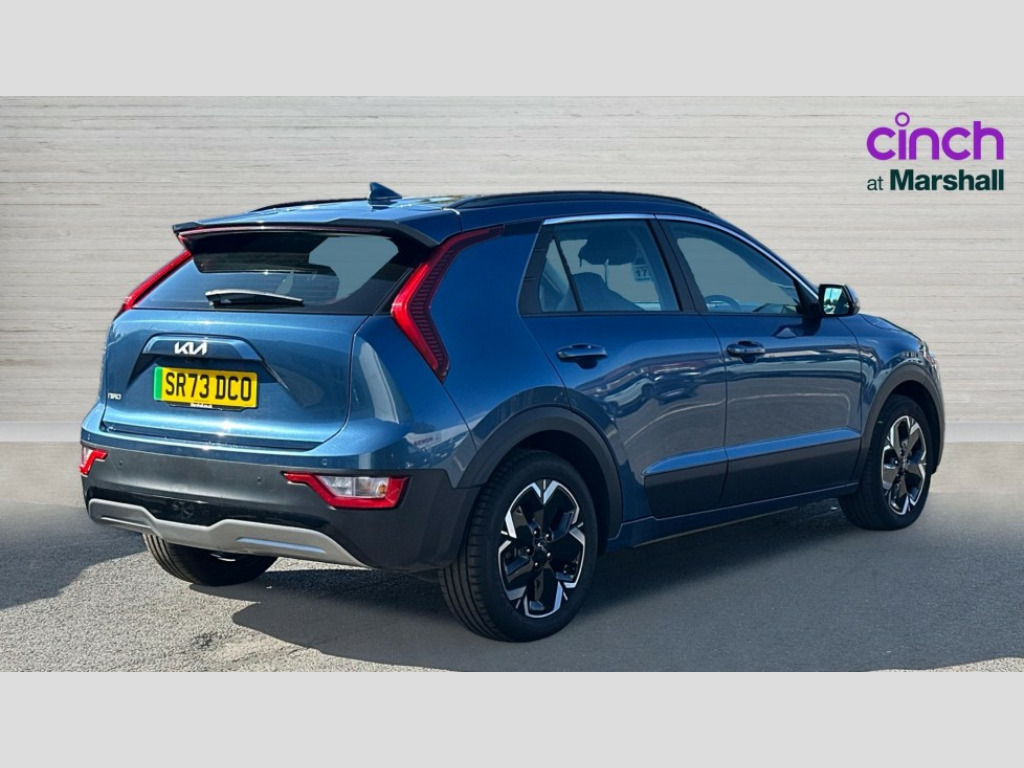 Kia Niro 150kW 2 Nav 65kWh 5dr Auto 10.25" Supervision colour cluster display, 10.25" touchscreen satellite navigation, Adaptive smart cruise control function (SCC) with stop and go, Apple car play/Android Auto with voice control, Charging indicator on dashboard, Digital clock, Drive mode select (Eco, normal, sport, snow), E-call, Emergency stop signalling system, Forward Collision-Avoidance Assist (FCA) 1.5 - City/Pedestrian/Cyclist/Junction turning, Intelligent speed limit assist, Kia Connect (UVO), Lane Following Assist (LFA), Lane keep assist, Motor driven power steering, Rear parking sensors, Reversing camera with dynamic guide lines, Tailgate, Trip computer with distance/fuel consumption/average speed, 11 kW AC onboard charger, Battery heating system, Front Grille Charging Port, 'Shark fin' mobile antenna, 2 C-type charge port on front seats, 2 Front USB Charge port (one for C-type/one for USB), 6 speakers, Bluetooth with music streaming, DAB Digital radio, Steering wheel mounted controls, Acoustic windshield, All round electric windows with drivers auto up/down function, Auto dimming rear view mirror, Automatic defog system, Automatic headlight control system, Bi-function halogen projector headlights, Black beltline, Black embossed cladding, Body colour bumpers, Body colour door mirrors, Body colour exterior door handles, Electric heated door mirrors, Front and rear silver skid plates, Heated rear windscreen, LED daytime running lights, LED rear combination lights, LED third brake light, Manual folding door mirrors, Rear fog lights, Rear side wing doors, Rear spoiler, Rear wiper, Roof rails, Solar glass rear windows and tailgate, Solar glass windscreen, Standard door scuff plates, Welcome and follow-me home light functionality, Windscreen Washer Level Warning, 12V socket in front, 12V socket in luggage compartment, 3 seat bench in 2nd row, 60:40 split remote folding rear seats, Air filter, All-round height adjustable headrests, Artificial leather centre console storage box, Artificial leather steering wheel, Bulb overhead console, 2nd row and luggage lamp, Centre console cupholder, Cloth upholstery, Driver seat manual adjustment, Driver/passenger sunvisors with illuminated vanity mirrors, Dual zone automatic air conditioning, Front and rear door storage, Illuminated glovebox, Interior door lock/unlock function, ISOFIX Child seat top tethers and anchor fixings, Luggage area load cover, Luggage board, Metal paint interior door handles, Paddle shifts, Passenger seat height adjuster, Seatback pocket - driver, Seatback pocket - front passenger, Shift by wire SBW, Single front passenger seat, Tilt/telescopic adjustable steering wheel, Towing pack - Niro, 3 point seatbelts on all seats, ABS, Automatic unlocking of doors in case of impact, Centre side front airbags, Curtain and side airbags, Drivers knee airbag, Dual shell horn, Electric parking brake with auto hold function, Electronic stability control, Front passenger airbag deactivation, Height adjustable front seatbelts, Hill start assist control (HAC), Manual rear child locks, Rear seat alert system, Traction control, Tyre pressure monitoring system, Alarm system and engine immobiliser, Deadlocks, Engine Start/Stop Button with Smart Entry System, Locking wheel nuts, Visible vehicle identification number, Warranty - 7 Years/ 100,000 miles, Metal paint centre fascia, 17" Alloy wheels, Tyre mobility kit