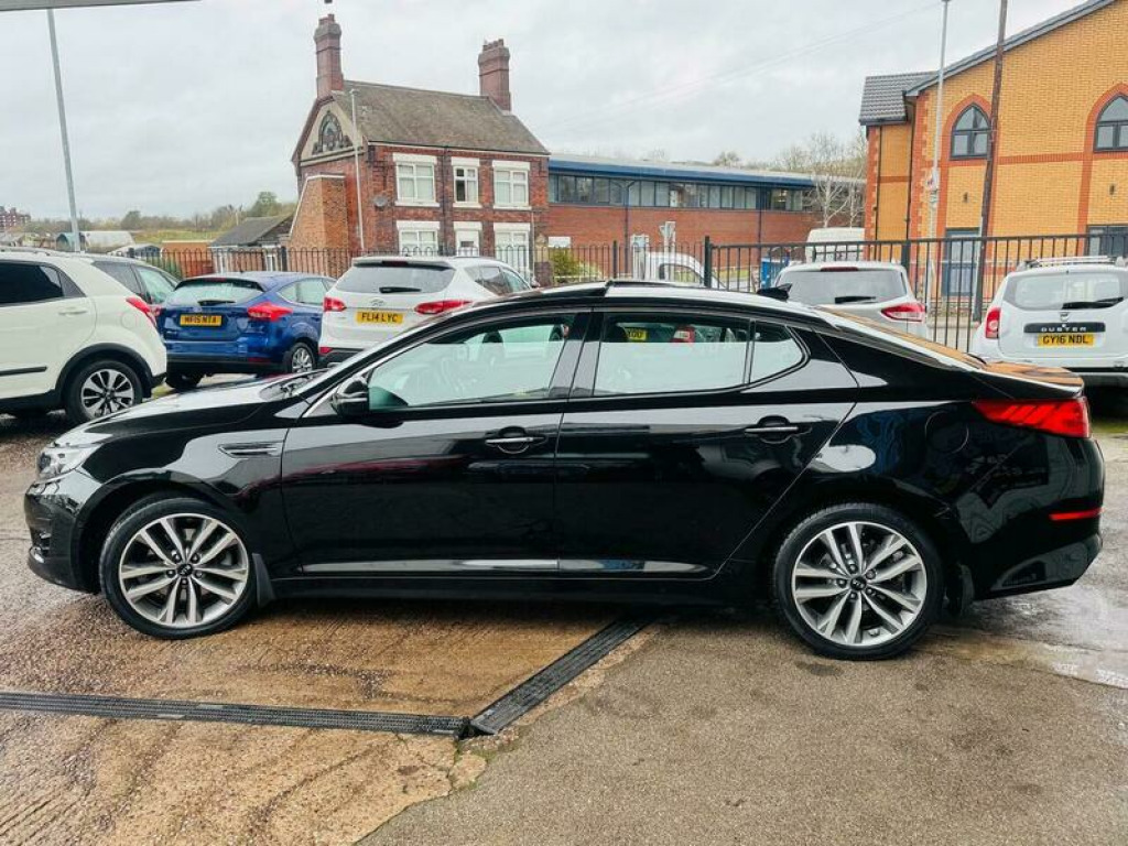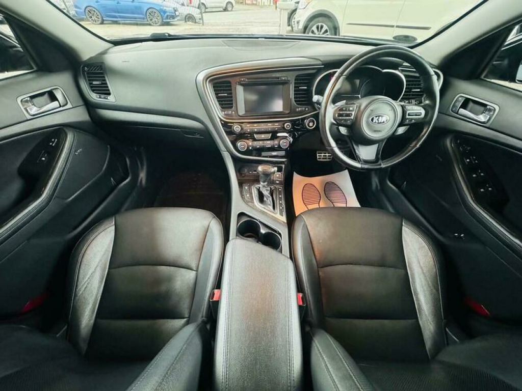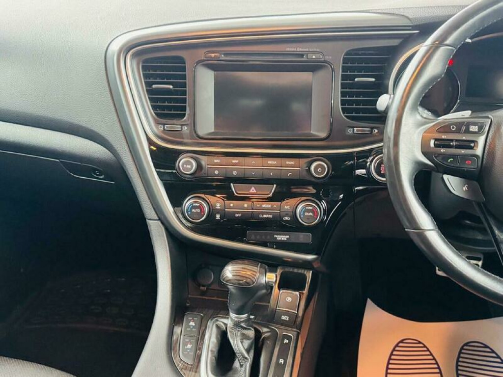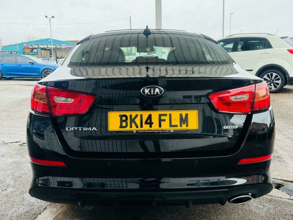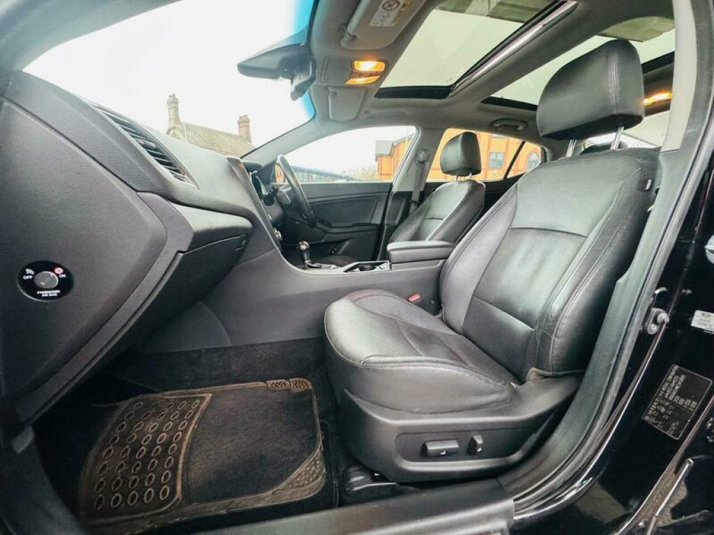 Presenting this Kia Optima 1.7 CRDi 3 Auto Euro 5 4dr with FULL MAIN DEALER SERVICE HISTORY, PANORAMIC ROOF, HEATED AND COOLED FRONT SEATS, LEATHER INTERIOR, REVERSING CAMERA, BLUETOOTH, CRUISE CONTROL, AUTOMATIC TRANSMISSION, ELECTRICALLY ADJUSTABLE FRONT SEATS, FRONT AND REAR PARKING SENSORS, INFINITY SOUND SYSTEM, and much more. This vehicle will be supplied with a FRESH SERVICE AND MOT AT THE CURRENT MILEAGE. DRIVES SUPERB. BRILLIANT FUEL ECONOMY AND PERFORMANCE. ELEVEN SERVICE STAMPS. NEVER FAILED ITS MOT. This 2014 Kia Optima CRDi 3 presents a remarkable opportunity with its exceptionally low mileage of just 66,000 miles for a vehicle of its age. This well appointed saloon, powered by an efficient 1.7 litre diesel engine, offers a comfortable and feature rich driving experience. Inside, you will find a spacious cabin that includes a panoramic sunroof with tilt and slide functionality, complete with an automatic electric roll blind, allowing you to enjoy the open sky. For added comfort, the outer rear seats are heated, ensuring a pleasant journey for all passengers. The Kia Optima CRDi 3 also boasts a suite of advanced technology and practical benefits. Stay connected on the go with Bluetooth connectivity, enabling music streaming and hands free calls. Parking is made easier with a reversing camera system, and for enhanced safety, it features blind spot detection. This particular model stands out due to its low insurance group, which can help reduce running costs, and its generous boot space, offering ample room for luggage or shopping, making it a practical choice for everyday use and longer trips. 12V Power Socket, ABS, Alarm, Automatic Rearview Mirror Dimming, Bluetooth, Brake Assist, Cruise Control, Cup Holders, Daytime Running Lights, ESP, Electric Heated Seats, Engine Immobiliser, Folding Rear Seats, Front Airbags, Front Fog Lights, Heated Door Mirrors, Hill-Start Assist, ISOFix Anchor Point, Keyless Door Locks, LED Lights, Lane Assist, Parking Assistance, Parking Camera, Power Assisted Steering, Privacy/Tinted Glass, Rain Sensor, Safety Belts, Satellite Navigation, Side Impact Airbags, Spare Wheel, Speed Limiter, Steering Wheel Controls, Traction Control