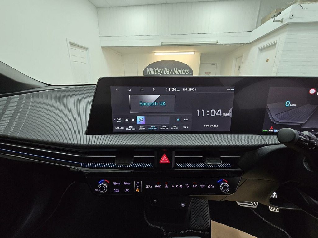 20,042 miles, 1 owner , finished in midnight black, privacy glass, two tone black/ white upholstery, 19'' gloss black alloy wheels with diamond cut faces.Specification includes; touchscreen, virtual dash display, DAB radio, satnav, bluetooth, android auto, apple carplay, voice recognition, multifunctional steering wheel, cruise control, paddle shifters, blindspot assistance, LED day time running lights, LED rear combo lights, multi collision, brake assist, comes with 2 keys.Please see the 'Vehicle Equipment' tab on our website for full specification.Please call our experienced sales team on 0191 4153540 for any additional specification query, an in-depth appraisal/video call or maybe we can help fund your new car. All of our vehicles are subject to a £199 Service Support Fee and are therefore supplied with 12 months MOT, Full Pre Delivery Service, 6 Months Complimentary In-House Warranty, Premium Pre-Collection Valet, Fuel for Your First Journey and a HPI Certificate. We offer a wide range of Finance and Warranty packages as well as fantastic trade rates for alloy wheel refurbs/colour changes, window tinting and much more.. 12.3in Curved Driver Display Screen, 12.3in Curved Touchscreen Navigation, 12V Power Socket - Front, 4x Front USB Charge Port, 6-Speaker Audio System, Android Auto with Voice Control, Apple CarPlay with Voice Control, Bluetooth with Voice Recognition, ECall, Free 7-year Kia Connect - UVO, Luggage 12V Power Socket, USB Port for Connection of a Media Device, Vehicle-2-Load, Wireless Mobile Phone Charger, Blind-Spot Collision Avoidance Assist with Rear-Cross Traffic Assist and Safe Exit Assist, Drive Mode Select, Front Parking Sensors, Low Washer Fluid Warning, Navigation Smart Cruise Control - NSCC and Speed Limiter, Rear Parking Sensors, Reversing Camera System with Dynamic Guidelines, Tyre Pressure Monitoring System - TPMS, 19in Alloy Wheels - Black, All-Round Electric Windows with Auto Up and Down Function, Black High Gloss Door Mirrors, Body Coloured - Door Garnish, Body Coloured Exterior Flush Door Handles, Electrically Folding-Adjustable and Heated Door Mirrors with LED Indicator Lights, GT-Line Exterior Styling, Heated Rear Window, High Gloss Black Beltline, Locking Wheel Nuts, Mouldings - Side Sill - Black, Privacy Glass - Rear, Rear Spoiler, Solar Glass Windshield, TMK - Tyre Mobility Kit, Automatic Headlight Control, Dual LED Headlights with Adaptive Driving Beam, LED Daytime Running Lights, LED Rear Combination Lights, LED Rear Fog Light, 60-40 Split Remote Folding Rear Seats, All-Round Height Adjustable Headrests, Ambient Lighting, Auto Dimming Rear-View Mirror, Automatic Defog System, Centre Console Cupholders, Centre Console with Open Storage Compartment and Armrest, Deluxe Door Scuff Plates, Driver & Front Passenger Premium Relaxion Seats, Driver Power Memory Adjustable Seat with Front Passenger Power Seat with 2-Way Electric Lumbar, Dual Automatic Air Conditioning, Dual Shell Horn, Front and Rear Door Storage, Front and Rear Luggage Area Light - LED, Front Cabin Light - LED, Front Seatback Pockets, Glovebox with Illumination, Headlining Cloth, Heated Front Seats, Heated Steering Wheel, Luggage Area Load Cover, Luggage Board, Luggage Net Hooks, Metal Paint Interior Door Handles, Paddle Shifter for Driver Mode Select, Pedals - Alloy, Rain Sensing Front Wipers, Rear Cabin Map Light - LED, Rear Centre Armrest with Cupholders, Ski Through, Steering Wheel Mounted Audio Controls, Sunvisors with Vanity Mirrors LED Illumination - Driver and Front Passenger, Tilt & Telescopic Steering Wheel Adjustment, Vegan Leather Trimmed Steering Wheel, Power Steering, Type 2 Charging Cable, ABS - Anti Lock Braking System, Airbags - Twin Front, All-Round 3-Point Seatbelts, Anti-Theft Alarm System, Electric Parking Brake with Auto Hold Function, Engine Immobiliser, Engine Start-Stop Button with Smart Entry System, ESC - Electronic Stability Control, Forward Collision-Avoidance Assist - City - Pedestrian - Cyclist - Junction, Front Center Airbag, Front Center Side Airbag, Front Passenger Airbag Cut Off Switch, Front Seatbelt Height Adjusters, Front Seatbelt Pre-Tensioners, Highway Driving Assist, Hill-Start Assist Control - HAC, Impact Sensing Auto Door Unlocking, Intelligent Speed Limit Assist - ISLA, Internal Door Lock - Unlock Function, ISOFIX Child Seat Top Tethers and Anchor Fixings Outer 2nd Row, Lane Follow Assist - LFA, Lane Keeping Assist System - LKAS with Driver Attention Warning, Multi-Collision Brake Assist, Twin Curtain Airbags, Visible Vehicle Identification Number - VIN, VSM - Vehicle Stability Management.