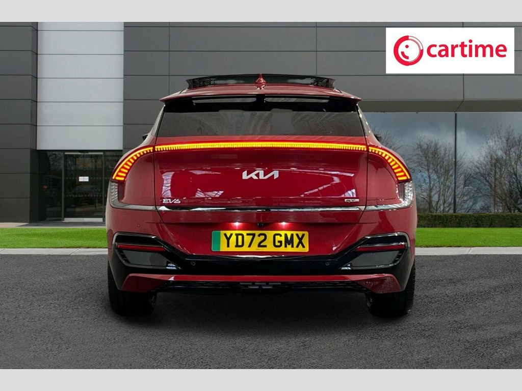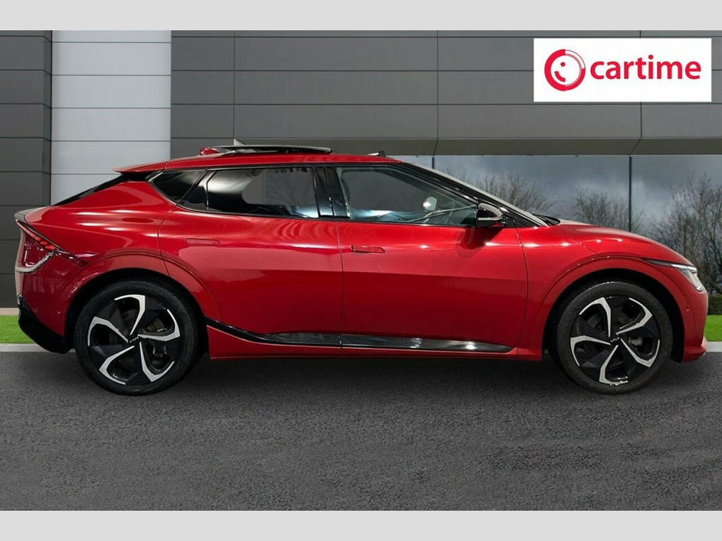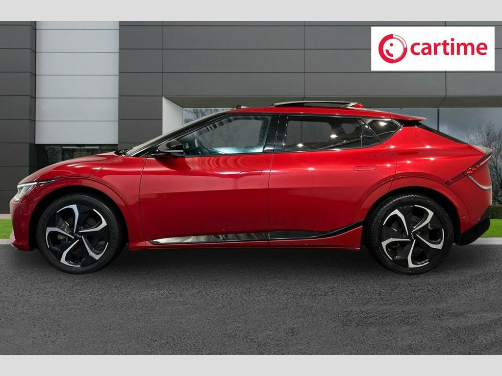 This 2022 Kia EV6 GT-Line S is a superb example, having had only one owner from new and boasting a clear vehicle history check. As a fully electric vehicle, it offers an impressive 300 miles of range from its 77 kWh battery, making longer journeys more manageable. Charging is convenient, with a full charge taking approximately 12 hours and 30 minutes at home using a 7kW charger, while rapid public charging can take you from empty to 80% in just 20 minutes. This GT-Line S model comes equipped with a host of desirable features, including a panoramic sunroof with tilting and sliding functions, a wireless mobile phone charger, and intelligent navigation smart cruise control with a speed limiter. You'll also benefit from automatic headlights and seamless integration with Android Auto, complete with voice control. The Kia EV6 GT-Line S stands out with its exceptional performance, accelerating from 0-60mph in a swift 5.2 seconds, demonstrating its dynamic capabilities. This acceleration figure highlights how this vehicle offers a more engaging driving experience compared to many other electric cars. Furthermore, the generous boot space provides ample room for luggage or shopping, adding to its practicality. The combination of its electric powertrain, advanced technology, and impressive range makes this 2022 Kia EV6 GT-Line S a compelling choice for those seeking a modern and efficient driving experience. 12.3in Curved Driver Display Screen, 12.3in Curved Touchscreen Navigation, 12V Power Socket - Front, 20in Alloy Wheels - Black, 360 Degree Around View Monitor, 4x Front USB Charge Port, 60-40 Split Remote Folding Rear Seats, ABS - Anti Lock Braking System, Airbags - Twin Front, All-Round 3-Point Seatbelts, All-Round Electric Windows with Auto Up , All-Round Height Adjustable Headrests, Ambient Lighting, Android Auto with Voice Control, Anti-Theft Alarm System, Apple CarPlay with Voice Control, Augmented Reality Head-Up Display, Auto Dimming Rear-View Mirror, Automatic Defog System, Automatic Headlight Control, Black High Gloss Door Mirrors, Blind Spot View Monitor, Blind-Spot Collision Avoid