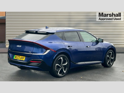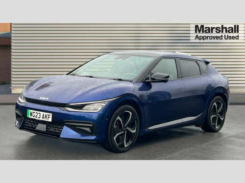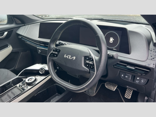 Kia Ev6 166kW GT Line S 77.4kWh 5dr Auto 12.3" Curved driver display screen, 12.3" Curved touchscreen navigation, 360 degree around view monitor, Apple car play/Android Auto with voice control, Augmented reality head up display, Blind spot monitor, Blind-spot collision avoidance assist (BCA) with Rear cross traffic assist (RCTA) and Safe exit assist (SEA), Bluetooth connectivity with voice recognition, Drive mode selector, Driver attention warning, E-call, Emergency stop signalling system, Forward Collision Avoidance (FCA) - Junction crossing, Forward Collision-Avoidance Assist (FCA) 1.5 - City/Pedestrian/Cyclist/Junction turning, Front parking sensors, Highway Driving Assist (HDA 2.0), Intelligent speed limit assist (ISLA), Lane Following Assist (LFA), Lane keep assist, Low washer fluid warning, Navigation based smart cruise control with stop and go functionality, Parking collision avoidance assist (PCA), Power assist steering, Rear parking sensors, Remote Smart Park Assist (RSPA), Smart power tailgate, Tailgate, UVO connect, Wireless Mobile Phone Charger, 11 kW AC onboard charger, 5m Type 2 to type 2 charging cable, Type 2 to 3 pin charger, 4 x Front USB charge port, Meridan premium sound system with 14 speakers and active sound design (ASD), Steering wheel mounted controls, USB port for connection of a media device, All round electric windows with drivers auto up/down function, Auto dimming rear view mirror, Automatic defog system, Automatic headlight control system, Black side sills, Body colour exterior door handles - flush auto, Body coloured door garnish, Deluxe door scuff plates, Dual LED headlights with adaptive driving beam, Electrically folding/adjustable/heated door mirrors with LED indicators, GT exterior styling, Heated rear window, High gloss black beltline, High gloss black door mirrors, High level LED brake light, LED daytime running lights, LED rear combination lights, LED rear fog lights, Panoramic sunroof with tilting and sliding function, Rain sensing front wipers, Rear boot spoiler with LED high mounted brake light, Rear privacy glass, Rear side wing doors, Rear wiper, Solar glass windshield, 1 x Front 12V socket, 1 x Luggage compartment 12V socket, 3 seat bench in 2nd row, 60:40 split remote folding rear seats, All-round height adjustable headrests, Alloy pedals, Ambient lighting, Centre console cupholders, Centre console with open storage compartment and armrest, Cloth headlining, Driver and front passenger premium relaxion seats, Driver and passenger sunvisors with illuminated LED vanity mirrors, Driver power adjusted memory seat with front passenger power seat with 2-way electric lumbar, Dual automatic air conditioning, Front and rear door storage, Front and rear luggage area LED lights, Front cabin LED light, Front seat back pockets, Heated front seats, Heated steering wheel, Illuminated glovebox, Interior door lock/unlock function, ISOFIX Child seat top tethers and anchor fixings, Luggage area load cover, Luggage board, Luggage net with hooks, Metal paint interior door handles, Outer 2nd row heated seats, Paddle shift for drive mode select, Rear cabin LED light, Rear centre armrest with cupholder, Single front passenger seat, Ski through, Suede/Vegan leather upholstery, Tilt/telescopic adjustable steering wheel, Vegan leather trimmed steering wheel, Vehicle 2 load technology including 3 pin domestic socket, Ventilated front seats, 3 point seatbelts on all seats, ABS, Automatic unlocking of doors in case of impact, Brake assist system, Centre side front airbags, Dual shell horn, Electric parking brake with auto hold function, Electronic stability control, Front centre airbag, Front passenger airbag cut-off switch, Front seatbelt pre-tensioners, Height adjustable front seatbelts, Hill start assist control (HAC), Multi collision brake assist, Rear door child safety locks, Twin curtain airbag, Twin front airbag, Tyre pressure monitoring system, Vehicle stability management, Anti theft alarm, Engine immobiliser, Engine Start/Stop Button with Smart Entry System, Locking wheel nuts, Speed sensitive auto door locking, Visible vehicle identification number, 20" Black alloy wheels, Tyre mobility kit