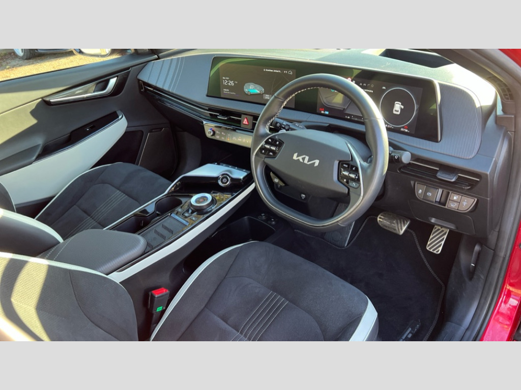 Kia Ev6 236kW GT Line S 77.4kWh 5dr AWD Auto 12.3" Curved driver display screen, 12.3" Curved touchscreen navigation, 360 degree around view monitor, Apple car play/Android Auto with voice control, Augmented reality head up display, Blind spot monitor, Blind-spot collision avoidance assist (BCA) with Rear cross traffic assist (RCTA) and Safe exit assist (SEA), Bluetooth connectivity with voice recognition, Drive mode selector, Driver attention warning, E-call, Emergency stop signalling system, Forward Collision Avoidance (FCA) - Junction crossing, Forward Collision-Avoidance Assist (FCA) 1.5 - City/Pedestrian/Cyclist/Junction turning, Front parking sensors, Highway Driving Assist (HDA 2.0), Highway Driving Assist (HDA), Intelligent speed limit assist (ISLA), Lane Following Assist (LFA), Lane keep assist, Low washer fluid warning, Navigation based smart cruise control with stop and go functionality, Parking collision avoidance assist (PCA), Power assist steering, Rear parking sensors, Remote Smart Park Assist (RSPA), Smart power tailgate, UVO connect, Wireless Mobile Phone Charger, 11 kW AC onboard charger, 5m Type 2 to type 2 charging cable, Type 2 to 3 pin charger, 4 x Front USB charge port, Meridan premium sound system with 14 speakers and active sound design (ASD), Steering wheel mounted controls, USB port for connection of a media device, All round electric windows with drivers auto up/down function, Auto dimming rear view mirror, Automatic defog system, Automatic headlight control system, Black side sills, Body colour exterior door handles - flush auto, Body coloured door garnish, Deluxe door scuff plates, Dual LED headlights with adaptive driving beam, Electrically folding/adjustable/heated door mirrors with LED indicators, GT exterior styling, Heated rear window, High gloss black beltline, High gloss black door mirrors, High level LED brake light, LED daytime running lights, LED rear combination lights, LED rear fog lights, Panoramic sunroof with tilting and sliding function, Rain sensing front wipers, Rear boot spoiler with LED high mounted brake light, Rear privacy glass, Rear side wing doors, Rear wiper, Solar glass windshield, 1 x Front 12V socket, 1 x Luggage compartment 12V socket, 3 seat bench in 2nd row, 60:40 split remote folding rear seats, All-round height adjustable headrests, Alloy pedals, Ambient lighting, Centre console cupholders, Centre console with open storage compartment and armrest, Cloth headlining, Driver and front passenger premium relaxion seats, Driver and passenger sunvisors with illuminated LED vanity mirrors, Driver power adjusted memory seat with front passenger power seat with 2-way electric lumbar, Dual automatic air conditioning, Front and rear door storage, Front and rear luggage area LED lights, Front cabin LED light, Front seat back pockets, Heated front seats, Heated steering wheel, Illuminated glovebox, ISOFIX Child seat top tethers and anchor fixings, Luggage area load cover, Luggage board, Luggage net with hooks, Metal paint interior door handles, Outer 2nd row heated seats, Paddle shift for drive mode select, Rear cabin LED light, Rear centre armrest with cupholder, Single front passenger seat, Ski through, Suede/Vegan leather upholstery, Tilt/telescopic adjustable steering wheel, Vegan leather trimmed steering wheel, Vehicle 2 load technology including 3 pin domestic socket, Ventilated front seats, 3 point seatbelts on all seats, ABS, Automatic unlocking of doors in case of impact, Brake assist system, Centre side front airbags, Dual shell horn, Electric parking brake with auto hold function, Electronic stability control, Front centre airbag, Front passenger airbag cut-off switch, Front seatbelt pre-tensioners, Height adjustable front seatbelts, Hill start assist control (HAC), Multi collision brake assist, Rear door child safety locks, Twin curtain airbag, Twin front airbag, Tyre pressure monitoring system, Vehicle stability management, Anti theft alarm, Engine immobiliser, Engine Start/Stop Button with Smart Entry System, Locking wheel nuts, Speed sensitive auto door locking, Visible vehicle identification number, 20" Black alloy wheels, Tyre mobility kit