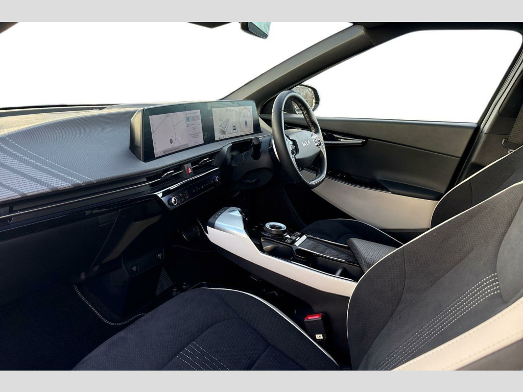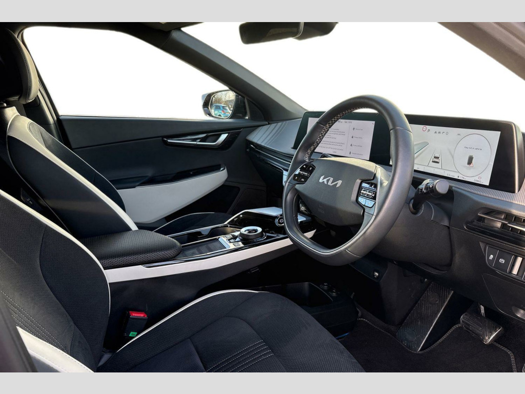 The Kia EV6 GT-Line stands out with its impressive performance and practicality. Its electric powertrain delivers brisk acceleration, achieving 0-62mph in just 7.3 seconds, a highlight that sets it apart from many other vehicles. Charging is convenient, with a full charge at home taking approximately 12 hours and 30 minutes using a 7kW charger, while the fastest public charging can replenish the battery from empty to 80% in a swift 20 minutes. Furthermore, this model offers a large boot space, making it a versatile choice for families and those needing extra room for luggage or shopping. 19' Alloy wheels, 12.3' Curved driver display screen, 12.3' Curved touchscreen navigation with free 7-year Kia Connect services, Blind-spot collision avoidance assist (BCA) with rear-cross traffic assist (RCTA) & safe exit assist (SEA), Black suede seats with white vegan leather bolsters, Vehicle-2-load (3.5kW power outlet), Wireless mobile phone charger, Dual LED headlights with adaptive driving beam, Driver & front passenger premium relaxation seats, GT-Line exterior styling, Rear privacy glass, Solar glass windshield, Body coloured door garnish, Driver power adjusted memory seat with front passenger power seat with 2-way electric lumbar, Alloy pedals, Deluxe door scuff plates, Front parking sensors, Highway driving assist (HDA), Heated front seats and heated steering wheel, High gloss black door mirrors, Navigation-based smart cruise control with stop & go functionality, Body coloured exterior flush door handles, Engine start/stop button with smart entry system, Free 7-year Kia Connect services, Ecall, Electrically folding adjustable & heated door mirrors with integrated LED indicator lights, LED headlights rear lights and daytime running lights, Rear spoiler, High gloss black beltline, Black side sill moldings, Heated front seats, Heated steering wheel, Rear parking sensors, Dual automatic air conditioning, All-round electric windows with auto up & down function, Electronic parking brake (EPB) with auto hold function, Rain sensing front wipers, Power adjustable lumbar support - drivers seat, Metal painted interior door handles, Steering wheel mounted controls, Forward collision avoidance assist (FCA) - city/pedestrian/cyclist/junction turning, Drive mode select, Auto-dimming rear-view mirror, 60:40 split remote folding rear seats, Ambient lighting, 4 x USB charge port (Front: one for C-type & one for USB / Rear: 2 x C-type), 2 x 12V socket (1 x front / 1 x luggage compartment), Tyre mobility kit (TMK)