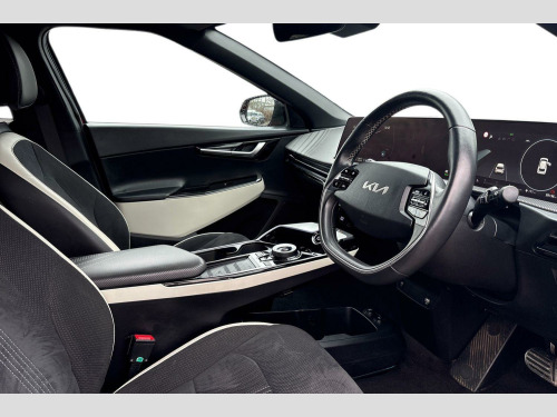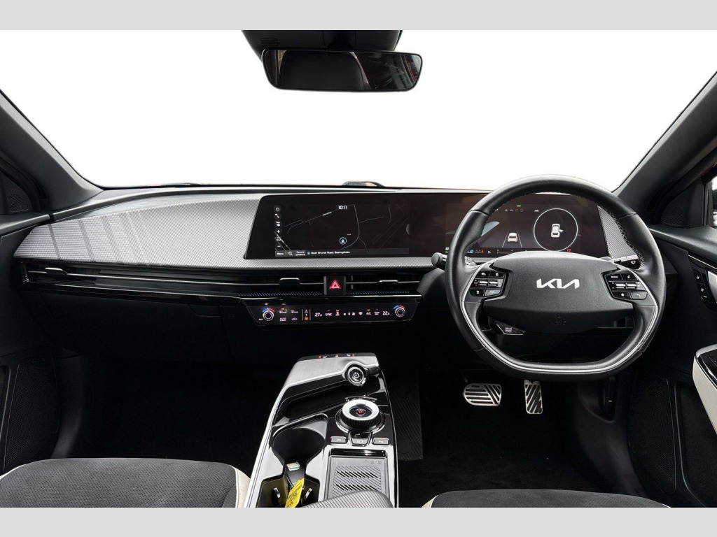 The Kia EV6 GT Line truly stands out with its exceptional performance and practicality. Its acceleration is a notable highlight, achieving 0 to 62 miles per hour in a brisk 7.3 seconds, demonstrating its dynamic capability. This performance, combined with the extensive 328 mile range, positions it favourably against other vehicles in its class. Furthermore, charging is made convenient, with a full charge at home taking approximately 12 hours and 30 minutes on a 7kW charger, and a rapid charge to 80% achievable in just 20 minutes at a public charging station. The generous boot space adds to its everyday usability, making it a well rounded choice for any driver. 19' Alloy wheels, 12.3' Curved driver display screen, 12.3' Curved touchscreen navigation, Kia connect (UVO), Black suede seats with white vegan leather bolsters, Vehicle-2-load (3.5kw power outlet), Wireless mobile phone charger, Dual LED headlights with adaptive driving beam, Driver & front passenger premium relaxion seats, GT-Line exterior styling, Rear privacy glass, Solar glass windshield, Body coloured door garnish, Driver power adjusted memory seat with front passenger power seat with 2-way electric lumbar, Alloy pedals, Deluxe door scuff plates, Front parking sensors, Blind-spot collision avoidance assist (BCA) with rear-cross traffic assist (RCTA) & safe exit assist (SEA), Heated front seats and heated steering wheel, High gloss black door mirrors, Navigation-based smart cruise control with stop & go functionality, Body coloured exterior flush door handles, Engine start/stop button with smart entry system, Ecall, Electrically folding, adjustable & heated door mirrors with integrated LED indicator lights, LED headlights, rear lights and daytime running lights, Rear spoiler, High gloss black beltline, Black side sill moldings, High gloss black door garnish, Heated front seats, Heated steering wheel, Rear parking sensors, Dual automatic air conditioning, All-round electric windows with auto up & down function, Electronic parking brake (EPB) with auto hold function, Rain sensing front wipers, Power adjustable lumbar support - drivers seat, Metal painted interior door handles, Steering wheel mounted controls, Forward collision avoidance assist (FCA) - city/pedestrian/cyclist/junction turning, Highway driving assist (HDA), Drive mode select, Auto-dimming rear-view mirror, 60:40 split remote folding rear seats, Ambient lighting, 4 x Front USB charge port, 3 x Front 12V socket, Tyre mobility kit (TMK)
