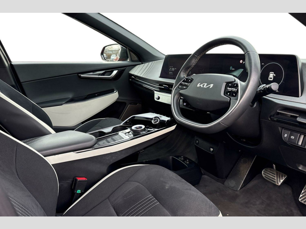 The Kia EV6 GT-Line S truly stands out with its impressive performance and practicality. Its acceleration is a notable highlight, achieving 0-62mph in a swift 5.2 seconds, demonstrating its dynamic capability. Furthermore, this model offers generous boot space, making it a practical choice for families or those who require ample storage. These highlights collectively indicate that this Kia EV6 offers a superior driving experience and greater utility compared to other vehicles in its class. 20' Alloy wheels, 12.3' Curved driver display screen, 12.3' Curved touchscreen navigation, Sunroof with Tilting & Sliding Function, Smart power tailgate, Meridan premium sound system with 14 speakers & active sound design (ASD), Augmented reality head-up display, Remote smart park assist (RSPA), Body coloured exterior flush door handles - automatic, Blind-spot collision avoidance assist (BCA) with rear-cross traffic assist (RCTA) & safe exit assist (SEA), Outer 2nd row heated seats, Ventilated front seats, 360° Around view monitor, Blind-spot view monitor, Parking collision-avoidance assist (PCA), Highway driving assist 2 (HDA2), Kia connect (UVO), Black suede seats with white vegan leather bolsters, Vehicle-2-load (3.5kw power outlet), Wireless mobile phone charger, Dual LED headlights with adaptive driving beam, Driver & front passenger premium relaxion seats, GT-Line exterior styling, Rear privacy glass, Solar glass windshield, Body coloured door garnish, Driver power adjusted memory seat with front passenger power seat with 2-way electric lumbar, Alloy pedals, Deluxe door scuff plates, Front parking sensors, Heated front seats and heated steering wheel, High gloss black door mirrors, Navigation-based smart cruise control with stop & go functionality, Engine start/stop button with smart entry system, Ecall, Electrically folding, adjustable & heated door mirrors with integrated LED indicator lights, LED headlights, rear lights and daytime running lights, Rear spoiler, High gloss black beltline, Black side sill moldings, High gloss black door garnish, Heated front seats, Heated steering wheel, Rear parking sensors, Dual automatic air conditioning, All-round electric windows with auto up & down function, Electronic parking brake (EPB) with auto hold function, Rain sensing front wipers, Power adjustable lumbar support - drivers seat, Metal painted interior door handles, Steering wheel mounted controls, Forward collision avoidance assist (FCA) - city/pedestrian/cyclist/junction turning, Drive mode select, Auto-dimming rear-view mirror, 60:40 split remote folding rear seats, Ambient lighting, 4 x Front USB charge port, 3 x Front 12V socket, Tyre mobility kit (TMK), Dual motor with 321bhp