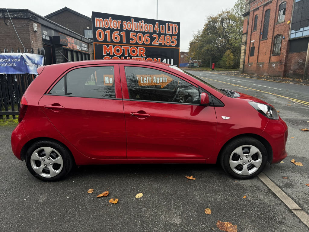 MOT 22.10.2026. Just been serviced @ current mileage. 2 keys. £20 TAX.Bluetooth phone conn. USB/AUX, Kia Picanto 1.0 1 Air finished in Red (Manual), 0 miles, only 1 previous owner.FINANCE AVAILABLE, PLEASE ASK FOR OUR COMPETITIVE FINANCE DEALS.1 ALL MAJOR CARDS ACCEPTED. INSPECTIONS WELCOME. WE ARE OPEN MONDAY TO SATURDAY 10.00 TO 17.00. All our cars comes with HPI check, Warranty and Full Valet. Part exchange welcome, please ring for details. Open Monday to Saturday 10.00 to 17.00. Full dealer facilities. Please visit our website www.motorsolution4u.co.uk 172 CHESTERGATE, STOCKPORT, SK3 0BQ