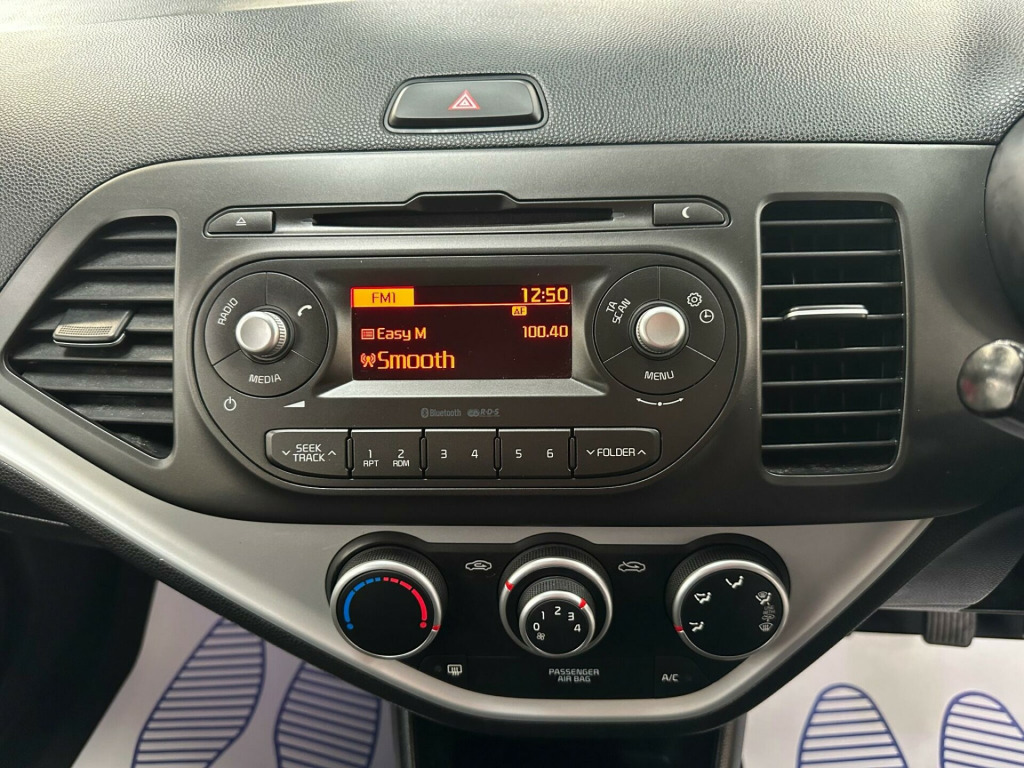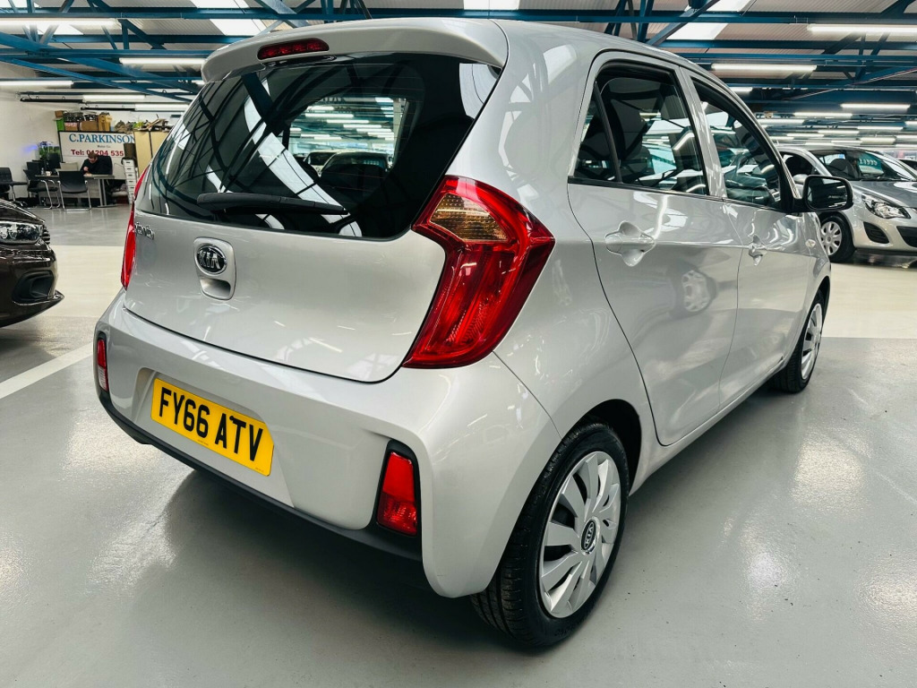 Boasting exceptionally low mileage for its age, this 2016 Kia Picanto 1 Air presents a superb opportunity. This Euro 6 compliant model features a 1.0 litre petrol engine and has covered just 25,000 miles. Its MOT is valid until January 2027, and it received its last service on 21st January 2026 at 25,246 miles, demonstrating excellent provenance. Inside, you'll find the convenience of Air Conditioning and Bluetooth with Voice Recognition and Music Streaming.This Kia Picanto stands out with several key advantages. Its remarkable fuel economy of 63 mpg means you can enjoy more miles for less money, a significant benefit compared to many other vehicles. Furthermore, its low insurance group rating indicates that running costs will be kept to a minimum. The low CO2 emissions also highlight its efficiency and environmental consideration, making it a sensible choice for many drivers.A superbly presented and extremely well cared for Kia Picanto Air 5 door with only 25,000 miles and services at 8049 miles, 12485 miles and 25246 miles including new advisory free MOT. This well proven and much sought after model boasts an array of luxury refinements while benefitting from renowned Kia build quality and reliability, only £20 road tax, low insurance, excellent fuel economy and a great drive. Comes with all documentation plus 2 keys and sure to please. Contact Duncan Watson Motors on 01204 361859 or 07973 161450 oth - black, 12v power socket - front, 14in steel wheels, 2 x coat hooks - rear, 2-speaker system, 3 x passenger assist grips, 60-40 split folding 2nd row seats, abs with electronic brakeforce distribution - ebd and brake assist system - bas, air conditioning, all-round 3-point seatbelts, all-round height adjustable headrests, anti-theft alarm system, black radiator grille with silver surround, bluetooth with voice recognition and music streaming, body coloured bumpers, body coloured exterior mirrors and exterior handles, centre console cupholders, child safety rear door locks, daytime running lights, digital clock, double locking, drivers seat height adjuster, esc - electronic stability control, emergency stop signalling - ess, engine immobiliser, front cabin map light, front door map pockets, front electric windows, front passenger airbag cut off switch, front seatbelt height adjusters, front seatbelt pre-tensioners and load limiters, full wheel covers, glovebox, grab-type exterior door handles, headlight levelling system, heated rear window, high mounted brake light, hill-start assist control - hac, isofix child seat top tethers and anchor fixings, impact sensing auto door unlocking, leather trimmed steering wheel with leather trimmed gearshift, low rolling resistance tyres, luggage area light, luggage area parcel shelf, manually adjustable door mirrors, motor driven power steering - mdps, my music function with storage and playback capacity, rds radio-cd audio with mp3 disc compatibility, rear fog light, rear wiper-washer, remote central locking with folding key, seatbelt reminder warning, side impact protection system, side and curtain airbags, silver paint centre fascia - steering wheel bezel and gearshift top trim, sliding and reclining front seats, speed variable front wipers, sunvisors with vanity mirrors and ticket holder on drivers side, tachometer, tilt steering wheel adjustment, tinted glass, trip computer, twin front airbags, tyre pressure monitoring system - tpms, tyre repair kit, usb and aux ports, visible vehicle identification number - vin