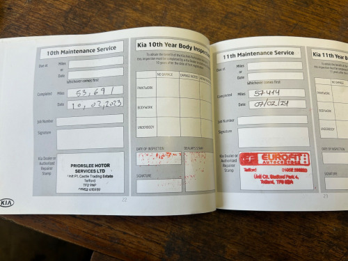 Here we have for you a wonderful little Picanto we collected from a trusted main agent supplier over 80 miles away. The car drives ever so well with no unwanted rattles or bangs and comes with 12 month M.O.T. from purchase along with a service. As you can see there are lots of services. There are just 2 owners recorded on the V5, the second, Matthew, owning the car since 2017, so it hasn't been passed from pillar to post. There are cupholders, height adjustable drivers seat, DRLs and we even have a Bluetooth upgrade. Radmoor Car Sales is a family business, has been trading over 45 years. Please look at our reviews on Google. Feel free to ring 01204 388070, text 07915 390370,or email radmoorcarsalesgmail.com for a prompt reply( check your SPAM folder, we reply to all emails). The car you are looking at today and are thinking of buying tomorrow, is the car someone else looked at yesterday and they want to buy it today. We are on the A665 Radcliffe Moor Rd, Radcliffe, Bury opposite Bradley Fold Garden Centre. If you are using Google Maps App, just search for Radmoor Car Sales for our marker Why not have a look at our LIKE page on Facebook. Join us to see new and exciting fresh stock. justable steering column, daytime running lights, electric front windows, height adjustable drivers seat, remote locking with deadlocking