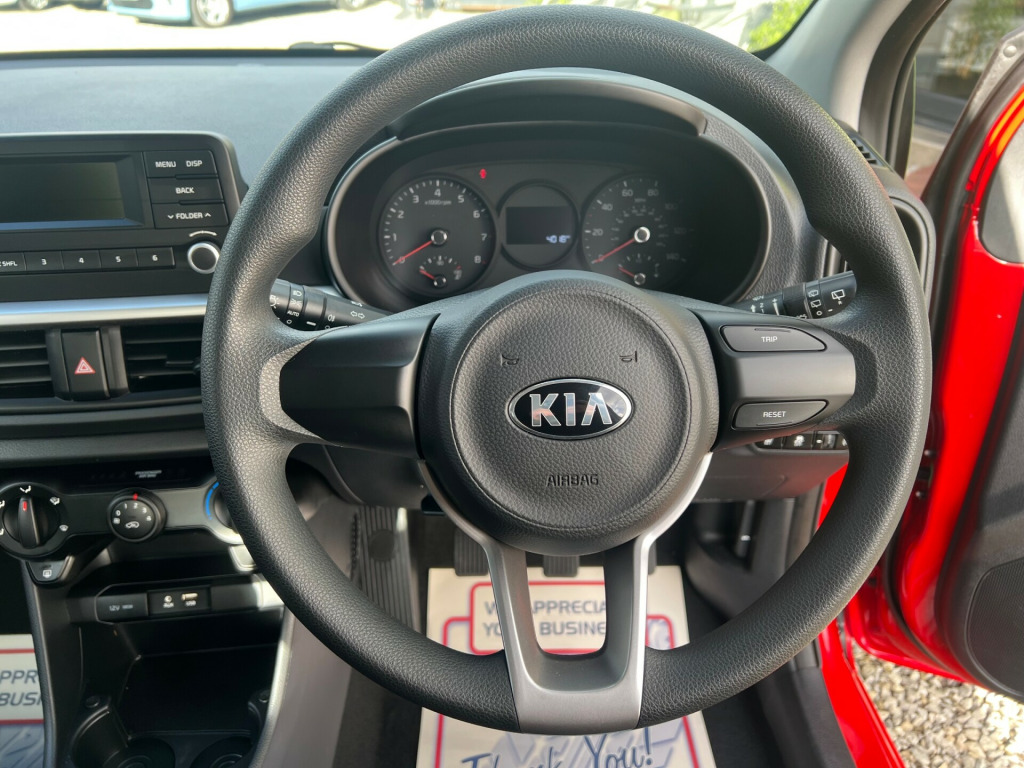 OFFERING THE BEST LOW MILEAGE LOW OWNERSHIP CARS AND CUSTOMER SERVICE IN THE AREA..A STUNNING CONDITION ON OFFER WITH THIS BEAUTY1 LADY OWNER FROM NEW..JUST AN INCREDIBLY LOW 4000 MILES..A STUNNING CONDITION 1.0 ENGINE KIA PICANTOA NEW SERVICE, NO ADVISORY MOT AND OUR OWN NO QUIBBLE WARRANTY INCLUDED..HPI CLEAR..JUST VALETED..PX WELCOME..ALL OUR CARS COME WITH 2 KEYS.., x coat hooks - rear, 3 x passenger assist grips, 60-40 split folding 2nd row seats, all-round height adjustable headrests, black interior door handles, centre console cupholders, driver and front passenger sunvisors with vanity mirror, front cabin light, glovebox, luggage area light, luggage area parcel shelf, sliding and reclining front seats, speed variable front wipers, tilt steering wheel adjustment, 12v power socket - front, 2-speaker system, 2.6in monochrome cluster display, 3.8in monochrome audio display with rds, usb and aux ports for connection of a media device, 14in steel wheels, black radiator grille with silver surround, body coloured bumpers, front electric windows, heated rear window, manually adjustable door mirrors, rear fog light, tinted glass, tyre repair kit, abs with electronic brakeforce distribution - ebd and brake assist system - bas, all-round 3-point seatbelts, anti-theft alarm system, child safety rear door locks, esc - electronic stability control, emergency stop signalling - ess, engine immobiliser, front passenger airbag cut off switch, front seatbelt pre-tensioners and load limiters, hill-start assist control - hac, isofix child seat top tethers and anchor fixings, impact sensing auto door unlocking, rear wiper-washer, remote central locking with folding key, seatbelt reminder warning, side impact protection system, twin curtain airbags, twin front airbags, twin side airbags - front, visible vehicle identification number - vin, automatic headlight control, daytime running lights, headlight levelling system, high mounted brake light, multi focus reflector headlights with black bezel, welcome and follow-me-home light functionality, external temperature display, motor driven power steering - mdps, tachometer, trip computer, tyre pressure monitoring system - tpms